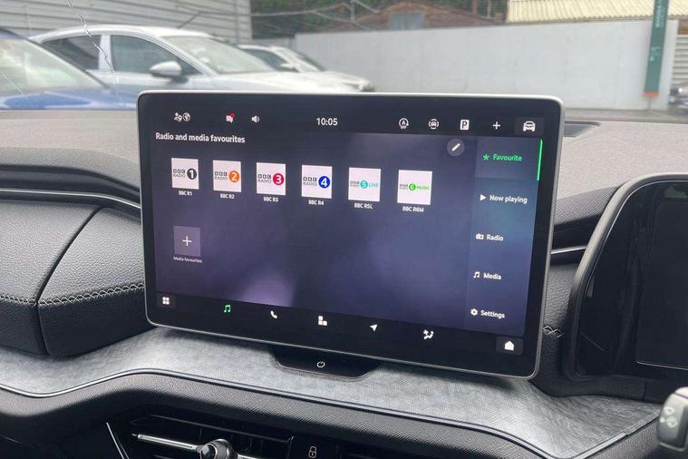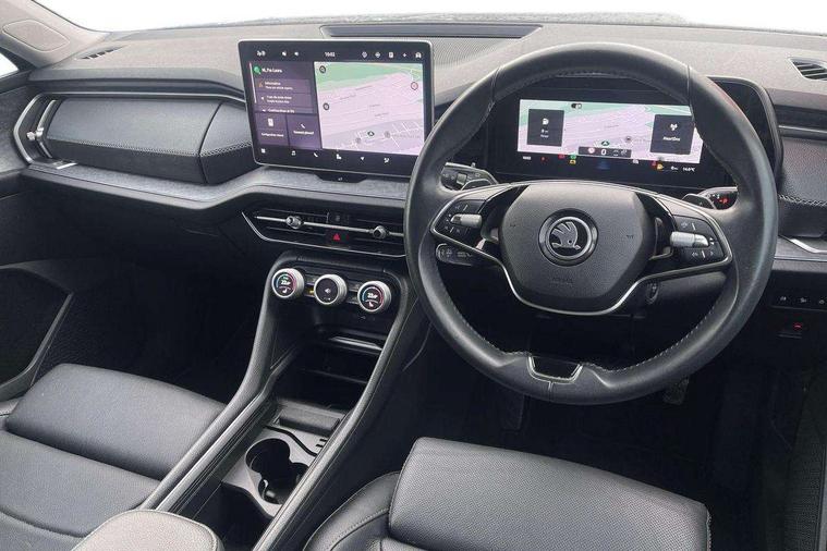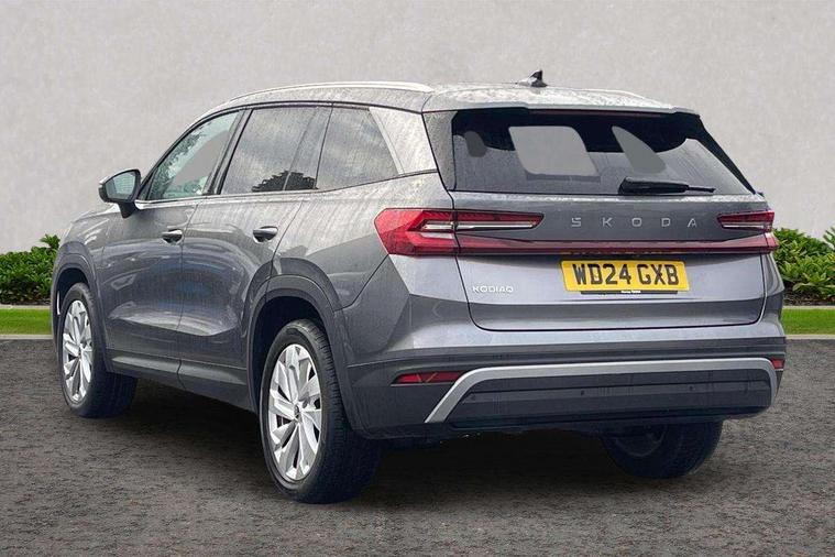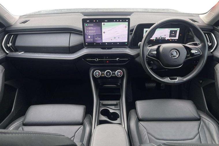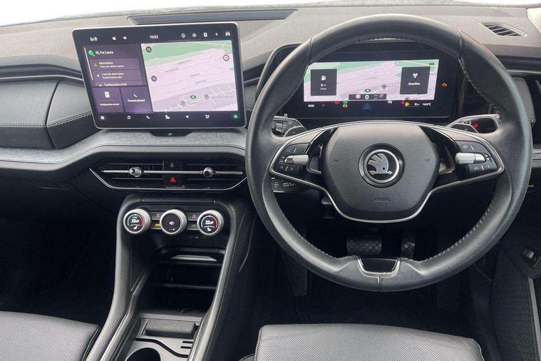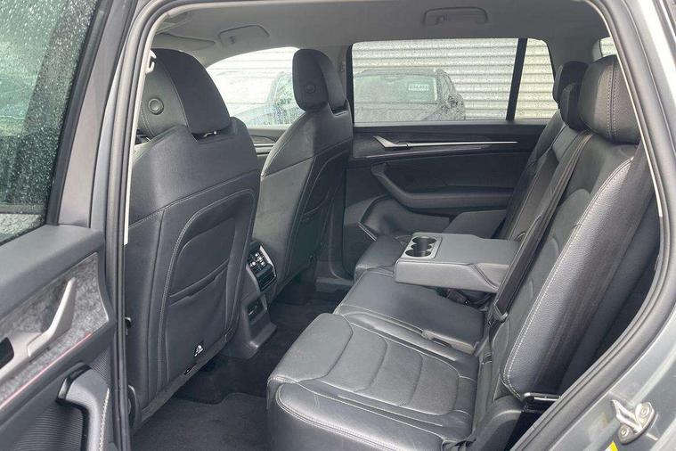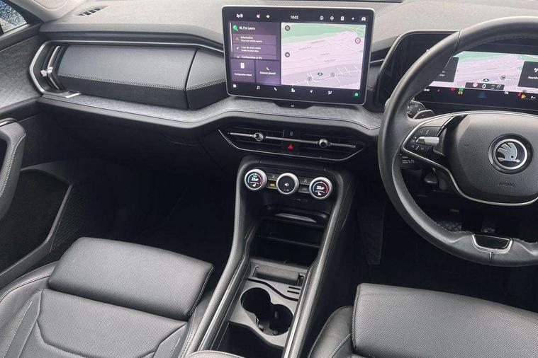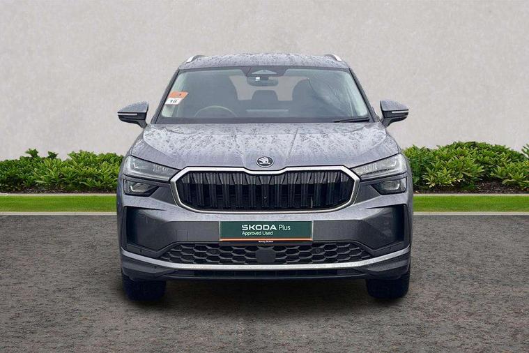13" satellite navigation touchscreen display, Blind spot detection with door exit warning, Bluetooth system, Drive mode selector, Driver alert with fatigue sensor, Driver drowsiness alert system, Dry display cleaner, e call+, Front cross traffic assist, Lane assist, PAS, Rear traffic assist, Tailgate unlocking from outside, Traffic sign recognition, USB C Port x 2 in front centre console, Virtual Cockpit - 10.25" digital display, Voice control system, Wireless charging for two smartphones (15W) with cooling function, Wireless SmartLink for Apple CarPlay and Android Auto, Stop/start function, 2x USB-C in the rear, DAB Digital radio, Aero front windscreen wipers with intermittent function, Auto dimming rear view mirror, Black wheel arch surrounds, Body colour bumpers, Body colour door mirrors and handles, Cornering light and poor weather light, Electric folding /adjustable/separted heated/folding door mirrors, auto dimming with boarding sports and memory function, Electric front and rear windows, Heat insulating glass in windshield, Heated rear window, Ice scraper in fuel tank cap, Invisible tailpipe, LED daytime running lights, LED rear fog light, LED third brake light in rear spoiler, Light assistant with automatic headlight control and coming home feature, Logo projection in door mirrors, Privacy glass, Rear side wing doors, Rear spoiler, Rear window wiper, Safety reflectors on front and rear doors, Window control switches with black trim, Windscreen wipers with rain sensor, Without engine designation, 1.5l bottle holder points in all door, 12V socket in boot, 1x centre rear reading light, 2 seat bench in 3rd row, 3 configurable smart dials with 32mm coloured display, 3 seat bench in 2nd row, 4 foldable roof handles with rear coat hooks, Automatic gear selector on steering wheel, Chrome interior door handles, Driver/front passenger reading lights, Fabric headlining, Fixed bench 40:60:40 split folding backrests, Front and rear floor mats, Front centre armrest with jumbo box storage compartment, cup holder and 12V socket, Front courtesy lights, Height adjustable front headrests, Interior ambient lighting, Isofix child seat fittings in outer rear seats and front passenger with top tether, Manually adjustable steering column, Pollen filter, Rear centre armrest with cupholders, Rear seat boot backrest release, Retractable luggage compartment cover, Single front passenger seat, Sliding trunk cover, Small Bags on the inner sides of the front backrests, Storage pocket including mobile phone pockets on the backs of the front seats, Sunvisors with illuminated vanity mirrors, Three rear height adjustable headrests, Ticket holder on A Pillar, Tri zone climate control, Umbrella in door panel x1 made from sustainable materials, Upper and lower glovebox with card holder and coin compartment, USB C port by rear view mirror for charging only (15W), Exterior styling package - Kodiaq, Auto door release and activation of warning lights in the event of an accident, Driver and front passenger airbag with knee airbag and front passenger airbag deactivation, Electric child locks, Electronic parking brake, ESC (incl. ABS+EMD+MSR+ASR+EDL+HBA+DSR+RBS+ESBS+MCB+TSA+XDS), Front assist with braking reaction to vehicles, pedestrians and cyclists, Front disc brakes, Fuel cut off safety device, Height adjustable front 3 point seatbelts + pretensioners, Hill hold control, Junction assist with automatic emergency braking, Rear disc brakes, Safety vest holder in door, Seat belt reminder for all seats, Three point rear seat belts, Two tone horn, Tyre pressure monitor, Anti-theft wheel bolts, Immobiliser, Remote central locking with 2 keys, Black/grey fabric with green cross stitching on dashboard, Swan feathers grey dashboard and door decorative inserts, Breakdown kit,