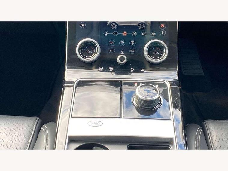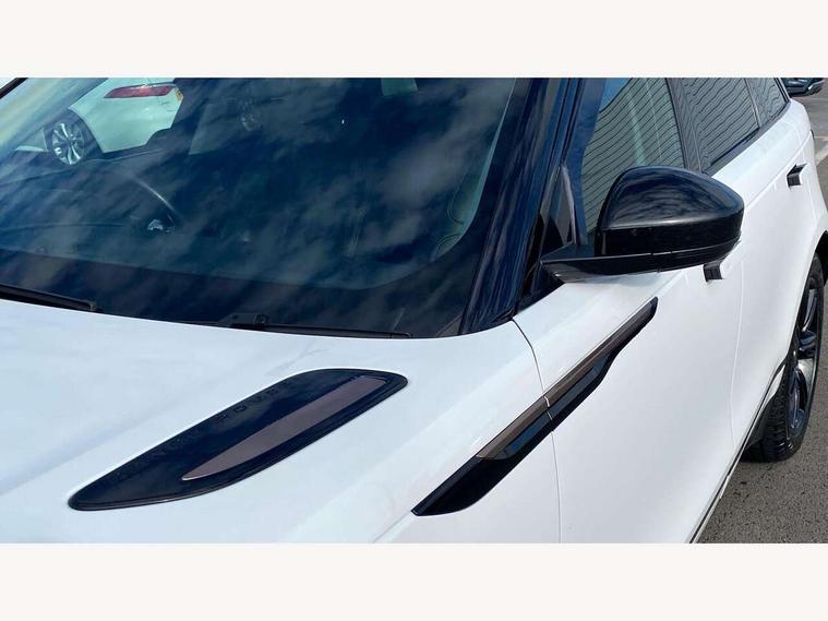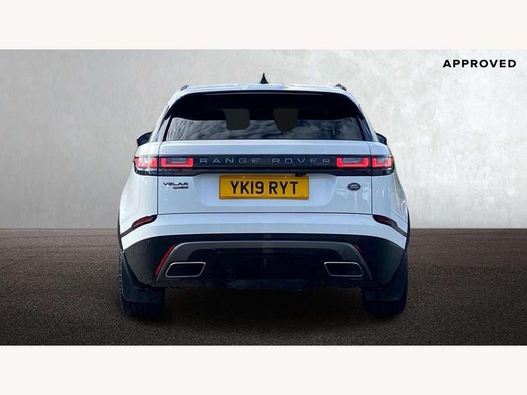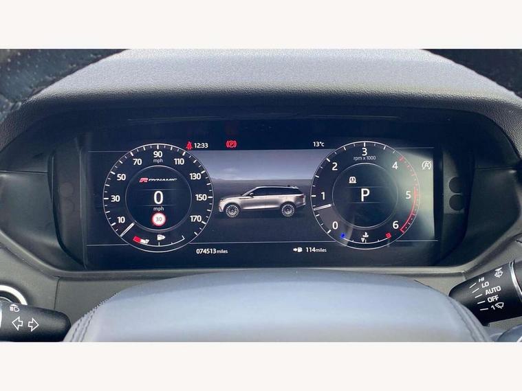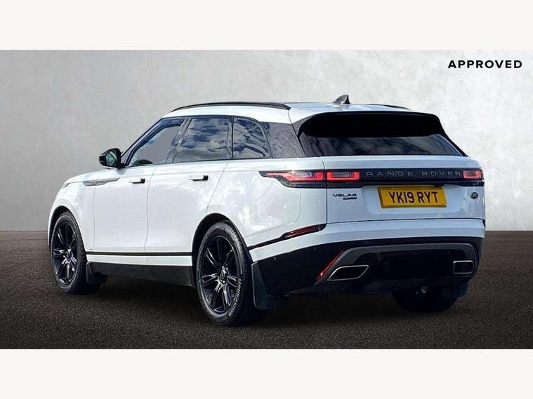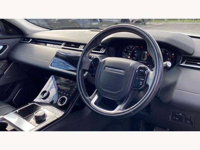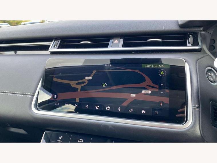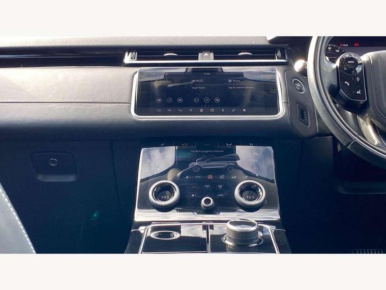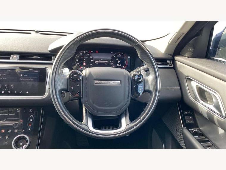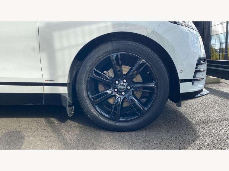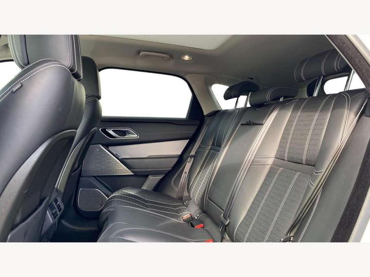 360 Parking aid sensors, Blind spot assist, Bluetooth connectivity, Brake pad wear indicator warning light, Driver condition monitor, InControl remote, InControl Touch navigation pro, Interactive Driver display instrument cluster, Land Rover InControl apps, Lane keep assist, Park Assist - Parallel Park/Parking Exit/Perpendicular park, Powered gesture tailgate/boot lid, Pro services and wifi hotspot, Rear traffic monitor, Service indicator, Speed proportional electronic power assisted steering (EPAS), Traffic sign recognition with adaptive speed limiter, Trip computer, Voice control system, 8 speed automatic transmission, Electronic air suspension, Open differential with torque vectoring by braking, Single speed transfer box, Digital Audio Broadcast radio-DAB, Steering wheel mounted controls, Acoustic laminated windscreen, Adaptive front lighting system, Auto dimming interior rear view mirror, Automatic headlamp levelling, Automatic headlights, Body coloured bumpers, Boot protection plate, Electric windows with one touch open/close and anti trap, Flush deployable exterior door handles, Follow me home headlights, Headlamp power wash, Heated rear window with timer, Heated windscreen + heated windscreen washer jets, Power fold, auto-dimming, heated door mirrors with approach lights, Rain sensor windscreen wipers, Rear fog lights, Rear wash/wipe, Standard roof, Tailgate/boot lid spoiler, Trailer stability assist, Velar and R-dynamic badge, 40:20:40 split folding rear seats, Adjustable front armrest, Bright metal pedals, Driver and passenger illuminated vanity mirror, Electric adjustable steering column, Isofix system on outer rear seats, Loadspace cover, Passive front headrests, Rear centre headrest, Satin chrome gearshift paddles, 350mm front brakes, 3x3 point rear seatbelts, Anti-lock braking system (ABS), Cornering brake control, Curtain airbags, Door side intrusion beams, Driver airbag, DSC - Dynamic Stability Control, Electronic brake force distribution, Electronic parking brake, Electronic traction control, Emergency brake assist, Front and rear seatbelt reminder, High speed emergency braking, Hill descent control, Hill launch assist, Low traction launch, Passenger airbag, Power operated child locks, Rear airbags, Roll stability control, Side airbags, Tyre pressure monitoring system, Unpainted brake calipers, Global lock and unlock switch on driver door, Immobiliser, Intrusion sensor, Keyless entry, Lock only switch on front passenger door, Perimetric alarm, Remote central locking,