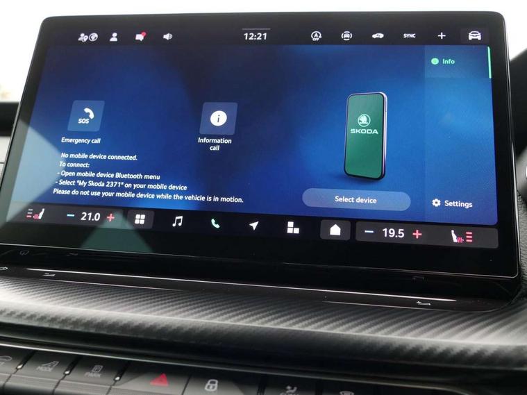 1x USB Typc C port in rear view mirror, 4x USB Type C ports - 2x in front centre console and 2x in rear (45W), Drive mode selection, Driver fatigue sensor, eCall emergency system, Front assist system, Progressive dynamic steering, Traffic sign recognition, Turn Assist, Virtual Cockpit - 10.25" digital display, Voice control system, Wireless charging (15W) with cooling function, Wireless SmartLink for Apple CarPlay and Android Auto, Sports suspension with 15mm lower, 13" touchscreen display with navigation, DAB Digital radio, Aero front windscreen wipers with intermittent function, Auto dimming rear view mirror, Body colour bumpers, Body colour door handles, Electric front and rear windows, Exterior gloss black sports styling including front grille, window surrounds, door mirrors and badging, Gloss black diffuser, Gloss black roof rails, Gloss black spoiler, Heated rear windscreen, High beam control, High level third brake light, Ice scraper in fuel cap, LED daytime running lights, Logo projection in front doors, Rain and light sensors, Rear fog light on one side, Rear privacy glass, Rear side wing doors, Rear window wiper, 12 volt socket in boot, 3 rear headrests, 3 seat bench in 2nd row, 4 foldable roof handles, Aluminium pedals, Front head restraints, Front sport seats, Heated front seats, Illuminated glovebox, Interior door handles in dark chrome, Jumbo Box storage, Luggage compartment lighting x2 lights, Mechanical rear seat release from boot, Single front passenger seat, Steering wheel in black leather with black stitching, Storage compartments in left and right of boot, Sun visors with mirrors, Sunglasses storage, Ticket holder, Umbrella in door panel, Unsplit rear bench seat, split folding backrest with centre armrest with cupholder, SportLine Design Selection pack - Octavia, 3x3 point rear seat belts, Alarm with interior monitoring, tilt sensor and back up horn, Curtain airbags and front side airbags, Driver and front passenger airbags, Drivers knee airbag, Electronic parking brake, ESC including ABS, EBV, MSR, ASR, EDS, HBA, DSR, Front central airbag, Hill hold assist, ISOFIX on front passenger seat and outer rear seats, Passenger airbag deactivate switch, Three point seat belts in front and rear, Two tone horn, Tyre pressure monitor, Visual and acoustic seat belt reminder, Warning reflectors in front door, Anti-theft wheel bolts, Keyless start/stop, Remote central locking, Gloss black air vent surrounds,
