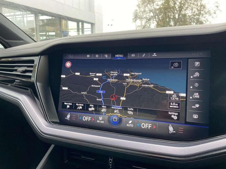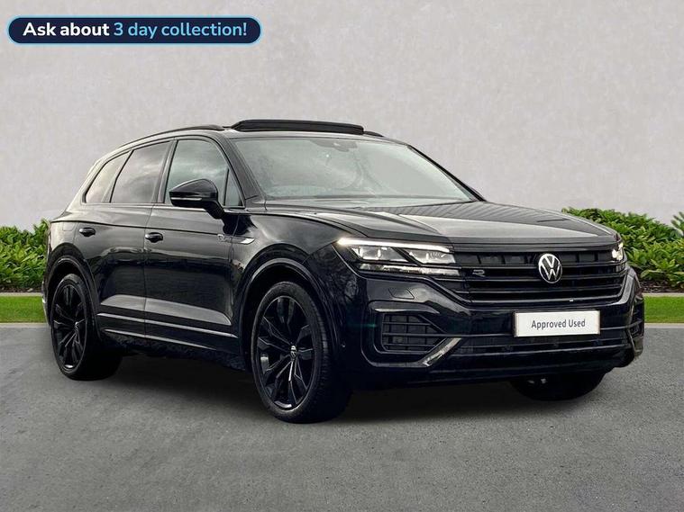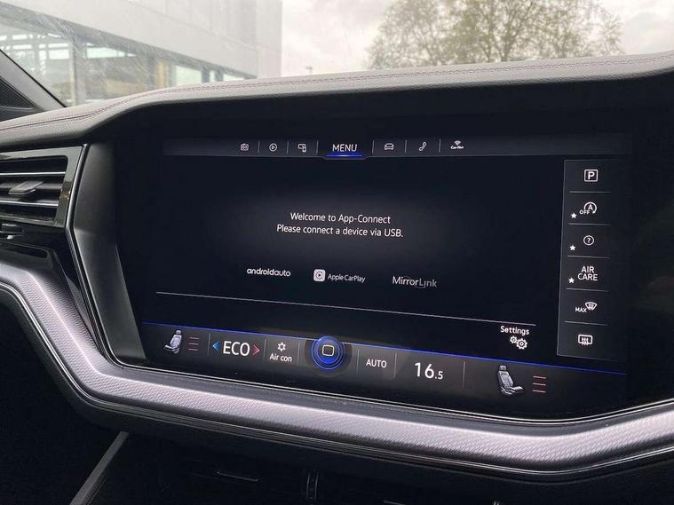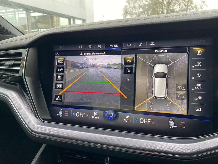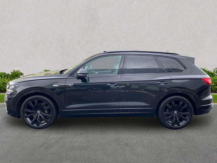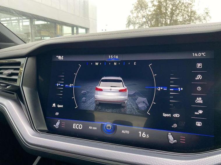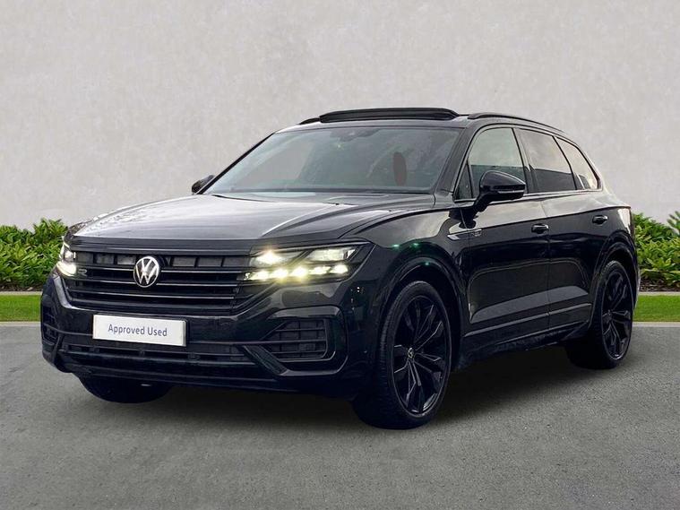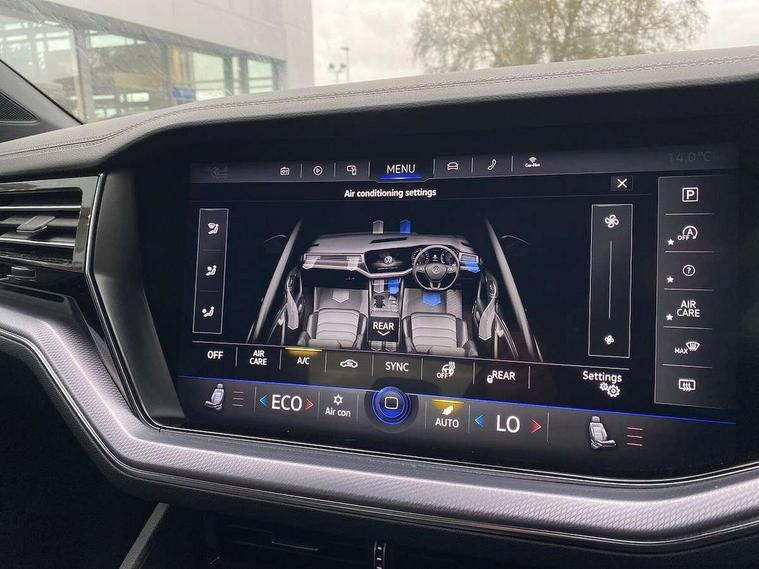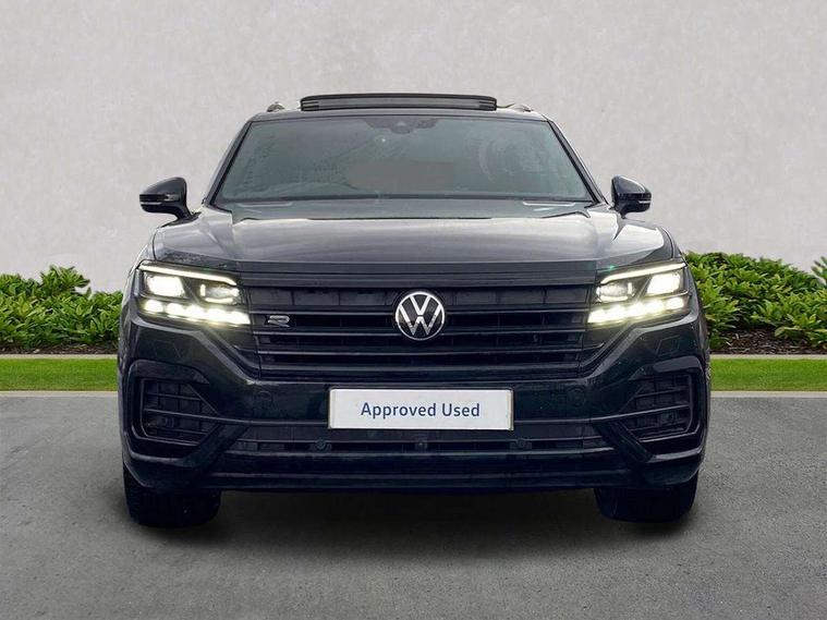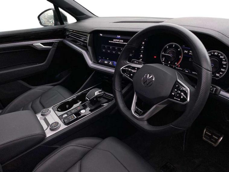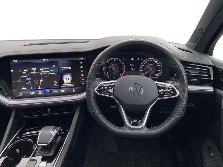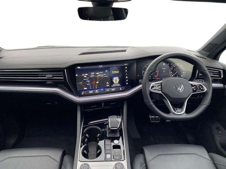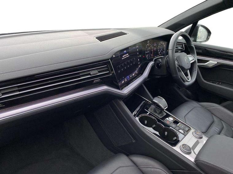 2D/3D map view, ACC - Adaptive cruise control with front assist, forward collision warning, distance monitoring, city emergency brake and speed limiter, Apple car play/Android Auto, Audible and visual fatigue detection system, Bluetooth hands free telephone connection, Car information display, Drive select with Damper control, Driver alert system, Driver profile selection, Dynamic road sign display camera controlled system with visual warning for traffic and road signs, eCall emergency system, Fully electric tailgate + keyless entry and start, Instrument cluster, MirrorLink, Multifunction camera, Multifunction computer premium with 7" colour display, One touch indicators with repeat function, Service interval indicator, Speed sensitive power steering, Start/stop system with regenerative braking, Tailgate power latch, Think blue trainer driver tips and journey analysis, Traffic sign recognition, Voice control system, Wireless Smartphone charger, 24 litre AdBlue tank, Torsen limited slip differential, DAB Digital radio, Dynamic navigation based on TMC+, Gesture control for infotainment system, Multi device interface (MDI) with illuminated USB-C connection, Music playback - MP3, WMA and AAC files, SD card slot, Simultaneous pairing of 2 compatible mobile devices, SMS functionality - read, compose and send SMS messages using touch-screen display, Title and cover art display, Volkswagen media control, Adaptive low beam for urban and motorway use, Auto dimming rear view mirror, Automatic coming/leaving home lighting function, Automatic headlights, Black anodised roof rails, Black door mirrors, Black rear diffuser, Black side window surrounds, Black upper and lower grille louvres extending into headlights and radiator grille, Body colour door handles, Body coloured wheel arches, C signature gloss black front air intake, Chromed tailpipe on the left and right integrated in the bumper with trapezoid design, Dusk sensor, Dynamic headlight range control, Electric front tilt/slide panoramic sunroof and fixed rear sunroof, Electrically power adjustable, heated, folding, auto dimming, front passenger exterior door mirror lowering function, Front and rear electric windows, Galvanised body, Gloss black finish B pillar, Gloss black rear diffuser, Headlight washers, Heat insulating darkened glass in side and rear windows, Heated windscreen washer jets, IQ.Light-LED matrix headlight, daytime running light with dynamic cornering light and indicator, LED 3rd brake light, LED rear fog light, LED rear number plate lights, Plastic scuff plates in door apertures, Poor weather light, Puddle lights, Rain sensor, Rear side wing doors, Rear wiper, 12V socket in front and rear centre console and boot, 2 Coat hooks on B pillar, 3 rear head restraints, 3 seat bench in 2nd row, 3 spoke sport heated leather multi-function sports steering wheel with gear shift paddles - generation 2, 4 way adjustable front head restraints, 4 way electric lumbar support for driver and front passenger, 4 zone climate control, 40:20:40 split folding slide/recline rear seat, B pillar vents, Black lower edge of door extending sills, Branded points of interest, Double sun visor for drivier and passenger with LED illuminated vanity mirrors, Electric luggage compartment cover, Folding rear centre armrest with 2 cupholders, Front + rear carpet mats, Front centre armrest with storage box, Gear shift indicator, Height/reach adjust steering wheel, Illuminated air conditioned glovebox, Isofix preparation for 2 rear child seats, Jack and tool kit, Leather trimmed gear knob with gloss black inlay/aluminum trim, Leatherette door trim, LED luggage compartment lighting, Load through provision, Luggage compartment with load lashing rings, Plastic loading edge protection, Rear seat remote release levers, Single front passenger seat, Soul black headlining, Stainless steel pedals, Innovision cockpit pack - Touareg, 3 point front seatbelts with pre-tensioners, ABS, Active bonnet, Automatic post collision braking system, Curtain airbags, Driver/Front Passenger airbags, EBD + Brake Assist, EDL, Electronic parking brake with auto hold, ESC with ASR, Front seat side impact airbags, Hill descent control, Hill start assist, Passenger airbag deactivate switch, Seatbelt warning lamp and buzzer, Three 3 point rear seatbelts, Two tone horn, Volkswagen roadside assistance, Warning triangle and first aid kit, Alarm with interior monitoring in cab, backup horn and towing protection, Child security locks for front and rear doors, Electronic engine immobiliser, Remote central locking, Black decorative trims on the side windows, High gloss black centre console,