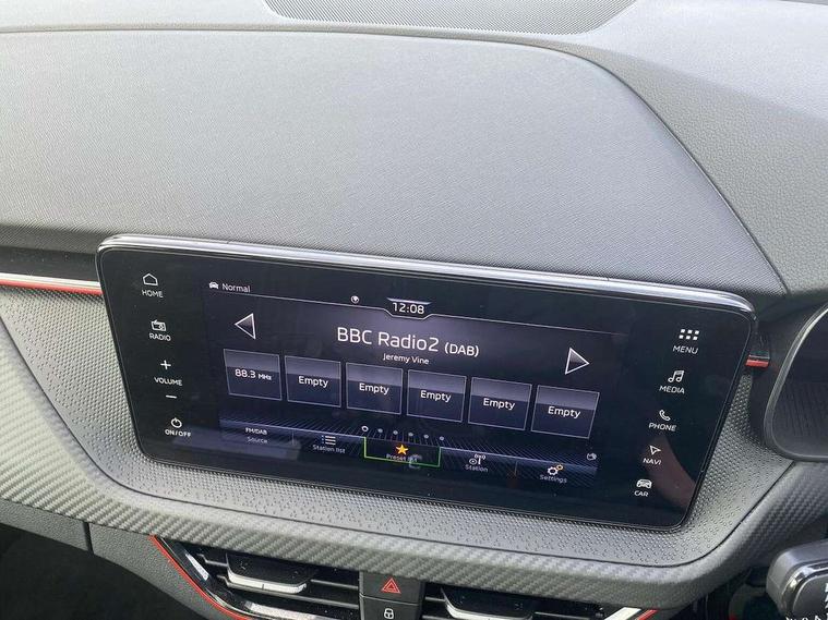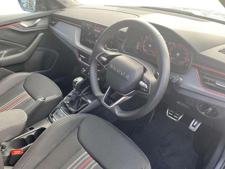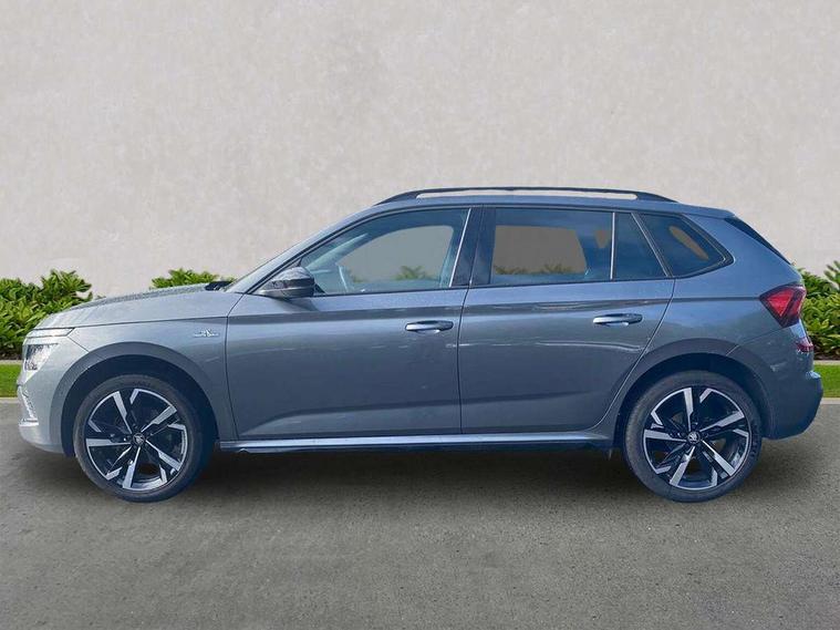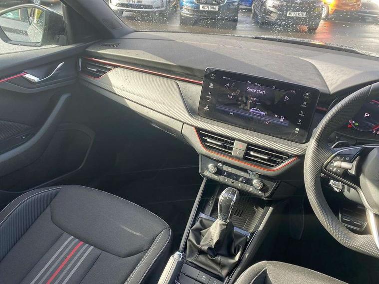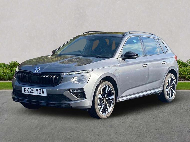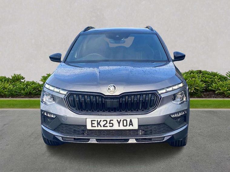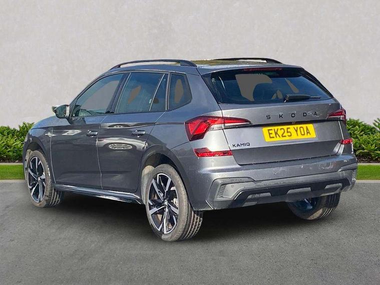 Advanced driver attention and drowsiness monitor, Bluetooth system, E-call, Front assist system, PAS, Rear parking sensors, Rear view camera, Service indicator, Speed limiter, Traffic sign recognition, Virtual cockpit with 10.25" display, Voice control system, Wireless smartlink, 4 USB C ports, 8 Speakers, 9.2" Skoda navigation display, DAB Digital radio, Auto dimming rear view mirror, Automatic headlight control with coming home and leaving home feature, Black door mirrors, Black radiator grille, Black rear diffuser, Black roof spoiler, Body colour bumpers, Body colour door handles, Boot lettering in black, Extended tailgate glass, Fixed panoramic sunroof with black roof rails, Front and rear electric windows, Heated rear window, LED daytime running lights, LED high beam, LED low beam, LED third brake light, Light sensors, Monte carlo plaque, Privacy glass, Rear side wing doors, Rear wiper, Ticket holder inside windscreen, 12V socket in luggage compartment, 3 seat bench in 2nd row, Aluminium pedals, Ambient lighting in white/red, Art leather carbon decor inserts, Art leather carbon door inserts, Black roof lining, Cargo elements, Chrome inner door handles, Driver and passenger sun visors with vanity mirror, Dual zone climate control, Front and rear roof lights, Front centre armrest, Front head restraints, Glove compartment with illumination, Height adjustable driver seat, Height adjustable front passenger seat, Ice scraper, Inner circulation control with pollen filter, ISOFIX on front passenger seat, Isofix preparation for back seats, Leather gearknob and handbrake lever, Manual lumbar support for front seats, Monte Carlo cloth upholstery, Net package and top tether hooks in boot space, Net under rear shelf, Pocket on the back of both front seats include mobile phone pockets, Rake/reach adjustable steering wheel, Reading lights, Rear centre armrests, Red hotstamping, Single front passenger seat, Sports seats, Textile floor mats, Third rear headrest, Top tether for front passenger seat, Umbrella in driver's door, Light and view plus package - Kamiq, 3x3 point rear seatbelts, Airbags - driver and front passenger, Disc brakes, ESP, Extended and predictive pedestrian/cyclist protection, Front passenger airbag deactivation switch, Front side airbags with curtain airbags, Hill hold control, Manual leather parking brake, Manual rear child locks, One tone horn, Seatbelt reminder for driver an co-driver, Traction control, Tyre pressure monitor, Anti-theft alarm system with interior monitoring, backup horn, towing protection and remote central locking with SAFE system, Anti-theft wheel bolts, Electronic engine immobilizer, 18" Ursa black diamond cut alloy wheels,