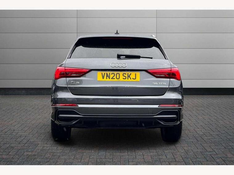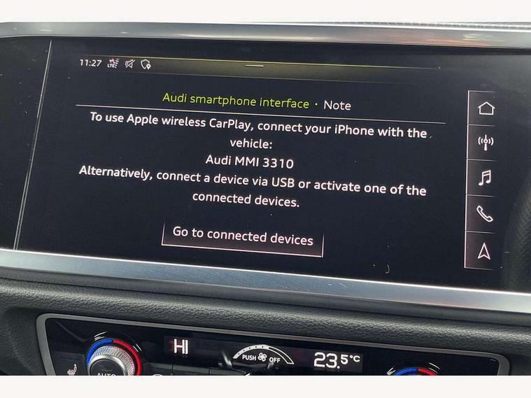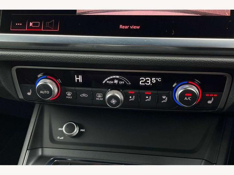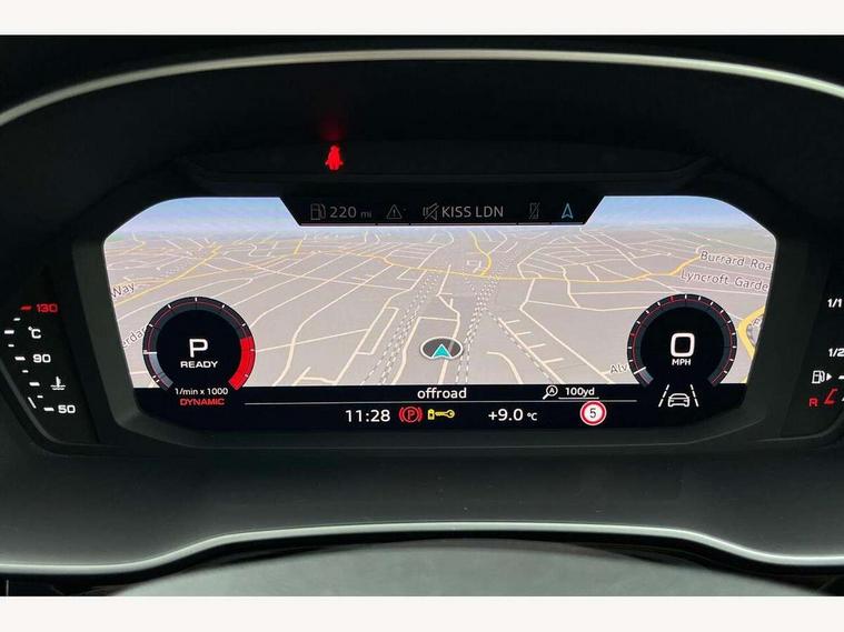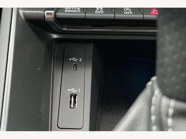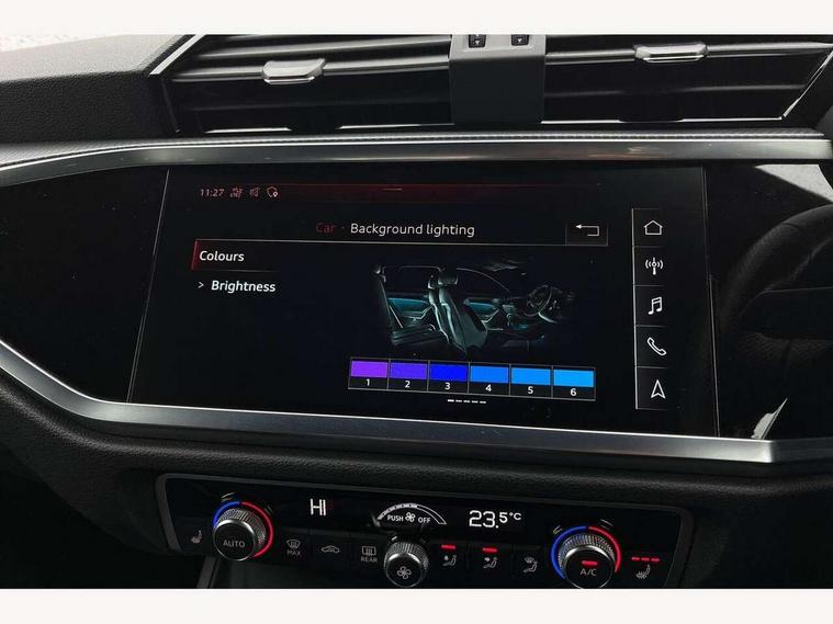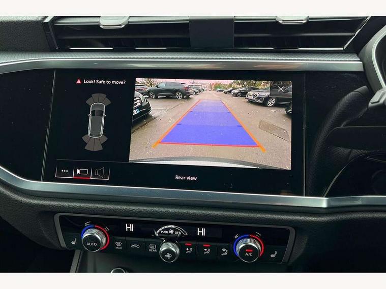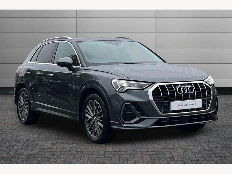 Audi connect safety and service (e-call), Audi drive select, Audi lane departure warning, Audi side assist, Audi Virtual Cockpit - 10.25" display, Bluetooth interface, Camera based traffic sign recognition, MMI Navigation Plus with high resolution 10.1 inch touchscreen colour display, Power operated tailgate, Progressive steering, Service interval indicator, Smartphone interface includes wireless Apple carplay/Android Auto, Start stop system with recuperation, Voice control system with natural language interaction, 48V Mild hybrid technology, Sports suspension, 1 x USB type C and 1 USB type A charging points, 6 passive loudspeakers, DAB digital radio module, Acoustic windscreen, Aluminium roof rails, Aluminium window trim, Auto dimming frameless rear view mirror, Body coloured bumpers, Electrically folding, adjustable and heated door mirrors with integrated LED side indicators and kerb view function for passenger side, Front and rear electric windows, Front fog lights, Front side air inlets in matt platinum grey, Front spoiler blade in matt platinum grey, Grille vertical bars in aluminium silver/Matt, High gloss black finish B and C pillars, LED headlights with LED daytime running lights and dynamic rear indicator, LED rear lights, Privacy glass dark tinted rear and rear-side windows (from B-pillar backwards), Rain and light sensors, Rear diffuser strip in matt titanium black, S line badges on front wings, S Line front and rear bumpers, Side skirt insert in matt Platinium grey, Silver chrome grille surround, Titanium black radiator grille, 12V socket in rear centre console, 40:20:40 folding with manual adjustment for 60:40 forwards/backwards position and backrest angle, Adjustable rear seat bench/backrest with centre armrest and cupholder, Black cloth headlining, Dual zone electronic climate control, Front and rear black floor mats with contrast stitching in rock grey, Front and rear headrests, Front and rear roof module including reading lights, Front centre armrest, Glove compartment lighting, Height and reach adjustable steering wheel, Illuminated door sill trims with S logo, ISOFIX child seat mounting for front passenger with airbag deactivation and outer rear seat including top tether attachment point for outer rear seats, Luggage compartment light, Manual front seats with height adjustment, Perforated leather gearknob, Stainless steel luggage compartment sill finisher, Stainless steel pedals, Non smoking pack - Q3, 3x3 point rear seatbelts, 6 airbags - Driver, front passenger, curtain and side windows, Audi pre-sense front with pedestrain and cyclist recognition, Electrically operated child locks on rear doors, Electromechanical parking brake, Electronic stabilisation control including ABS, ASR and EDL, Hill descent control, Hill hold assist, Pre sense basic, Seatbelt monitoring, Tyre pressure warning, Warning triangle and first aid kit, Anti theft alarm, Anti theft wheel bolts, Remote central locking, Dark matt brushed aluminium inlay, Detail dashboard around MMI touch colour display in glass look, black with surround in aluminium look, Leatherette door armrest, Tool kit, Tyre repair kit,