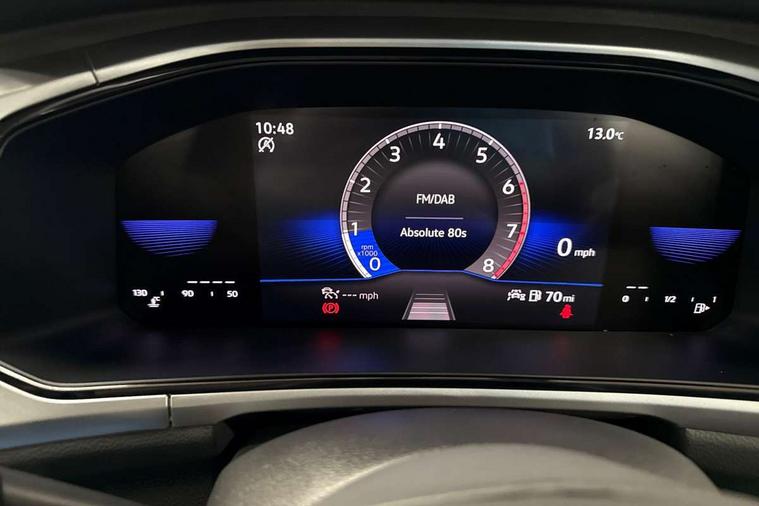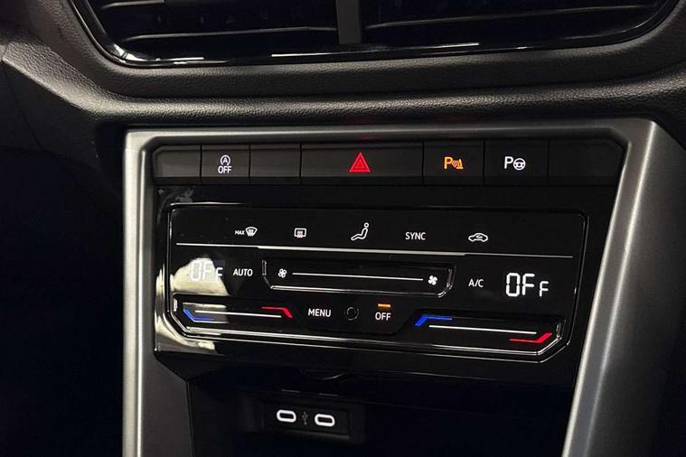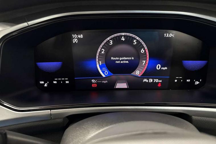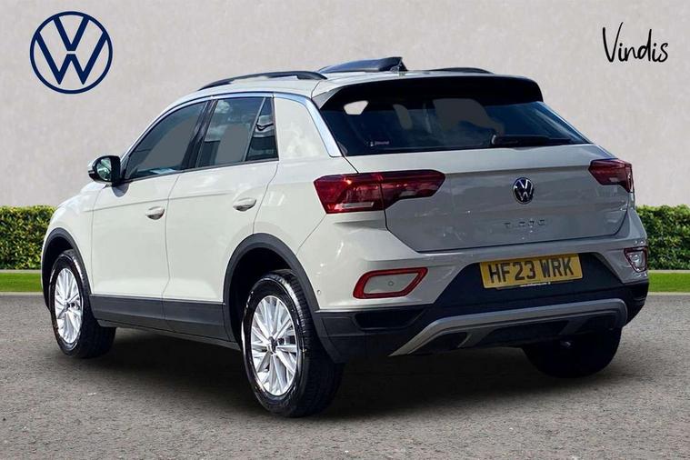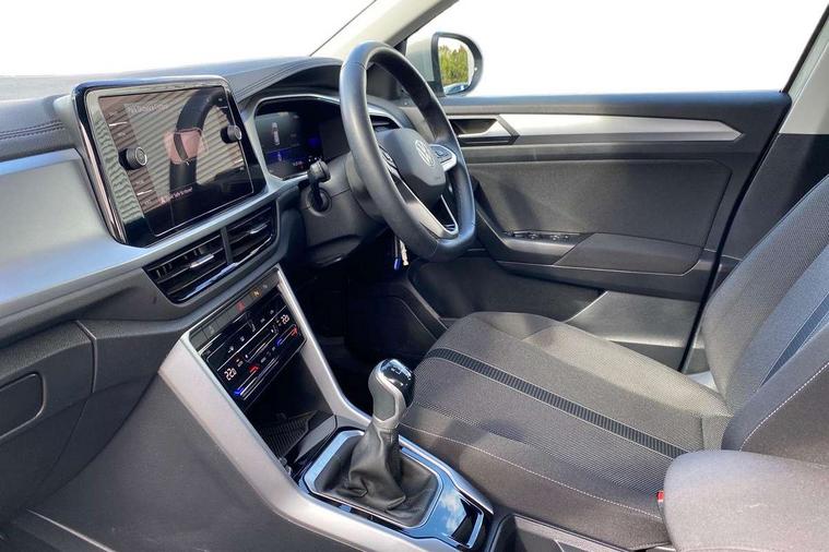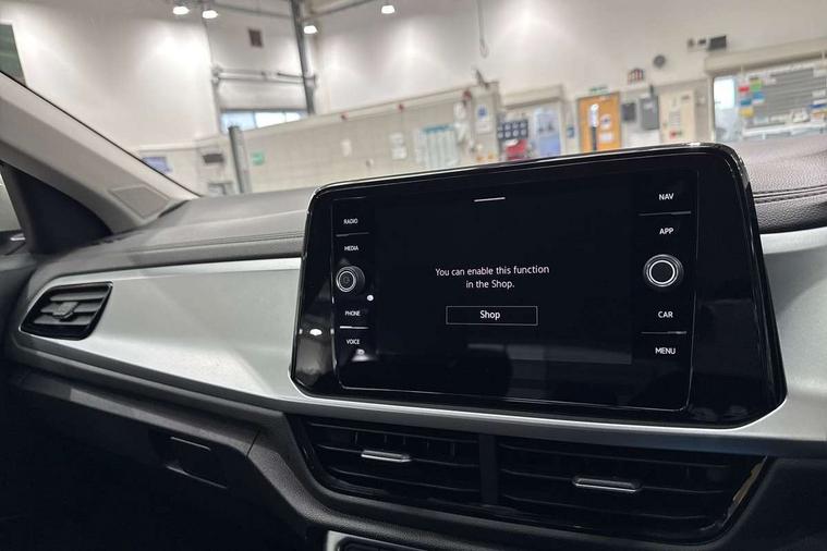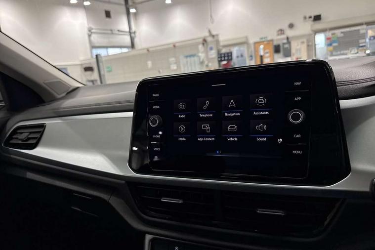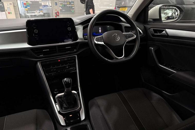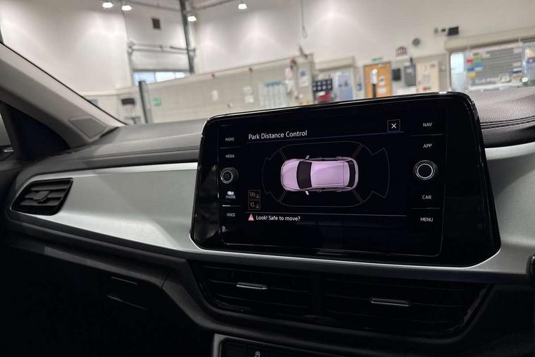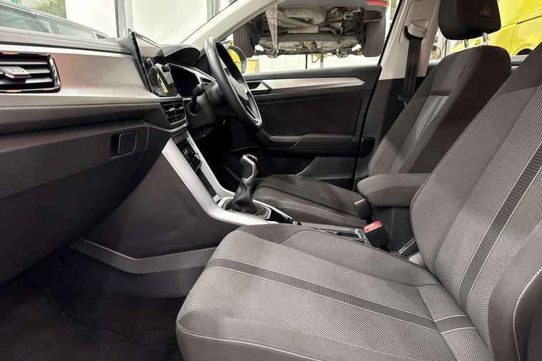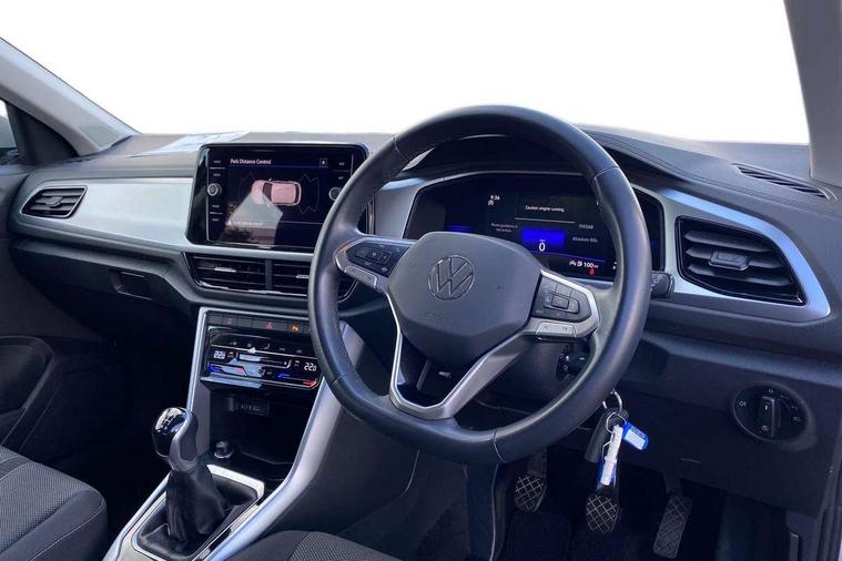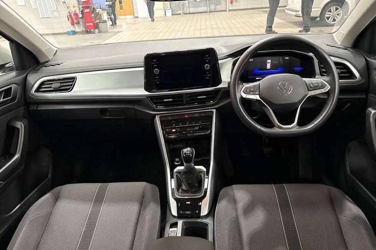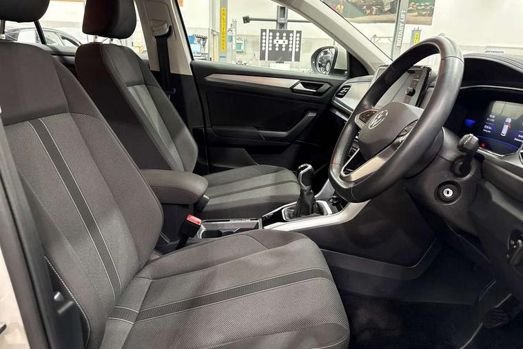 Bluetooth mobile phone interface, Driver alert system with fatigue detection, Driver tips and journey analysis, Emergency call service, Lane keeping system Lane Assist, Modified key software - reduce switch off time for key status change to Long no motion, Online services, Park assist including front and rear parking sensors, Power assisted speed sensitive steering, Service interval indicator, Tailgate/trunk lid release from outside, Think blue trainer driver tips and journey analysis, Warning sound and light for front seatbelts unfastened, Wireless app connect, Battery regeneration during braking, Front shock absorption, Rear shock absorption chassis with increased ride height, Start/stop function with battery regeneration, DAB Digital radio, Diversity antenna for FM reception, Front and rear 6 speakers, Music playback - MP3, WMA and AAC files, Premium USB cable in choice of either Apple or Android smartphone compatibility, SD card slot, Simultaneous pairing of 2 compatible mobile devices, Title and cover art display, We Connect and We Connect Plus functionality, 3rd brake light, Auto dimming interior rear view mirror, Automatic hazard lights activation under emergency braking, Automatic headlight control with LED separate daytime running lights with coming/leaving home function, Black roof rails, Body coloured bumpers and radiator grille with chrome trim and front fog lamps with chrome bezel, Body coloured exterior mirror housings and door handles, Extended roof spoiler, Exterior mirrors aspherical on driver side, convex on front passenger side, External USB type C socket and charging sockets, Front windscreen wiper with intermittent wipe and 4 position delay, Heated rear window, LED Headlights, LED rear combination lamps, LED rear number plate lights, LED tail lamp rear comination lamps, Power windows with comfort operation and circuit breaker, Rain sensor, Rear exhaust tailpipe, Rear fog light on one side and reversing lights on both sides, Rear side wing doors, Rear wash/wipe with intermittent wipe setting, Remote electrically foldable door mirrors, puddle lights and reverse activated passenger's door mirror, 12V power socket in centre console, 3 rear head restraints, 3 seat bench in 2nd row, 4 load lashing points in luggage compartment, Air care climatronic air conditoning system with active combination filter and 2-zone temperature control, Ambient lighting with mirror logo projection, Cloth upholstery, Door and side trim panel in cloth, Drawer under drivers seat, Driver/front passenger seat height adjustment, Front centre armrest, Front comfort sports seats, Front cupholders x 2, Front reading light, Instrument lighting, white adjustable panel illumination, Interior light delay, Isofix child seat preparation, Leather gearshift handle, Load-through provision with cup holder when folded down ('Unsplit rear seat bench, split folding backrest, with centre armrest), Luggage compartment lighting, Lumbar support for driver's and front passengers seat, Non-folding front passenger seat backrest, Single front passenger seat, Storage compartment in left and right luggage area, Storage compartment in rear doors, Storage compartments in driver and front passenger doors, Sunvisors with illuminated vanity mirrors, Variable boot floor, height adjustable and removable, Driver assistance pack without proactive passenger protection - T-Roc, 3 point height adj front seatbelts + pretensioners, 3 point seatbelts in outer rear with ECE label, ABS, Child locks on rear doors, Driver and front passenger airbag with front passenger airbag deactivation, Driver and front passenger safety-optimised head restraints, Drivers seatbelt reminder, Electronic parking brake, Electronic Stability Control (ESC) inc EDL (Electronic Differential Lock) and ASR (Traction Control), Front and rear passengers curtain airbag system including front side airbags, Front assist with city emergency braking and pedestrian monitoring, Front disc brakes, Front seat side impact airbags, Hill start assist, Predictive pedestrian protection, Rear disc brakes, Single tone horn, Tyre pressure loss indicator, Volkswagen roadside assistance, Alarm with interior protection, Anti-theft alarm system with interior monitoring, backup horn, and towing protection, Remote central locking with SAFELOCK, radio remote control with 2 remote control folding keys, Pewter matt decorative inserts for intrument panel, centre console and door panels at the front, Trims for alloy wheels,
