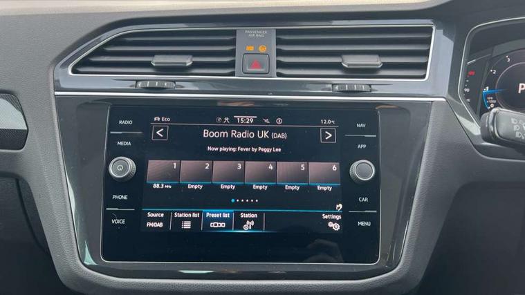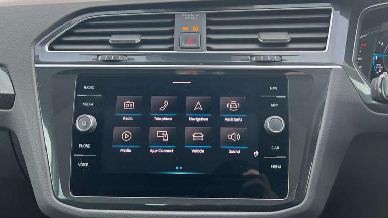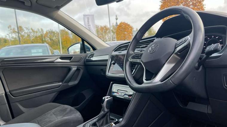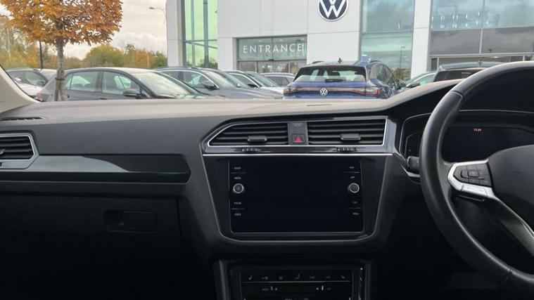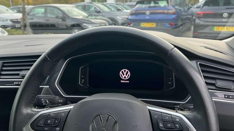 Adaptive cruise control ACC stop and go including speed limiter, App-Connect incl. App-Connect Wireless for Apple CarPlay and Android Auto, Bluetooth phone integration system, Digital Cockpit Pro - Active info display, Distance control assist, Driver alert system, Driver profile selection, Dynamic road sign display, eCall emergency call system, Electromechanical speed sensitive power steering, Engine start/stop button, Lane keeping system Lane Assist, Lights on warning, Motorised electric tailgate operated via key fob, drivers door and foot movement under tailgate, Multifunction front facing camera, Outside temperature display, Premium multifunction display with multi colour display, Remote control boot opening, Rev counter, Revision / skills operating concept travel assistant, Service interval indicator, Speed limit display, Start/stop system with regenerative braking, Tailgate/trunk lid unlocking from outside, Trip computer, Warning sound and light for doors and tailgate open, Battery regeneration during braking, XDS electronic differential lock for improved traction and handling, 2 USB-C ports in the front, 1 USB-C charging socket on the center console in the rear, Diversity antenna for FM reception, Radio, SD card slot, Simultaneous pairing of 2 compatible mobile devices, SMS functionality - read, compose and send SMS messages using touch-screen display, Title and cover art display, Aluminium door sill protectors, Auto dimming interior rear view mirror, Automatic headlight control system, Body colour door handles, Body coloured bumpers, Body coloured door mirrors with integrated indicators, Coming/leaving home lighting function, Dynamic headlight range control, Front and rear electric windows, Heated rear window, High level 3rd brake light, IQ light with advanced high beam control and dynamic light assist for LED matrix headlamps + Dark red rear combination lamp in LED technology, Laminated safety glass windshield, heat and sound insulating, LED rear number plate lights, LED separate daytime running light, Poor weather light and cornering light, Privacy glass for rear side windows and rear window, Rain sensor windscreen wipers, Rear exhaust tailpipe, Rear fog lamp, Rear windscreen washer and wiper with interval delay, Side and rear windows in heat insulating glass, Third brake light, Tilting and sliding panoramic sunroof with rear panoramic sunroof, Trailer Stability Programme, Windscreen wipers/ intermittent wipe + 4 position delay, 12V outlet in center console rear and in luggage compartment, 2 cup holders in front, 2 LED front reading lights, 2 LED rear reading lights, 3 rear headrests, 4 load lashing points, 40:20:40 split folding rear seats, Air Care Climatronic 3 zone automatic climate control with enhanced air filter and controls in the rear, Backrest release for left front seat, Climate control unit rear with touch function, Door and side trim panel in foam film and woven fabric, Front + rear carpet mats, Front centre armrest, Front footwell illumination, Front seats head restraints (x-adjustment), Height adjustable front seats, Height/reach adjust steering wheel, Instrument lighting white adjustable panel illumination, Interior light with delay, Isofix Preparation 2 Rear child seats, Leather gear knob, Lockable cooled glovebox, Luggage compartment lighting, Luggage net, Rear bench seat asymetrically split folding, longitudinally movable and folding with load-through hatch and center armrest, Remote unlocking for rear seat backrest, Removable luggage cover, Safety optimised front head restraints, Sliding/reclining rear seats, Standard rear seat release, Storage compartment in driver's door, Storage compartment in passenger's door, Storage compartment in rear doors, Storage compartments in luggage area left and right, Storage tray on dashboard, Sun visors with illuminated vanity mirrors, Variable boot floor, height adjustable and removable, Ambience pack - Tiguan, Chrome pack - Tiguan, Easy open and close pack with safelock - Tiguan, 3 point seat belt for centre rear seats, 3 point seat belts with seat belt pretensioners for the outer rear seats, Active bonnet, Curtain airbags for front and rear passengers, Driver/Front Passenger airbags, Drivers knee airbag, Electronic parking brake with auto hold, Electronic Stability Control with driver steering recommendation, ABS, ASR, EDL, EDTC and trailer stabilization, Front assist with autonomous emergency braking (for Adaptive Cruise Control ACC up to 130 mph), Front disc brakes, Front passenger airbag deactivation, Front side airbags, Height adjustable front 3 point seatbelts + pretensioners, Hill hold control, Pedestrian monitoring system, Power assisted brakes, Proactive passenger protection system in combination with front assist, Rear disc brakes, Rigid safety cell with front and rear crumple zones, Two tone horn, Warning sound and light for front seat belts if unfastened, Anti theft alarm system with interior monitoring, backup horn and towing protection, Anti theft wheel bolts, Central locking system with safelock radio remote control and 2 remote control folding keys, Electronic engine immobiliser, Tool kit,