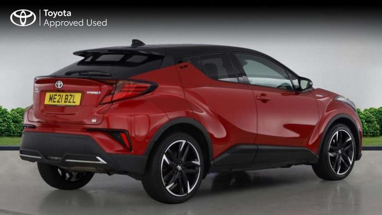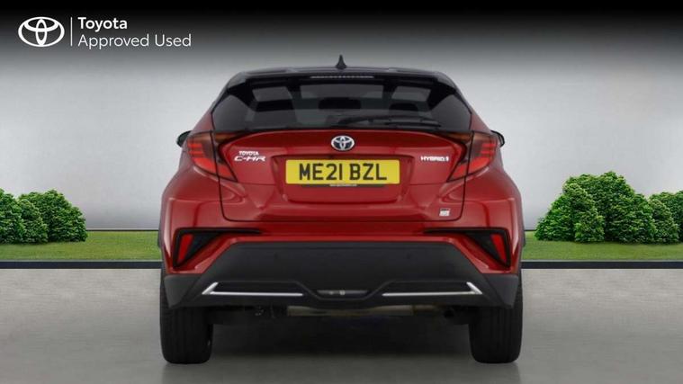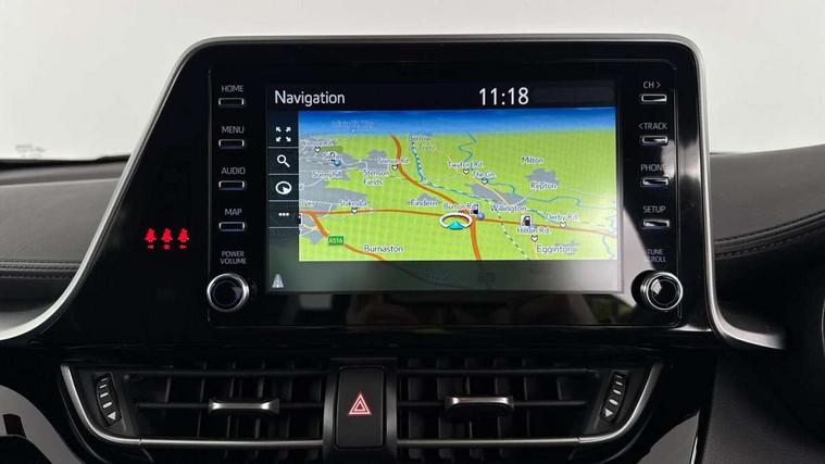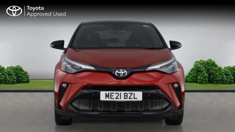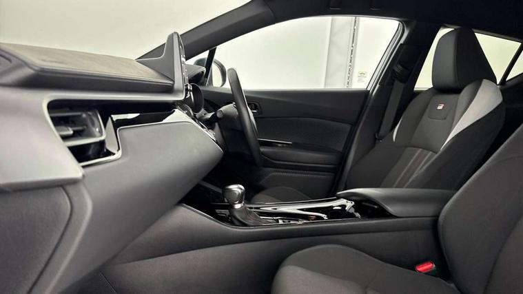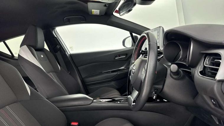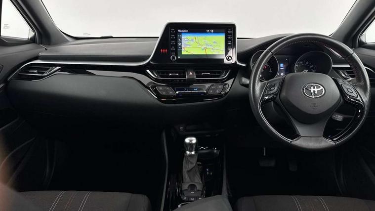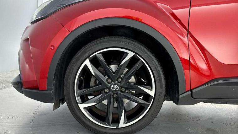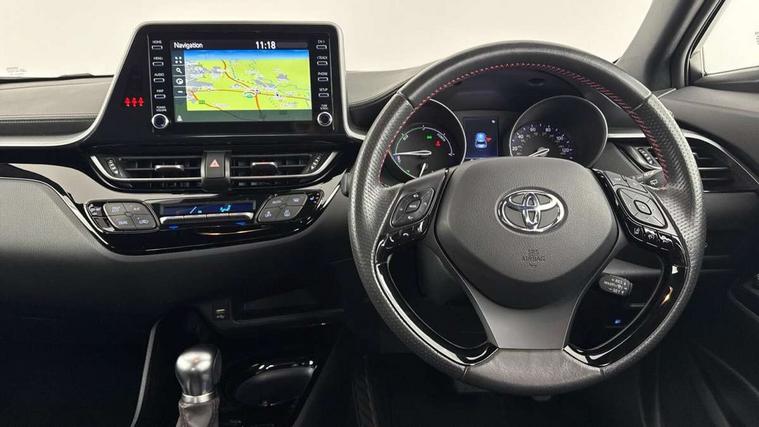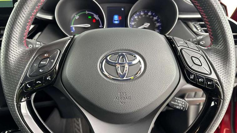 4.2" coloured TFT screen for multi-information display, Adaptive cruise control, Bluetooth connectivity, Electric power steering, Hybrid system indicator, Lane departure alert with steering control, Remote boot door release in cabin, Remote boot door release in key, Reversing camera, Road sign assist - RSA, Simple Intelligent parking assist, Touch 2 Go navigation system, Trip computer, Voice recognition, Vehicle Stability Control (VSC), 6 speakers, AM/FM radio, DAB Radio (Digital Audio Broadcasting), Toyota touch 2 multimedia system with 8" display, USB connector, Wi-fi connectivity, Adaptive front light system, Adaptive LED Headlights, Anti-jam protection on power windows, Auto high beam, Auto up and down function on all power windows, Automatic headlight levelling, Automatic headlights, Automatic headlights cut-off, Black and body coloured rear bumper, Black upper front grille, Body colour door handles, Body colour door mirrors, Body coloured front bumper, Boot door release with push button, Chrome front lower bumper, Electric heated door mirrors, Follow me home headlights, Front and rear power windows, Front spoiler lip in black, Honeycomb lower front grille, LED daytime running lights, LED fog lights, LED front light guide, LED High mounted stop light, LED rear brake lights, LED rear combination lights, Noise reduction layer on front windows and windscreen, Power adjustable door mirrors, Privacy glass, Rear sequential indicators, Rear spoiler, Rear tailgate, Rear window defogger, Rear window wiper, Shark fin antenna, UV-filter on driver and passenger windows, UV-filter on rear windows, 12v power outlet - front, 3 rear headrests, 3 spoke perforated leather steering wheel, 60/40 split folding rear seat, Adjustable rear headrests, Adjustable speed limiter switch on steering wheel, Assist grips front and centre pillar, Audio and telephone switches on steering wheel, Black front door assist grips, Blue ambient lighting on front cup holders, Blue ambient lighting on front doors, Boot light, Chrome interior door handles, Driver and front passenger personal light, Driver and front passenger Whiplash Injury Lessening seats, Driver and passenger seatback pockets, Dual zone automatic air conditioning, Fabric upholstery, Floor mats, Front cupholders, Front head restraints, Front sports seats, Glovebox with internal light, Hard tonneau cover, Heated driver and front passenger seats, Hooks for luggage holding net, Humidifying Nanoe air purifier, Illuminated entry system, Isofix attachments on outer rear seats, Leather gearshift, Light on driver sun visor, Light on passenger sun visor, Manual telescopic steering wheel, Manual tilt steering wheel, Manually height adjustable driver seat, Manually height adjustable front passenger seat, Manually reclining driver seat, Manually reclining front passenger seat, Manually sliding driver seat, Manually sliding front passenger seat, Microphone on front personal light, Mirror on driver sun visor, Mirror on passenger sun visor, Multimedia switches on steering wheel, Pollen filter, Power adjustable lumbar support on driver seat, Shopping bag hooks, Slow opening on lower glovebox, Voice recognition switch on steering wheel, Tech with parking sensor pack - C-HR, 16 Disk front wheel brake, 3x3 point rear seatbelts, ABS+EBD+Brake assist, Electronic parking brake, Front and rear seatbelt reminder, Front passenger airbag on/off switch, Hill start assist control (HAC), Pre collision system with pedestrian detection, Pre-tensioners and force limiters, Rear door child safety locks, SRS Airbags - Driver + Front passenger, front side, front and rear curtain and driver's knee airbags, Toyota safety sense, Tyre pressure monitoring system, Acoustic vehicle alert system (AVAS), Glass-breaking alarm sensors, Immobiliser, Intrusion alarm, Intrusion sensor, Motion sensor alarm, Power passenger window lock, Remote central locking, Black lower dashboard, Black upper dashboard, Piano black console, Silver deco line on upper dashboard, 19" Black machined alloy wheels, Tyre repair kit,