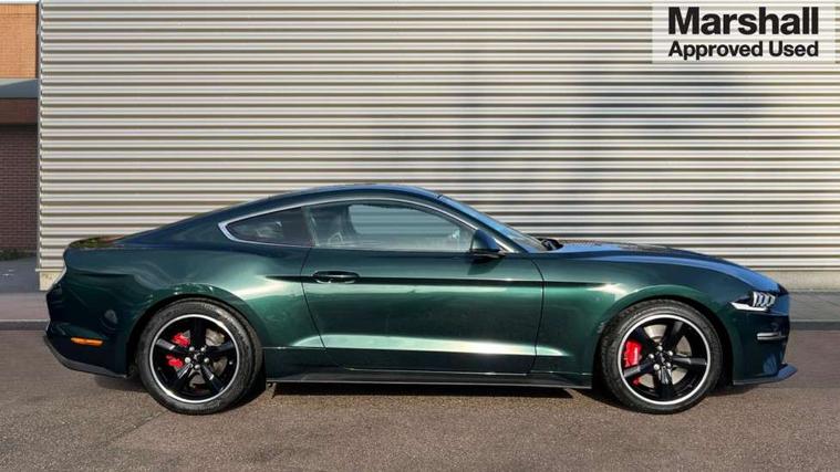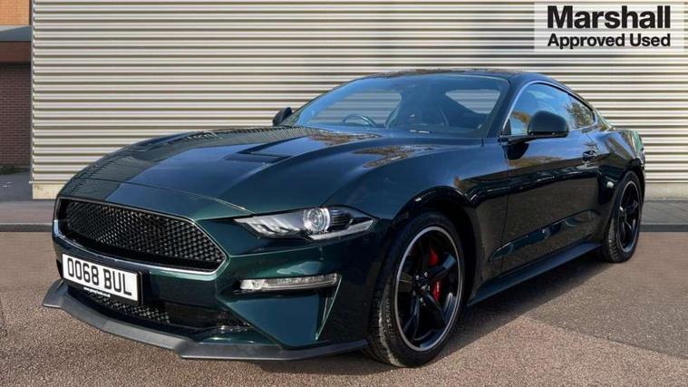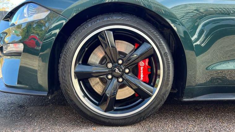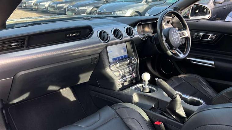 12" digital LCD instrument cluster, Adaptive cruise control, Apple car play/Android Auto, Bluetooth connectivity with voice control, Ford pass connect embedded modem, Ford SYNC 3 satellite navigation + B and O 1000w premium audio system with 12 speakers, Ford SYNC 3 with 8" colour touch screen, Increased top speed and maximum speedometer, Lane departure warning with lane keeping aid, Modified intake manifold, Oil pressure gauge, Rear view camera with rear parking sensors, Selectable driving modes - normal, mymode, snow/wet, sport+, track and drag mode, Service interval indicator, SYNC Emergency Assistance, Track apps with accelerometer technology, Trip computer, Adaptive damping system, Fully independent front and rear suspension, Launch control, Limited slip differential, Open air induction system, DAB Digital radio, USB connection, 5.0 Exterior badge on front wings, Active exhaust system with quad tailpipes, Auto dimming rear view mirror, Auto high beam, Automatic headlights, Automatic rain sensing wipers, Body colour bumpers, Body colour door mirrors, Bonnet air intake, Bullitt badge on instrument panel with unique chassis number, Chrome window surround, Electric front windows, LED headlamps with daytime running lights and LED fog lamps, Magnetic blade decklid rear spoiler, Metallic paint, Power folding door mirrors with Mustang logo projection puddle lamps, Unique front grille, splitter and rear applique, 6 way power adjustable front seats and driver seat power lumbar adjust, Ambient lighting, Cup holders, Dual electronic automatic temperature control, Front headrests, Heated steering wheel, Illuminated entry system, Individually folding rear seats, Isofix system on outer rear seats, Reach and rake adjustable leather steering wheel with integrated controls, Rear head restraints, Recaro leather seats with green detailing, Unique floor mats, Unique green stitching on centre console and gearshift gaiter, Unique white cue ball gearknob, 4 seatbelts, Brembo six piston front brake calipers in red front and rear, Drivers knee airbag, Dual front airbags, Electronic Line Lock, ESP, Front side airbags, Pre collision assist system, Side curtain airbags, Tyre pressure monitor, Unique tuning to chassis, ABS, power steering and stability control, Ford key free system with power starter button and keyless entry, Immobiliser, MyKey system, Thatcham Cat.1 alarm, 19" 5 spoke gloss black finish alloy wheels, Tyre repair kit,