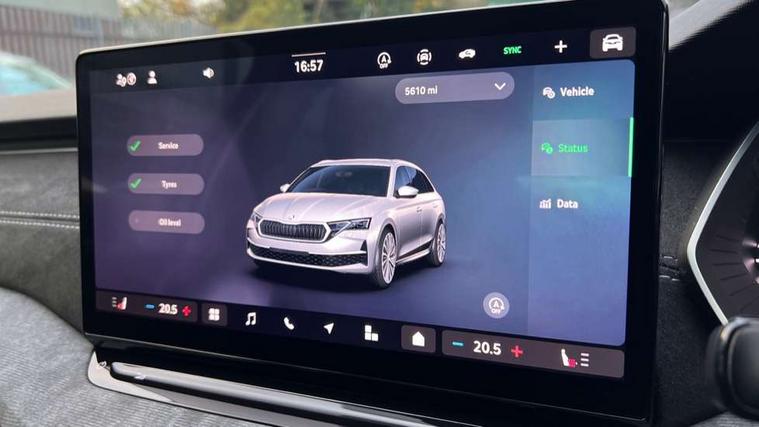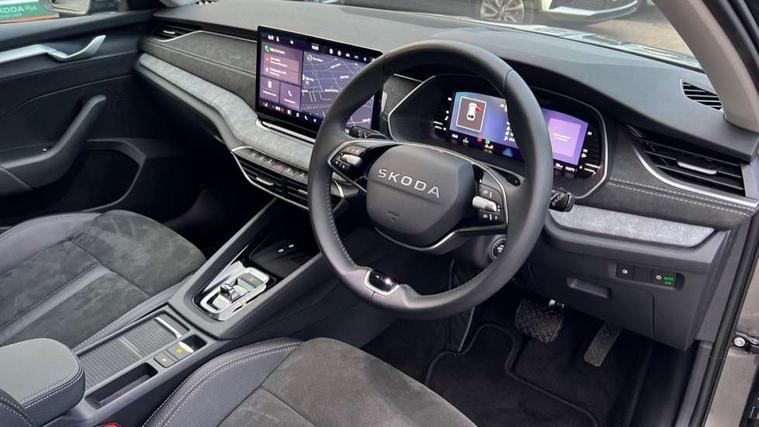 1x USB Typc C port in rear view mirror, 4x USB Type C ports - 2x in front centre console and 2x in rear (45W), Drive mode selection, Driver fatigue sensor, eCall emergency system, Electro-mechanical power steering, Front assist system, Traffic jam assist, Traffic sign recognition, Turn Assist, Virtual Cockpit - 10.25" digital display, Voice control system, Wireless charging (15W) with cooling function, Wireless SmartLink for Apple CarPlay and Android Auto, 13" touchscreen display with navigation, DAB Digital radio, Aero front windscreen wipers with intermittent function, Auto dimming rear view mirror, Body colour bumpers, Body colour door mirrors and handles, Chrome grille surround, Chrome roof rails, Chrome strip in lower front bumper, Chrome window surrounds, Electric front and rear windows, Heated rear windscreen, High level third brake light, Ice scraper in fuel cap, LED daytime running lights, LED Headlights, Logo projection in front doors, Rain and light sensors, Rear fog light on one side, Rear privacy glass, Rear side wing doors, Rear spoiler, Rear window wiper, 12 volt socket in boot, 3 rear headrests, 3 seat bench in 2nd row, 4 foldable roof handles, Front head restraints, Heated front seats, Illuminated glovebox, Interior door handles in dark chrome, Jumbo Box storage, Luggage compartment lighting x2 lights, Mechanical rear seat release from boot, Single front passenger seat, Steering wheel in black leather with black stitching, Storage compartments in left and right of boot, Sun visors with mirrors, Sunglasses storage, Ticket holder, Umbrella in door panel, Unsplit rear bench seat, split folding backrest with centre armrest with cupholder, Comfort package - Octavia Estate, Simply clever package premium - Octavia, 3x3 point rear seat belts, Alarm with interior monitoring, tilt sensor and back up horn, Curtain airbags and front side airbags, Driver and front passenger airbags, Drivers knee airbag, Electronic parking brake, ESC including ABS, EBV, MSR, ASR, EDS, HBA, DSR, Front central airbag, Hill hold assist, ISOFIX on front passenger seat and outer rear seats, Passenger airbag deactivate switch, Three point seat belts in front and rear, Two tone horn, Tyre pressure monitor, Visual and acoustic seat belt reminder, Warning reflectors in front door, Anti-theft wheel bolts, Keyless start/stop, Remote central locking, Chrome air vent surrounds,