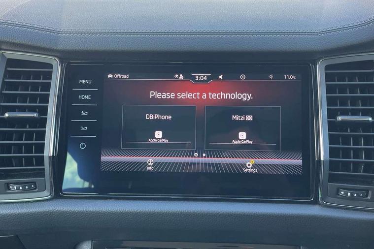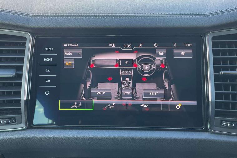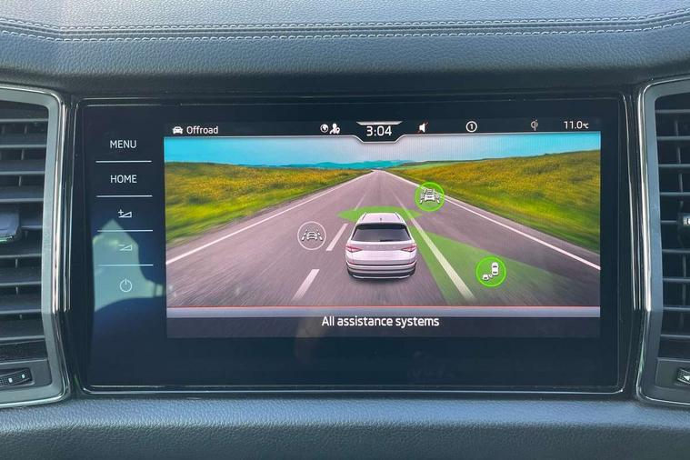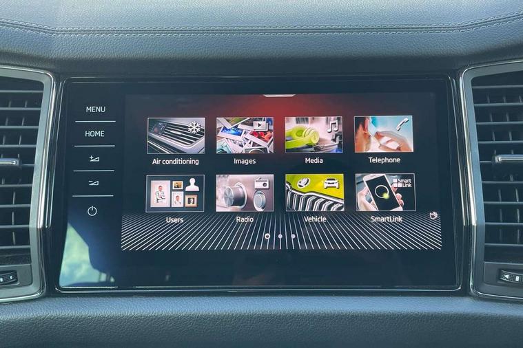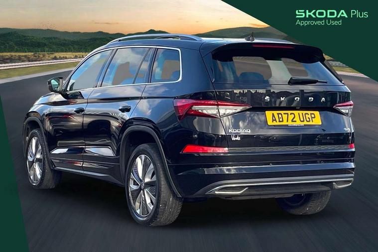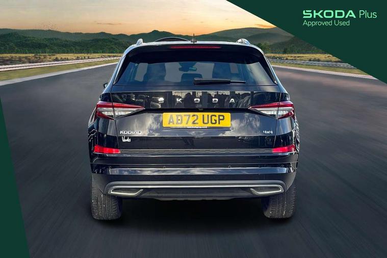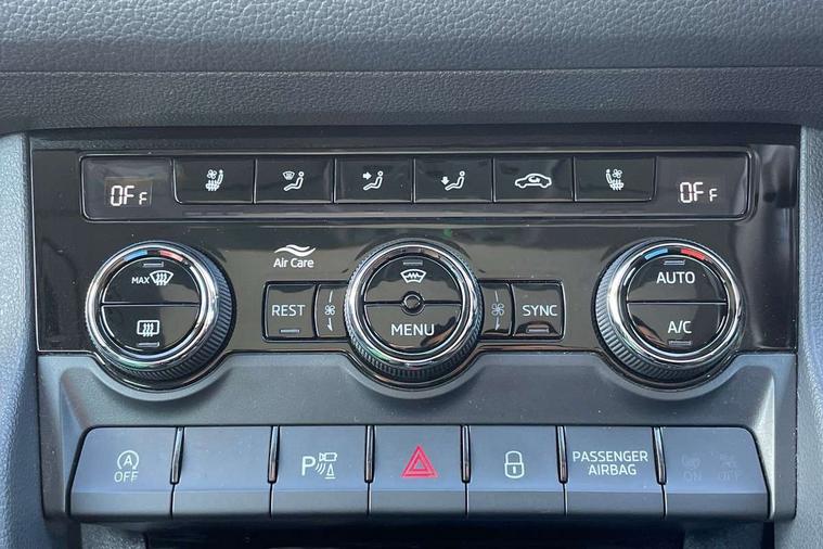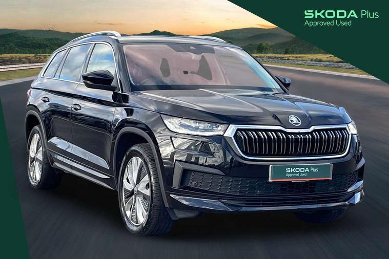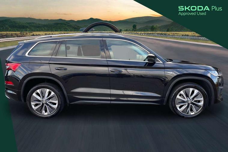 Area view, Blind spot detection system, Bluetooth system, Columbus satellite navigation with 9.2" touchscreen, integrated Wi-Fi, web radio, Digital voice enhancement, E-call, ECO Stop/start function, Exterior temperature indicator, Progressive steering, Smartlink wireless for apple carplay and wired for android auto, Speed limiter, Tailgate unlocking from outside, USB C Port x 2 in front centre console, Virtual Cockpit - 10.25" digital display, Wireless charging, Canton sound system, DAB Digital radio, Aero front windscreen wipers with intermittent function, Aero rear window wiper, Auto dimming rear view mirror, Black wheel arch surrounds, Body colour bumpers, Body colour door mirrors and handles, Body colour door panels, Chrome front grille, Chrome roof rails with chrome window surround, Electric adjustable/heated/folding door mirrors, driver side auto dimming with boarding sports and memory function, Electric front and rear windows, Extended rear spoiler with finlets in gloss black, Front fog lights, Full LED matrix headlights with AFS (adaptive front light system), cornering function and AWL (all weather lighting system), Headlight washers, Heated rear window, Invisible tailpipe, L&K front and rear bumpers including lower rear chrome strip, LED daytime running lights, LED rear fog light, LED third brake light in rear spoiler, Light assistant (coming/leaving home/tunnel light), Off-road style lower front bumper element, Panoramic sunroof, Privacy glass, Rain and light sensors, Rear LED lights (high functionality) with welcome effect and dynamic indicators, Rear side wing doors, Safety reflectors on front and rear doors, Window control switches with black trim, Without engine designation, 12V socket in boot, 2 rails with 2 hooks, 2 seat bench in 3rd row, 3 seat bench in 2nd row, 4 foldable roof handles with rear coat hooks, 60:40 foldable rear seat with sliding adjustment and backrest angle adjustment, Aluminium pedals, Bottle holders in door panel in the 1.5 litre front and 1 litre rear, Cargo storage compartments, Chrome headlight control button, Chrome interior door handles, Coat hooks on B pillar, Covered storage compartment on driver side, Front centre armrest with storage compartment, cup holder and 12V socket, Front courtesy lights, Gear shift lever with chrome frame and black gloss insert, Grey stitching in front and rear armrests and door armrests + door inserts, Height adjustable front headrests, Illuminated and cooled glovebox, Illuminated luggage compartment, Isofix child seat fittings in outer rear seats with top tether, Manually adjustable steering column, Net programme in boot (1x horizontal Net, 2x vertical Nets), Overhead glasses storage compartment, Pollen filter, Rear centre armrest with cupholders, Single front passenger seat, Sliding trunk cover, Small Bags on the inner sides of the front backrests, Sunvisors with illuminated vanity mirrors, Three rear height adjustable headrests, Ticket holder on A Pillar, Umbrella in door panel, Variable boot floor, LED Interior light pack - Kodiaq, Auto door release and activation of warning lights in the event of an accident, Child locks on rear doors, Driver and front passenger airbag with knee airbag and front passenger airbag deactivation, Electronic parking brake with hill start assist, Emergency rear braking signal, ESC (incl. ABS+MSR+ASR+EDS+HBA+DSR+RBS+MKB), Front assist with autonomous emergency braking, Front side airbags with curtain airbags, Fuel cut off safety device, Height adjustable front 3 point seatbelts + pretensioners, Hill hold control, Rear disc brakes, Safety vest holder in door, Seat belt reminder for all seats, Three point rear seat belts, Two tone horn, Tyre pressure monitor, Alarm with interior monitoring and tilt sensor with safe function, Anti-theft wheel bolts, Immobiliser, Keyless entry and start system (KESSY), Remote central locking with 2 keys, Grey stitching in dashboard, Piano black decorative inserts, Plaquette L&K front fenders, Temporary spare wheel (space saver),