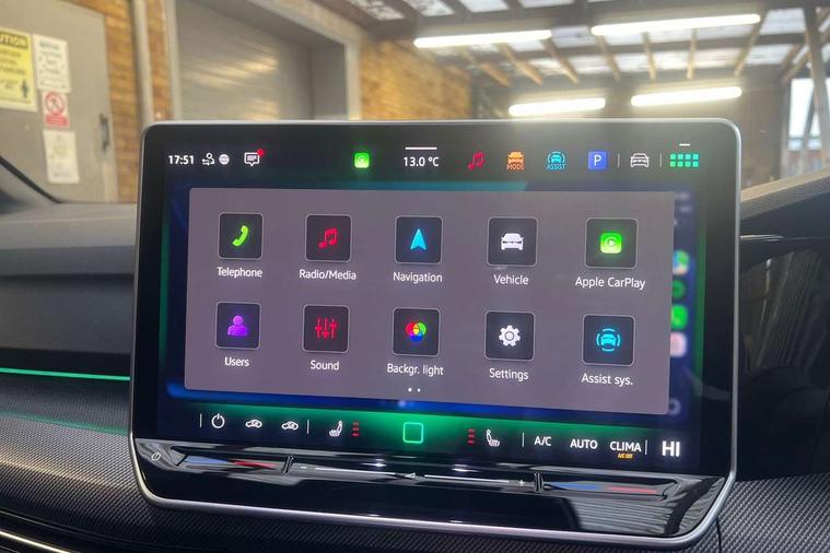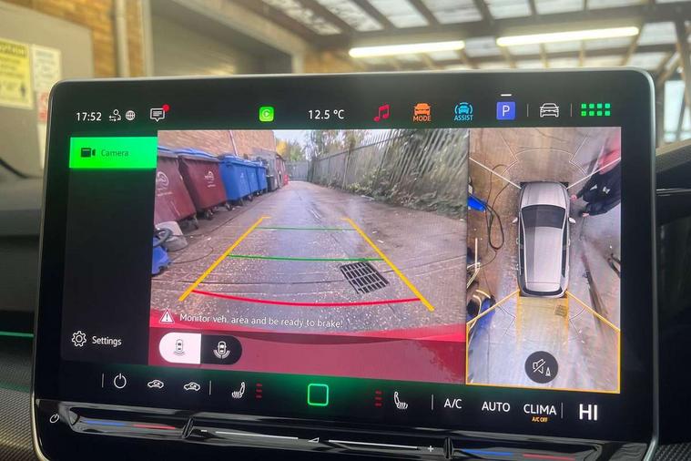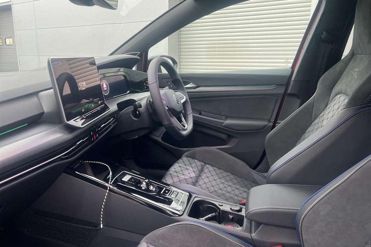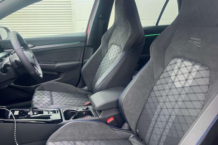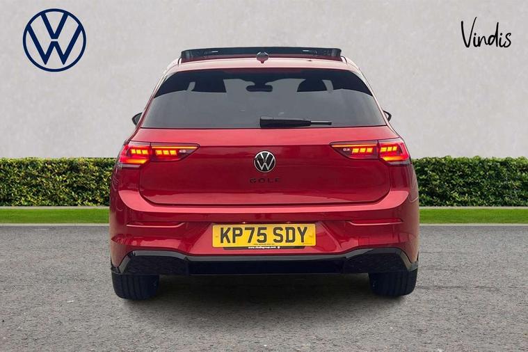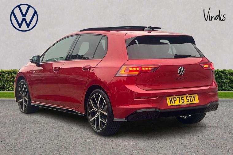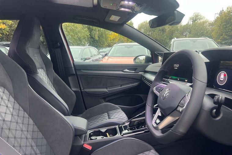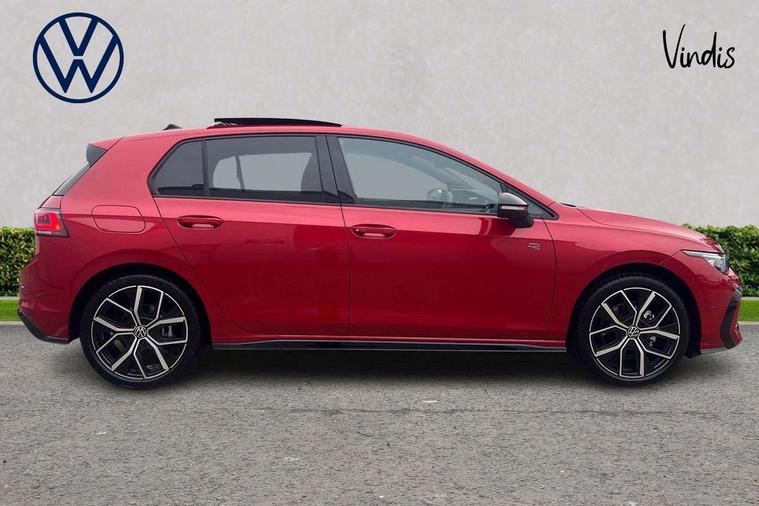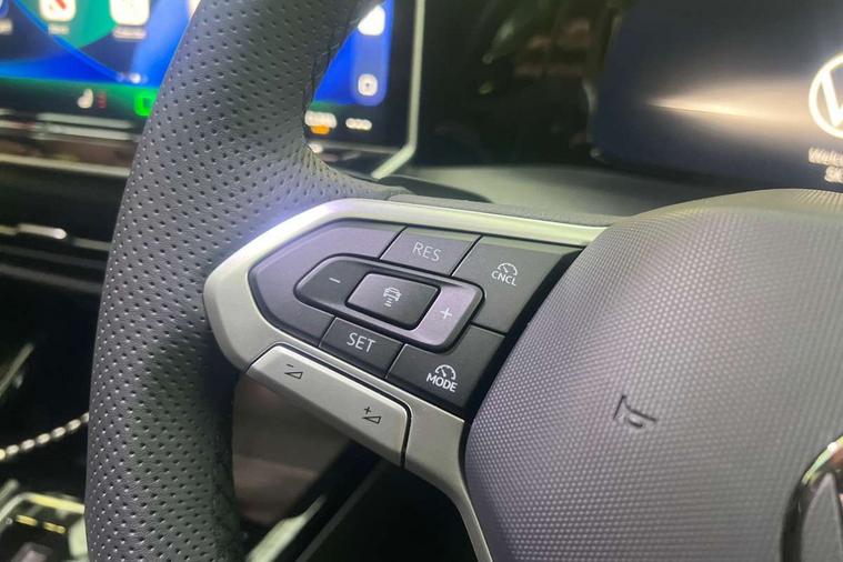 Activated carbon canister, Adaptive cruise control (ACC), Advanced driver attention and drowsiness monitor, Dynamic road sign display, Dynamic steering, E-Sim card for online connectivity, eCall emergency call system, Multi-color Digital cockpit pro, selection of different info profile possible, Multifunction front facing camera for distance control, Navigation system, Oncoming vehicle braking when turning including swerve support, Speed limiter, Speedo, rev counter, electronic odometer, trip, service interval display, exterior temperature and fuel gauge, Traffic jam assist, Voice enhancer and voice control, Warning signal and warning light for front and rear seatbelts not fastened, We connect plus preparation, We connect preparation, Wireless app connect, Hybrid propulsion system, Petrol Particulate Filter, Start-stop system with battery regeneration (recuperation - energy recovery during braking), XDS electronic differential lock for improved traction and handling, 2 USB C ports in front, 2 USB charging sockets on the centre console in the rear charging capacity upto 45W, Digital radio reception (DAB), Diversity antenna for FM reception, Gaming platform via car app, Infotainment system with 12.9" display, Mobile phone interface with inductive charging feature, 3rd brake light, Auto dimming rear view mirror, Automatic headlamp activation with Coming home and Leaving home feature, Body colored bumpers in R-Line style, Body colour door handles, Exterior ambient lighting, Exterior mirrors convex on the left and aspherical on the right, Front and rear electric windows, Heat insulating windshield made of laminated glass, LED separate daytime running light, Rain sensor, Rear exhaust tailpipe, Rear fog light on one side and reversing lights on both sides, Rear side wing doors, Rear windscreen washer and wiper with interval delay, Remote electrically foldable door mirrors, puddle lights and reverse activated passenger's door mirror, Volkswagen logo in front, illuminated lighting animation with wake up/goodbye scenario and illuminated door handles, Welcome light with surround lighting, 12V socket in front centre console, 12V socket in luggage compartment, 3 rear head restraints, 3 seat bench in 2nd row, Ambient lighting with 30 colour including LED light unit in front footwell with selectable light colour, Black roof lining, Brushed stainless steel pedals, Chrome plated radiator grille inserts, air vent surrounds and light switch surrounds, Door insert, side trim panel and arm support in leatherette, Front + rear black carpet mats, Front centre armrest, Front seat lumbar support adjuster, Integrated front head restraints, ISOFIX anchors for child seats on outer rear bench seats and on front passanger seat compatible for i-Size, Luggage compartment lighting, Manual height adjustable front passenger seat, Manually height adjustable driver seat, Plastic gear knob, Premium sports seats in front, Rear cupholder and loadthough, Sardegna cloth upholstery with front and outer rear seats Art Velour inner sides of bolsters, Single front passenger seat, Split folding backrest with centre armrest and unsplit rear seat bench, Sun visors with illuminated vanity mirrors, Titanium black instrument panel, Black exterior Styling package with Matrix LED headlights - Golf, Winter package - Golf DSG Estate/Hatchback, 3 point height adj front seatbelts + pretensioners, 3 rear three point seatbelts, ABS, Autonomous emergency braking front assist with pedestrian and cyclist monitoring, Child locks on rear doors, Driver and front passenger airbag with front passenger airbag deactivation, Electronic parking brake with auto hold, ESC (Electronic Stability Control), Extended pedestrian protection measures, Hill start assist, Rear disc brakes, Two tone horn, Tyre pressure loss indicator, Volkswagen roadside assistance, Anti theft wheel bolts, Preparation for alcohol interlock, Decorative inserts carbon grey for dashboard and front door trim panels, 18" Leeds alloy wheels, Tool kit for tyre mobility set, Tyre mobility kit Includes 12V compressor and tyre sealant,