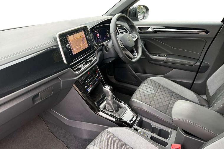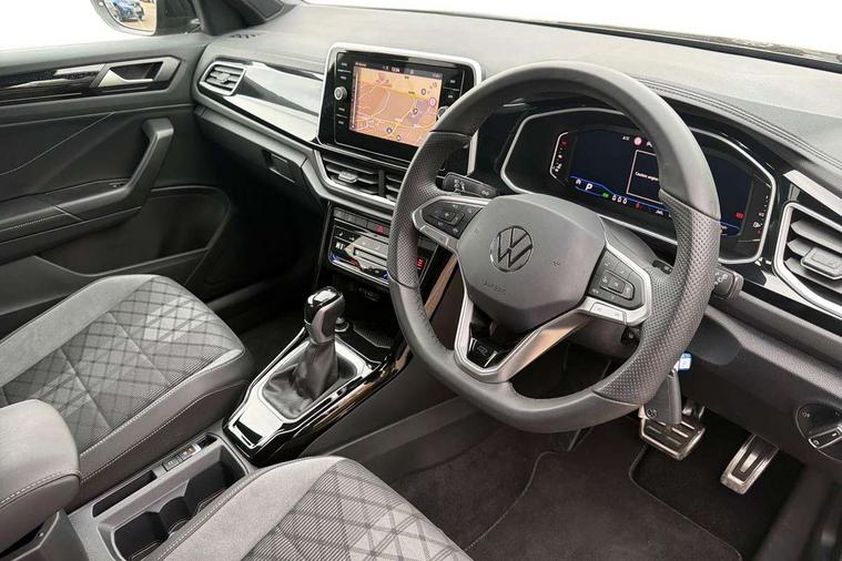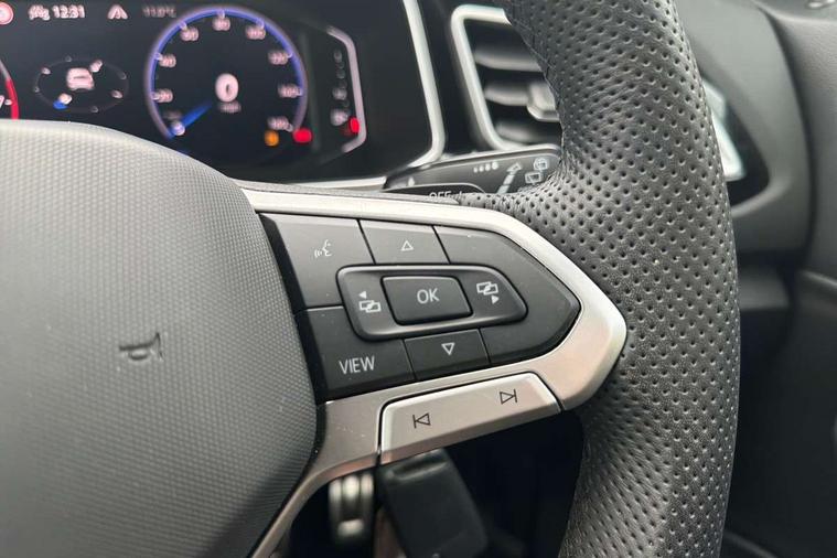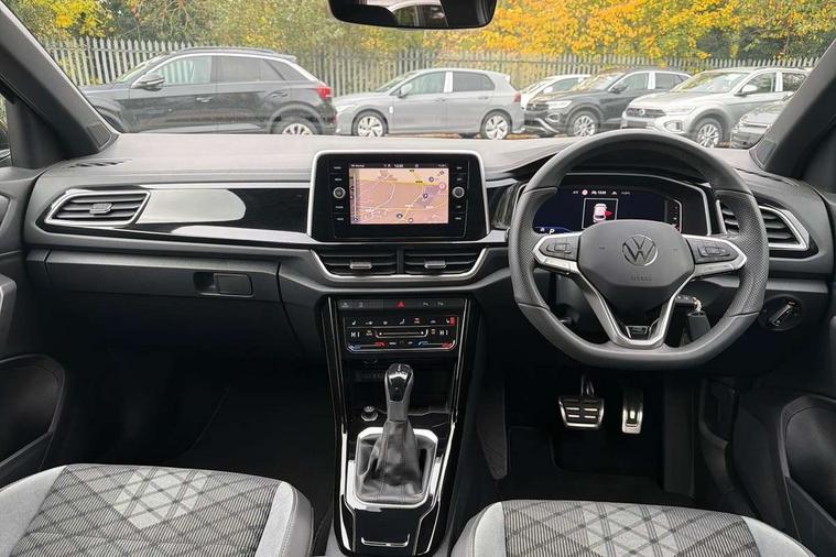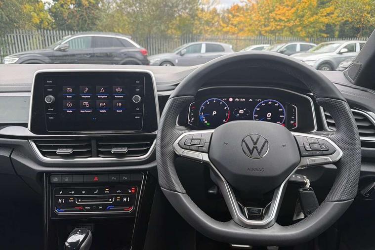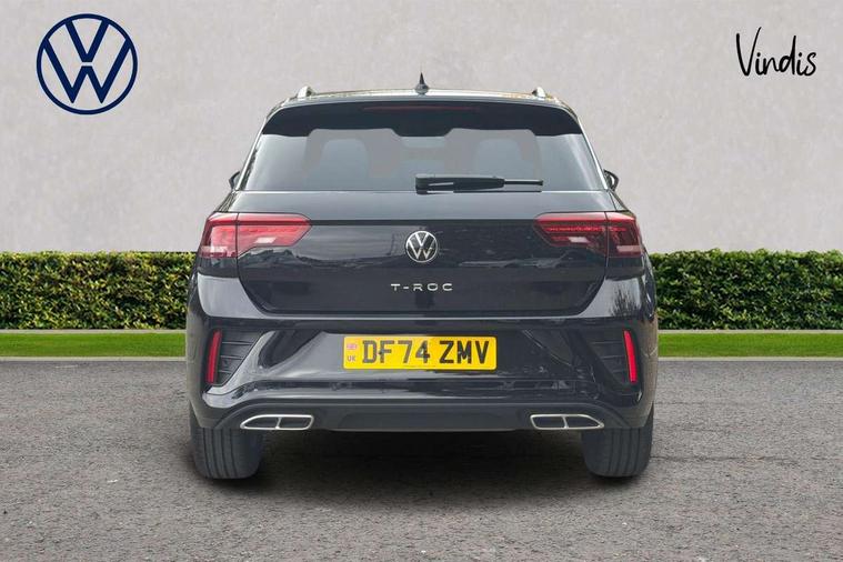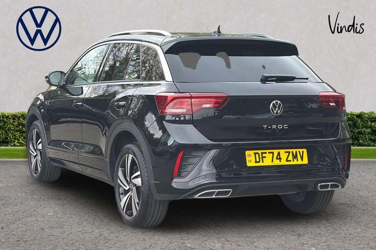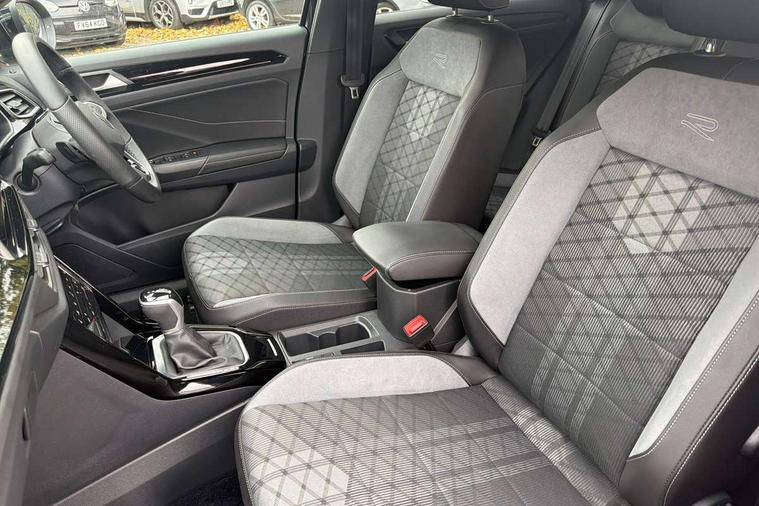 10.25" Digital cockpit pro, Advanced driver attention and drowsiness monitor, Emergency call service, Lane keeping system Lane Assist, Mobile phone interface, Modified key software - reduce switch off time for key status change to Long no motion, Online services, Park assist including front and rear parking sensors, Service interval indicator, Tailgate/trunk lid release from outside, Think blue trainer driver tips and journey analysis, Warning sound and light for front seatbelts unfastened, Wireless app connect, Battery regeneration during braking, Start/stop function with battery regeneration, DAB Digital radio, Diversity antenna for FM reception, Front and rear 6 speakers, Music playback - MP3, WMA and AAC files, Premium USB cable in choice of either Apple or Android smartphone compatibility, SD card slot, Simultaneous pairing of 2 compatible mobile devices, Title and cover art display, We Connect and We Connect Plus functionality, Auto dimming interior rear view mirror, Automatic hazard lights activation under emergency braking, Automatic headlight control with LED separate daytime running lights with coming/leaving home function, Body coloured exterior mirror housings and door handles, Electrically adjustable and heated door mirrors, Extended roof spoiler, Exterior mirrors aspherical on driver side, convex on front passenger side, External USB type C socket and charging sockets, Front windscreen wiper with intermittent wipe and 4 position delay, Heated rear window, LED 3rd brake light, LED rear combination lamps, LED rear number plate lights, Power windows with comfort operation and circuit breaker, Privacy glass for rear side windows and rear window, R-Line design body coloured bumpers, Rain sensor, Rear exhaust tailpipe, Rear fog light on one side and reversing lights on both sides, Rear side wing doors, Rear wash/wipe with intermittent wipe setting, Remote electrically foldable door mirrors, puddle lights and reverse activated passenger's door mirror, 12V power socket in centre console, 3 rear head restraints, 3 seat bench in 2nd row, 4 load lashing points in luggage compartment, Air care climatronic air conditoning system with active combination filter and 2-zone temperature control, Black roof lining, Chrome plated decorative trims, Chrome plated radiator grille inserts, air vent surrounds and light switch surrounds, Door and side trim panel with leatherette insert, Front + rear carpet mats, Front centre armrest, Front cupholders x 2, Front footwell illumination, Front reading light, Front scuff plates with R Line logo, Front seat back storage pockets, Glove compartment door with light, Instrument lighting, white adjustable panel illumination, Interior ambient lighting and surround lighting, Interior light delay, Isofix child seat preparation, Leather gearshift handle, Load-through provision with cup holder when folded down ('Unsplit rear seat bench, split folding backrest, with centre armrest), Luggage compartment lighting, Single front passenger seat, Stainless steel pedals, Storage compartment in left and right luggage area, Storage compartment in rear doors, Storage compartments in driver and front passenger doors, Sunvisors with illuminated vanity mirrors, Variable boot floor, height adjustable and removable, Driver assistance pack without proactive passenger protection - T-Roc, 3 point height adj front seatbelts + pretensioners, 3 point seatbelts in outer rear with ECE label, ABS, Child locks on rear doors, City emergency braking and pedestrian monitoring, Driver and front passenger airbag with front passenger airbag deactivation, Driver and front passenger safety-optimised head restraints, Drivers seatbelt reminder, Electronic parking brake, Electronic Stability Control (ESC) inc EDL (Electronic Differential Lock) and ASR (Traction Control), Front and rear passengers curtain airbag system including front side airbags, Hill start assist, Predictive pedestrian protection, Rear disc brakes, Two tone horn, Tyre pressure loss indicator, Volkswagen roadside assistance, Piano black decorative inserts in dashboard and front door trim panels, Trims for alloy wheels,
