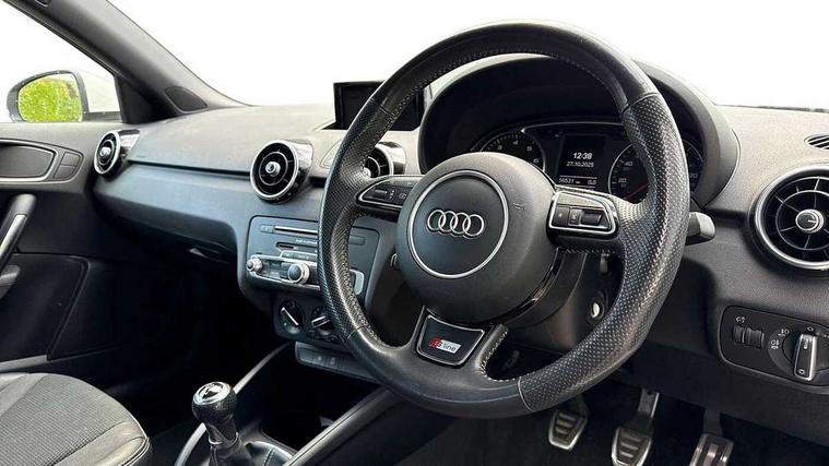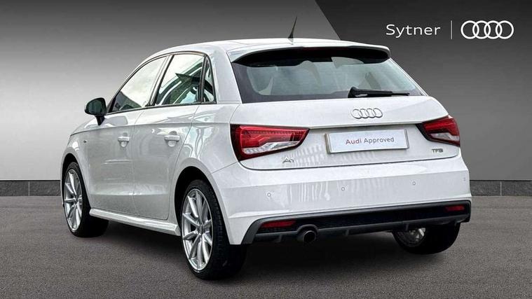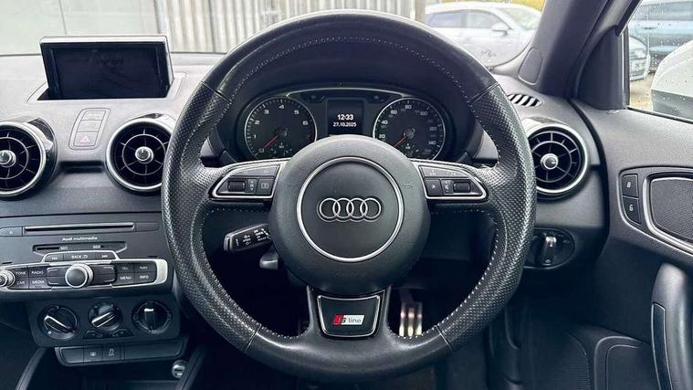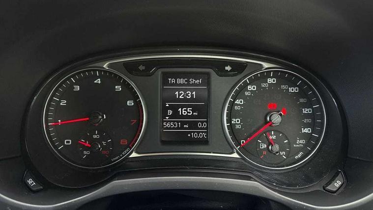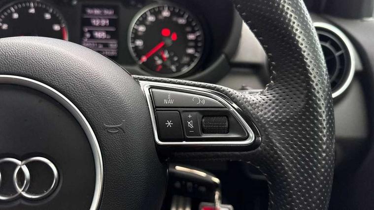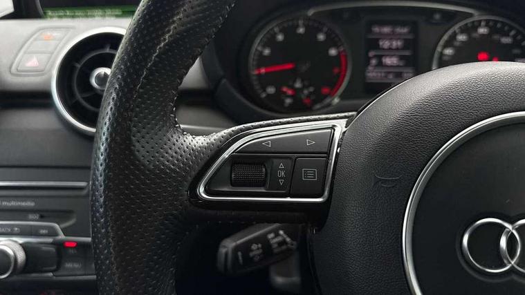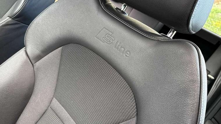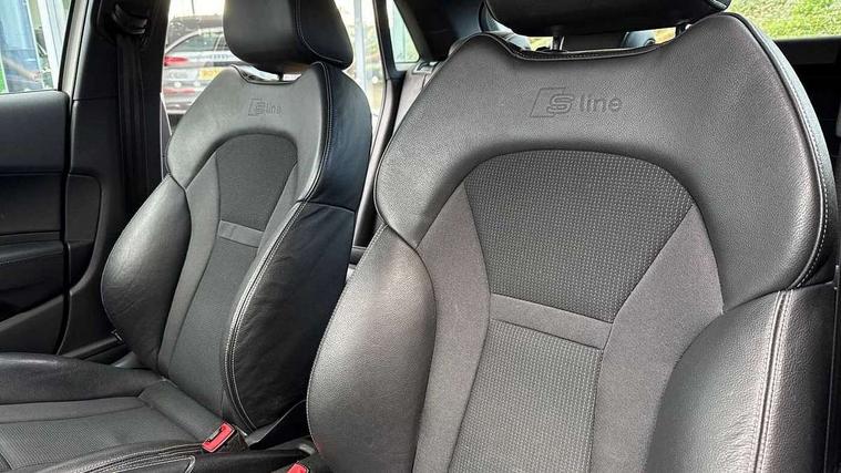Cruise control, Driver's information system, Electro-mechanical PAS, Low washer fluid indicator, Service interval indicator, Voice control system, Additional SD card reader, Audi music interface, Bluetooth audio streaming, DAB Digital radio, Adaptive brake lights, Body coloured bumpers, Body coloured door mirrors, Electric adjustable door mirrors, Electric front windows, Electric rear windows, Front fog lights, Heat insulating glass, Heated door mirrors, Heated rear windscreen, Polished stainless steel tailpipe, Rear wiper, Roof spoiler, S Line body styling, Xenon plus headlights including automatic headlights, LED daytime running lights, LED rear lights, dynamic range control and headlight washers, 12V Accessory socket in centre console, 3 rear seats, Adjustable rear head restraints, Black cloth headlining, Cupholders in centre console, Door sills trims with aluminium inlays, Front floor mats, Front head restraints, Front sports seats, Height adjustable front seats, Isofix attachments on outer rear seats, Jack and tool kit, Leather gear knob, Leather handbrake, Lumbar adjustment for front seats, Rake/reach adjustable steering wheel, Split folding rear seats, 3x3 point rear seatbelts, ABS/EBD, Brake assist function, Driver and passenger side airbags, Driver/Front Passenger airbags, EDL, ESP with ASR, First aid kit, Front and rear seatbelt reminder, Front passenger airbag deactivation, Head airbags, Height adjustable front seatbelts, Tyre pressure monitor, Warning triangle, Locking wheel bolts, Remote central locking with 2 remote folding keys, Thatcham category 1 alarm + immobiliser, Tyre repair kit,