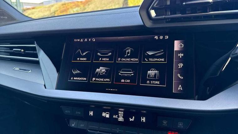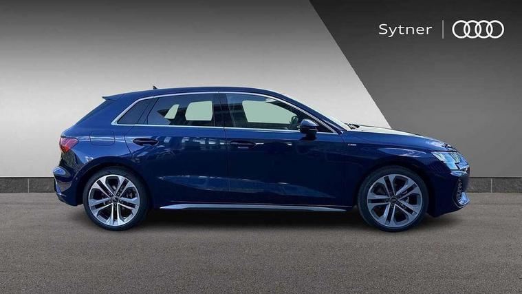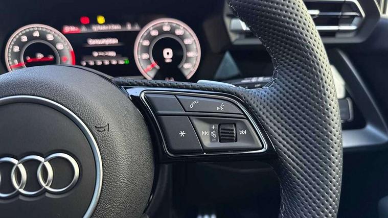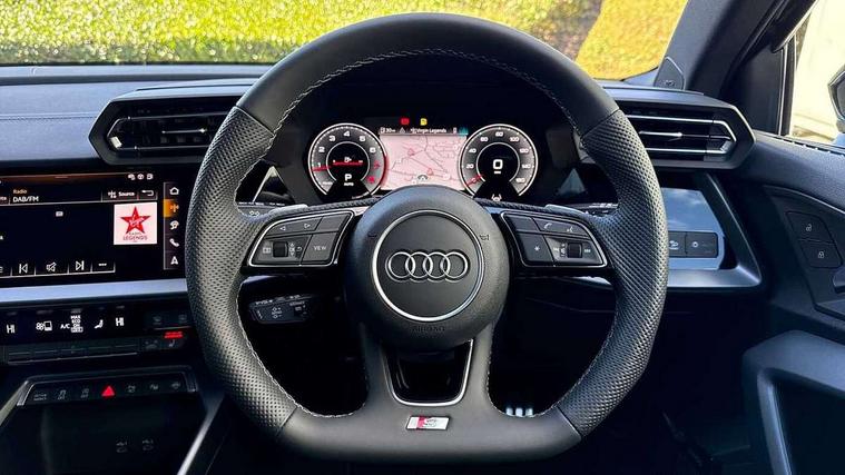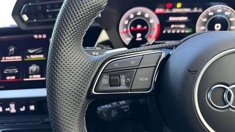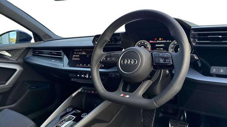 Adaptive cruise control (ACC), Adjustable speed limiter, Audi drive select (Auto, Comfort, Dynamic, Efficiency and Individual), Audi virtual cockpit plus - 12.3" full HD resolution dynamic digital instrument cluster, Automatic start/stop system with recuperation, Bluetooth interface, Camera based traffic sign recognition, Collision avoidance assistant, Driver attention and fatigue detection, e-Call (emergency call), Electromechanical power speed sensitive steering, Emergency assist, Intersection assist, Lane departure warning system, MMI Navigation Plus with high resolution 10.1" colour touch screen display, Park Assist with parking system Plus, Reversing camera, Service indicator, Smartphone interface with app store includes wireless Apple carplay, Android auto and Amazon alexa integration, Trip computer, Voice control system with natural language interaction, Sports suspension, Audi Phonebox light with wireless charging, Audi sound system - 10 loudspeakers including centre loudspeaker and subwoofer, DAB Digital radio, USB ports with charging function in the rear, Acoustic glass windscreen, All weather light, Aluminium window trim, Auto dimming frameless rear view mirror, Automatic dynamic range control, Body colour exterior mirrors, Chrome exhaust tailpipes, Dipped beam, main beam, position light and turning light, Electrically adjustable/heated/folding/auto dimming door mirrors with integrated LED indications + kerb view function for passenger side, Exterior model badging, Front and rear side air inlets in grained matt black with dark liquid chrome frame, Front electric windows, Front radiator grill in high gloss dark chrome, Heat insulating glass windscreen, Illuminated door sills with aluminium inserts at the front with S logo, Intersection light, LED 3rd brake light, LED brake lights, LED daytime running x3, LED headlights with LED rear lights and dynamic rear indicators, LED rear number plate lights, LED reverse light, LED tail lights, Light and rain sensors, Manoeuvring light, Motorway light, Privacy glass - dark tinted rear window, rear door and side windows, Rear diffuser and grill in grained matt black with inlay in dark liquid chrome, Rear electric windows, Rear side wing doors, Rear wiper, S line bumpers, S roof spoiler, Side S line emblems on front wings, Side sill trim in dark liquid chrome, Static Cornering lights, 12V socket and storage compartment in front centre console, 3 seat bench in 2nd row, 3 spoke flat bottomed leather multifunction sport steering wheel with gear shift paddles, 3-zone deluxe automatic air conditioning, 4 way electrically adjustable lumbar support for driver and front passenger, 40/20/40 split folding rear seat bench, Black cloth headlining, Black front and rear floor mats, Front and rear centre armrest in artificial leather with contrasting stitching on armrests and instrument panel, Front and rear headrests, Heated front seats, Height and reach adjustable steering wheel, i-Size child seat mounting on the front passenger side and outer rear seats, i-Size and top tether on the outer rear seats, Manual boot compartment lid, Manually adjustable front seats, Rear centre armrest with cupholder, S badging on the steering wheel, Seat side bolsters, Single front passenger seat, Stainless steel pedals and front footrest in black, Twin leather upholstery with front sports seats S embossed logo, Aluminium interior elements pack - A3, Multi-coloured LED interior lighting package with Multi-coloured contour lighting of instrument panel - A3, 3x3 point rear seat belts, Driver and front passenger airbag with passenger airbag deactivation, Electronic Stabilisation Control (ESC) including ABS, ASR and EDL, First aid kit with warning triangle and 2 safety vests, Front side airbags with head airbags and interaction airbag, Hill hold assist, Pre-sense front with pedestrian and cyclist detection, Seatbelt monitoring, Tyre pressure loss indicator, Anti theft alarm, Anti-theft wheel bolts, Electronically operated child locks, Immobiliser, Black dashboard, Inlay in dark aluminium spectrum,