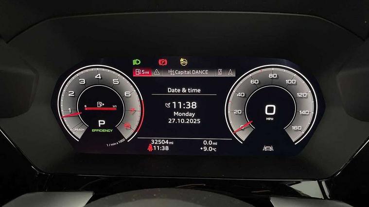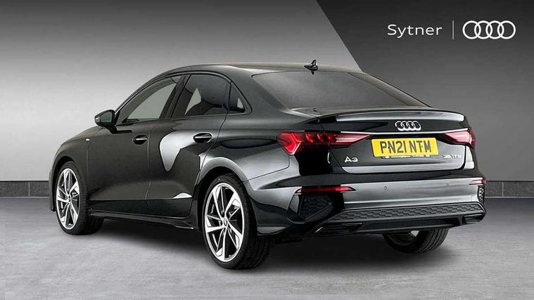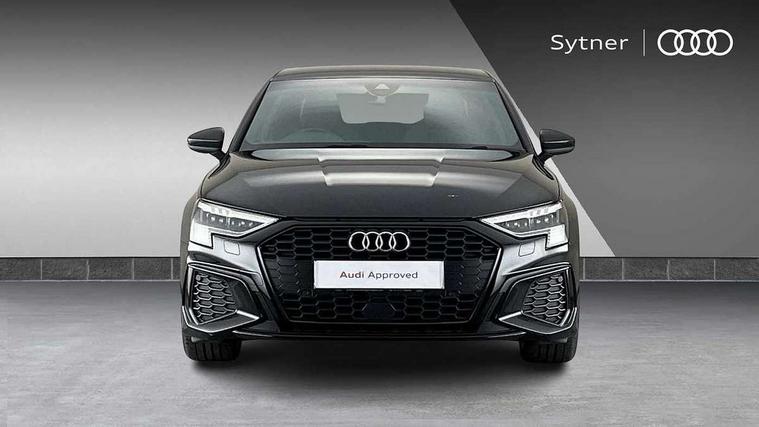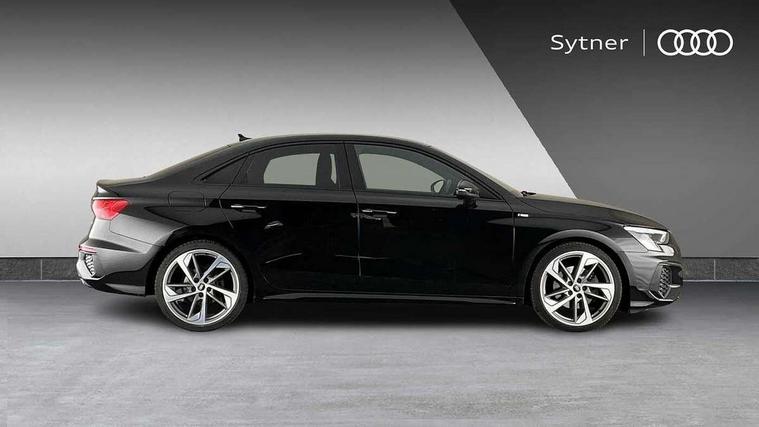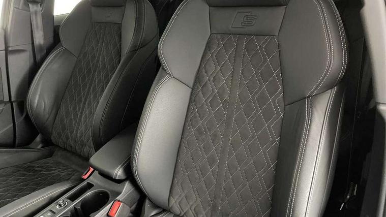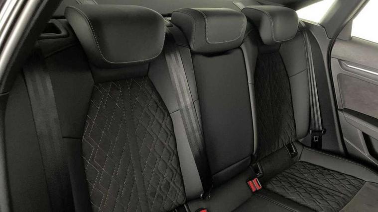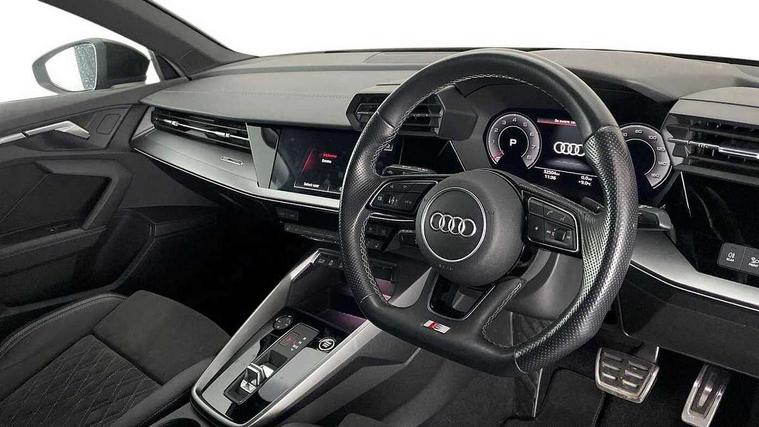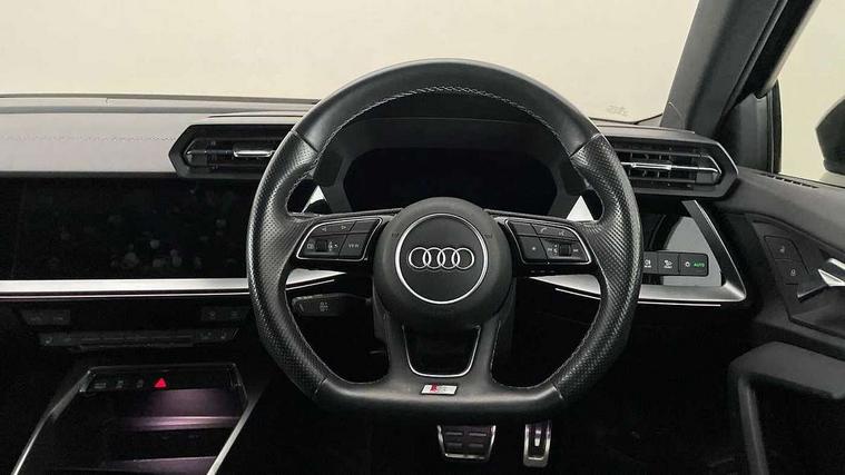 Audi connect emergency call and service, Audi drive select (Auto, Comfort, Dynamic, Efficiency and Individual), Audi smartphone interface, Audi virtual cockpit plus - 12.3" dynamic digital instrument cluster, Automatic start/stop system with recuperation, Bluetooth interface, Collision avoidance assistant, Cruise control + speed limiter, Electromechanical power speed sensitive steering, Lane departure warning system, MMI Navigation Plus with high resolution 10.1" colour touch screen display, Rear parking sensors, Service indicator, Voice control system with natural language interaction, Sports suspension, 2x USB Type C ports (for charging and data transfer), 6 passive loudspeakers, CD player, DAB Digital radio, Acoustic glass windscreen, Auto dimming frameless rear view mirror, Electrically adj heated/folding + automatically dimming exterior mirrors + automatic kerb side function for passenger side exterior mirror, Front electric windows, Illuminated door sills with aluminium inserts at the front with S logo, Integrated LED indicators in door mirrors, LED daytime running lights, Light and rain sensors, Model and engine designation badges at rear, Privacy glass - dark tinted rear window, rear door and side windows, Rear electric windows, S roof spoiler, 12V socket and storage compartment in front centre console, 3 spoke flat bottomed multifunction plus sports contour leather wrapped steering wheel with shift paddles, 4 way electrically adjustable lumbar support for driver and front passenger, 40/20/40 split folding rear seat bench with cupholder, Alcantara/twin leather upholstery with front sports seats S embossed logo, Black cloth headlining, Dual zone electronic climate control, Electrically adjustable front seats, Front and rear centre armrest in leather, Front and rear headrests, Front/rear floor mats, Heated front seats, Height and reach adjustable steering wheel, Interior lighting - glove compartment light and right hand side, Luggage compartment floor covering, Manual boot compartment lid, Seat side bolsters, Stainless steel pedals and front footrest, Aluminium interior elements pack - A3 Saloon, Black styling pack - A3/S3, Extended ambient lighting pack - A3/S3 Saloon, LED interior lighting pack - A3 Saloon Edition 1/Vorsprung, Matrix LED Exterior lighting with headlight washer Pack - A3/S3, 3x3 point rear seat belts, Driver and front passenger airbag with passenger airbag deactivation, Electronic Stabilisation Control (ESC) including ABS, ASR and EDL, First aid kit with warning triangle and 2 safety vests, Front side airbags with head airbags and interaction airbag, Hill hold assist, Pre-sense front with pedestrian and cyclist detection, Seatbelt monitoring, Tyre pressure loss indicator, Anti theft alarm, Anti-theft wheel bolts, Electronically operated child lock, Immobiliser, Remote control central locking, Aluminium air vent surrounds, Aluminium trim elements, Dark spectrum aluminium inlays, accent surfaces in the dashboard and centre console in platinum grey silk effect paint finish, 19" 5 arm trapezoid design alloy wheels in titanium matt grey with diamond cut finish,