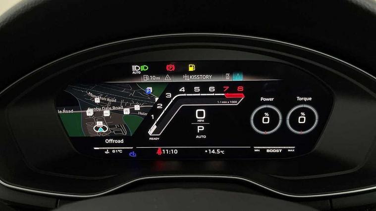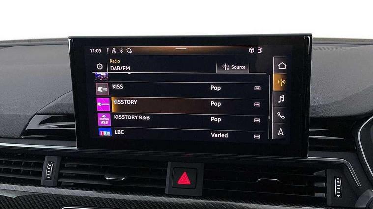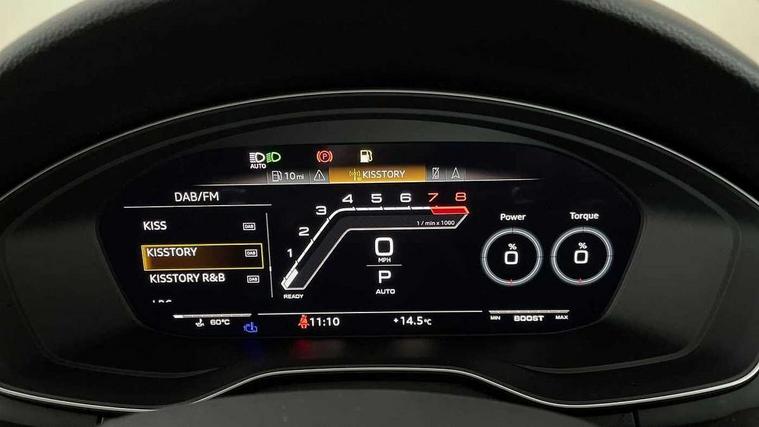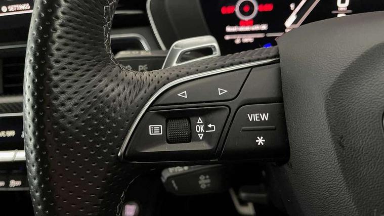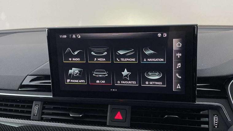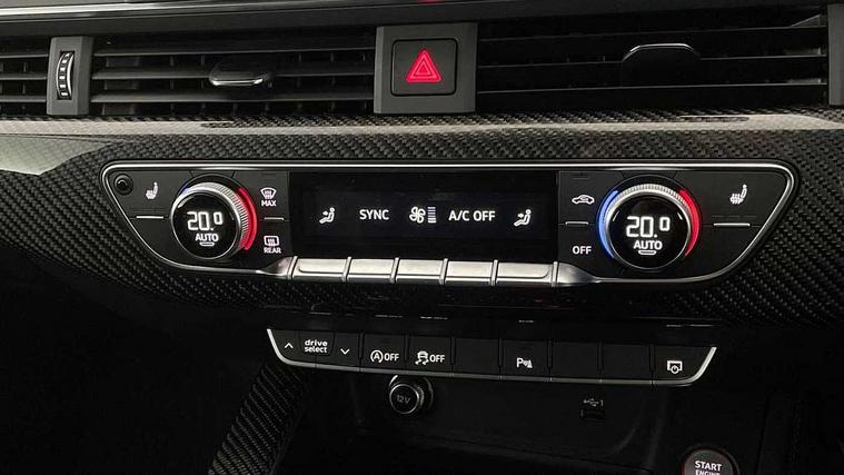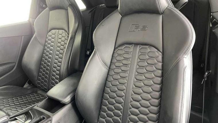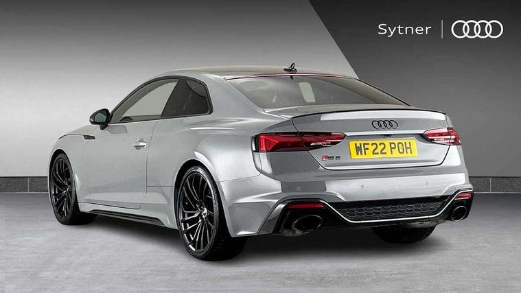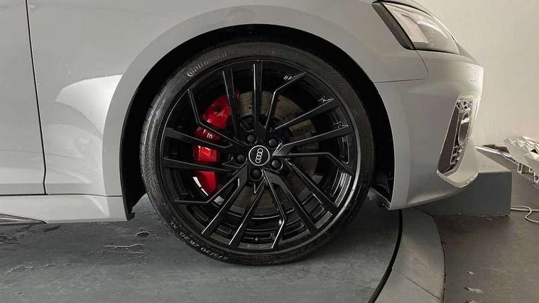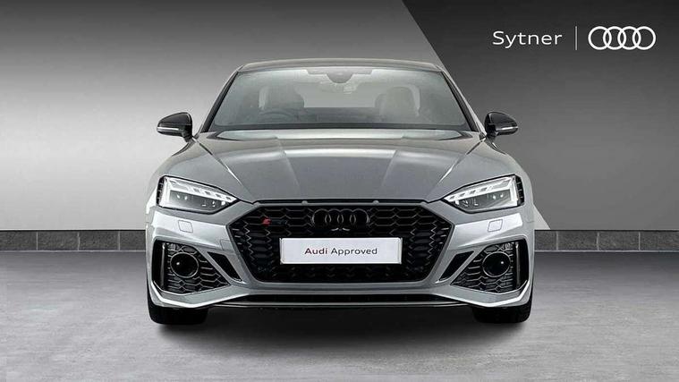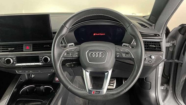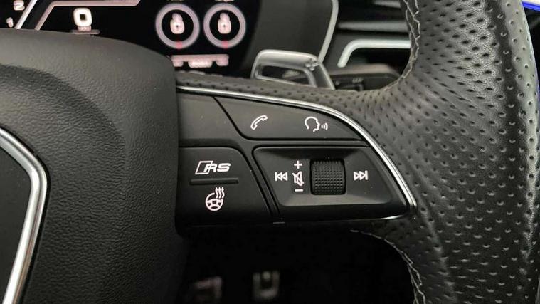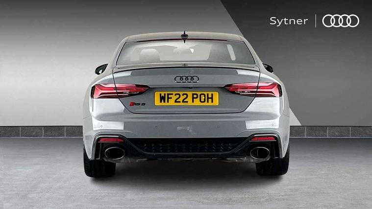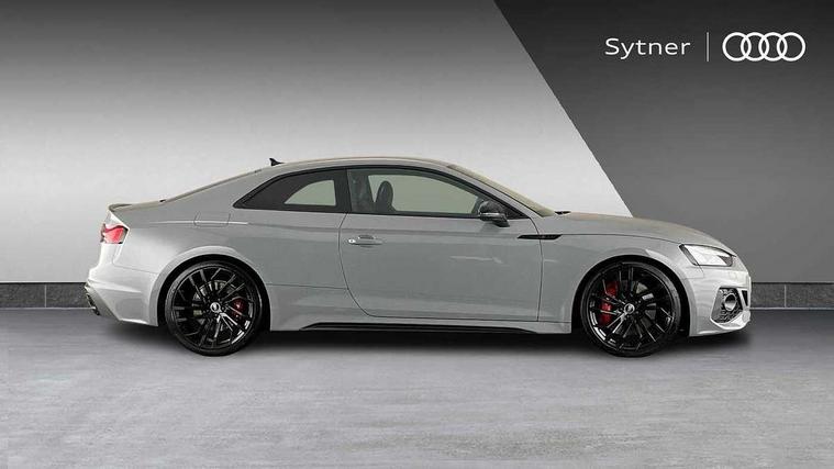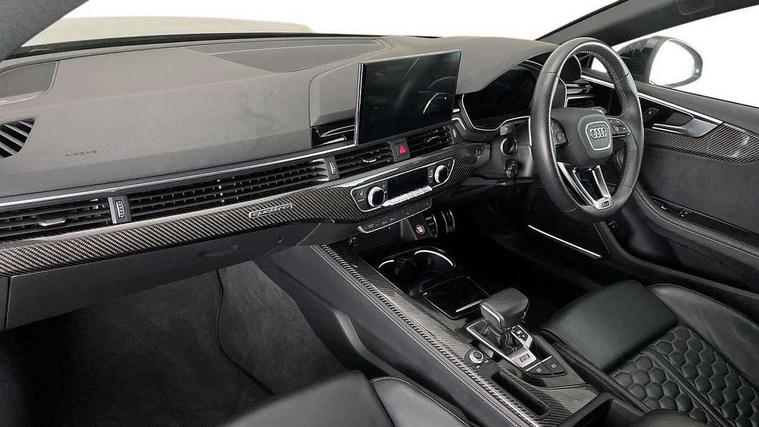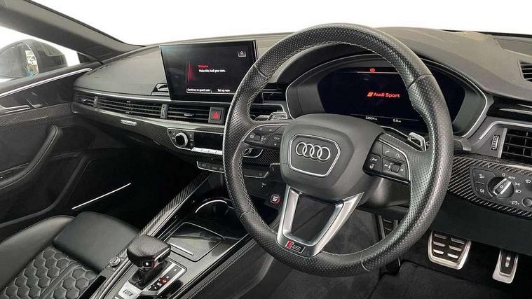 Audi connect safety and service (e-call), Audi connect with Amazon Alexa Integration, Audi parking system plus with front and rear sensors, Audi side assist, Audi smartphone interface, Audi Virtual Cockpit with RS specific design and 12.3" display, Automatic start-stop system with coasting functionality and efficiency programme, Bluetooth interface, Electromechanical power steering, Email, calendar and text messages displayed via MMI, MMI Navigation plus with MMI touch includes 10.1" high resolution colour MMI display, 3D map, Rear view camera, RS Audi drive select, RS drive modes on steering wheel, Service interval indicator, Voice control system, Quattro sports differential, Audi sound system, DAB digital radio reception, Audi Beam uses LEDs to project the RS logo, Audi matrix LED headlights with LED rear lights + dynamic front and rear indicators, Audi rings and lettering glossy black, Auto dimming rear view mirror, Body colour door handles, Electric front windows, Electric rear windows, Electrically folding, adjustable and heated door mirrors with integrated LED side indicators and kerb view function for passenger side, Exterior mirror housing in high gloss black, High beam assistant, Larger singleframe grill, LED 3rd brake light, LED daytime running lights, Privacy glass with rear acoustic glazing, Rain and light sensors, Rear boot, RS bumper with quattro lettering, RS5 badges on grille, the front wing panels and rear, RS5 dual branch chrome tailpipes with left and right oval pipes, Windscreen with acoustic glazing, 2 x USB charging port with aux input socket, 3 spoke leather heated multi-function plus steering wheel with RS badging, 40/20/40 split folding 2 seater rear seat bench with rear centre armrest, Aluminium shift paddles, Black cloth headlining, Deluxe 3 zone electronic climate control, Electrically adjustable front seats, Fine Nappa leather upholstery, Front centre armrest, Front head restraints, Front/rear floor mats, Heated front seats, Illuminated door sill trims with RS5 logo, ISOFIX child seat mounting and top tether, Leather door armrests and knee pad, Perforated leather gear lever knob with contrast stitching, Pneumatic massage function, Rear head restraints, RS Super Sports seats with contrast honeycomb stitching, Single front passenger seat, Stainless steel pedals, Tool kit, Carbon black styling pack - RS5, LED Interior light pack - RS5, 2 x 3-point rear seat belts, 6 airbags - Driver, front passenger, curtain and side airbags, Electromechanical parking brake, Electronic Stabilisation Control (ESC) including ABS, ASR and EDL, Front passenger airbag deactivation, Height adjustable front seatbelts, Hill hold assist, Multi collision brake assist, Pop-up bonnet for pedestrian protection, Pre sense city, RS Model enhanced braking system, Seatbelt monitoring, Tyre pressure warning, Warning triangle and first aid kit, Anti theft alarm system, Anti theft wheel bolts, Immobiliser, Keyless Go, Remote control key with RS emblem, Carbon twill inlays, 20" 5 Segment spoke Evo style design audi sport alloy wheels in glossy black, Tyre repair kit,