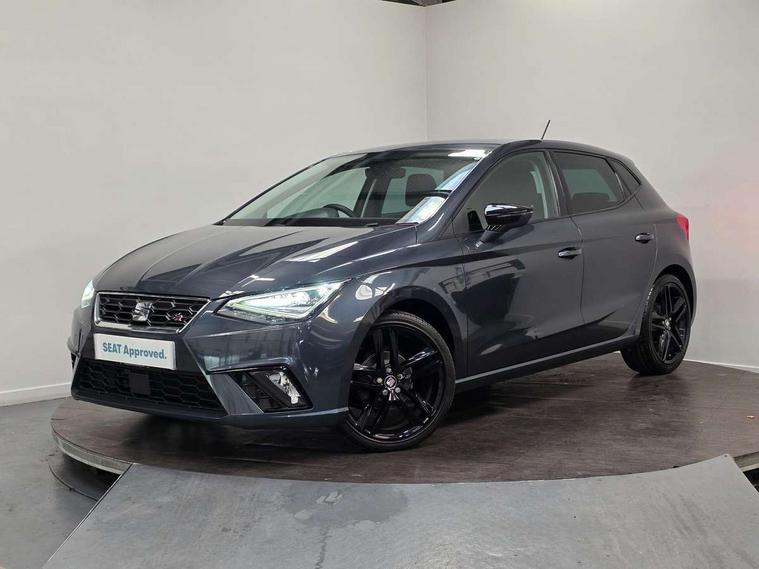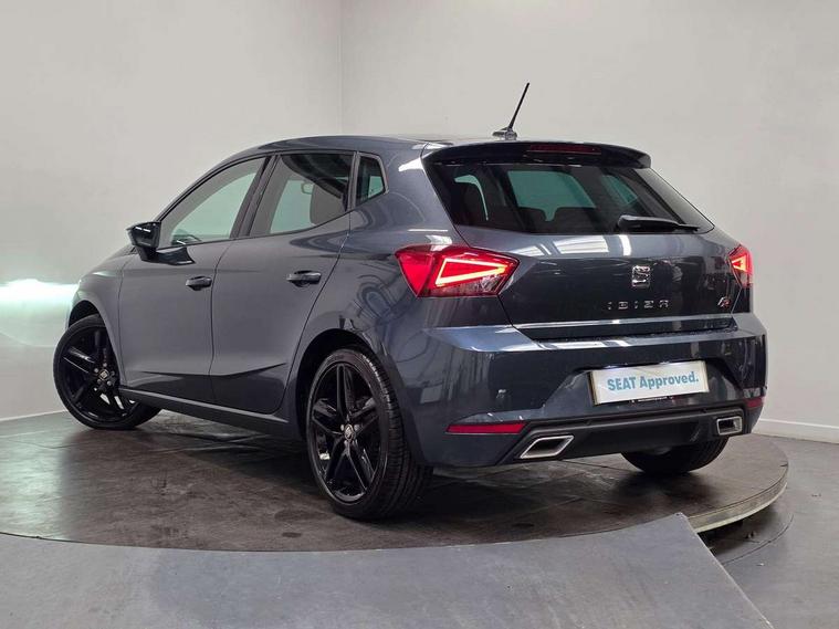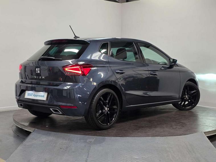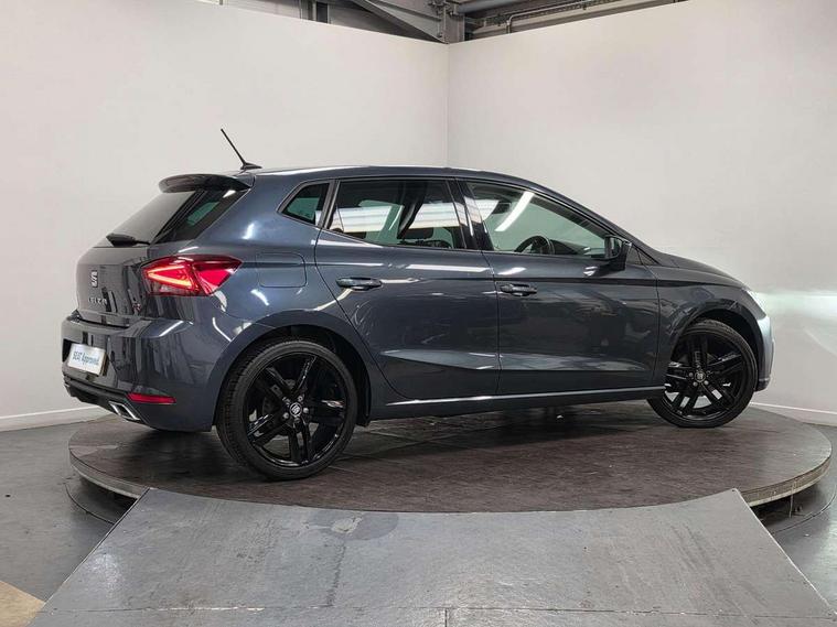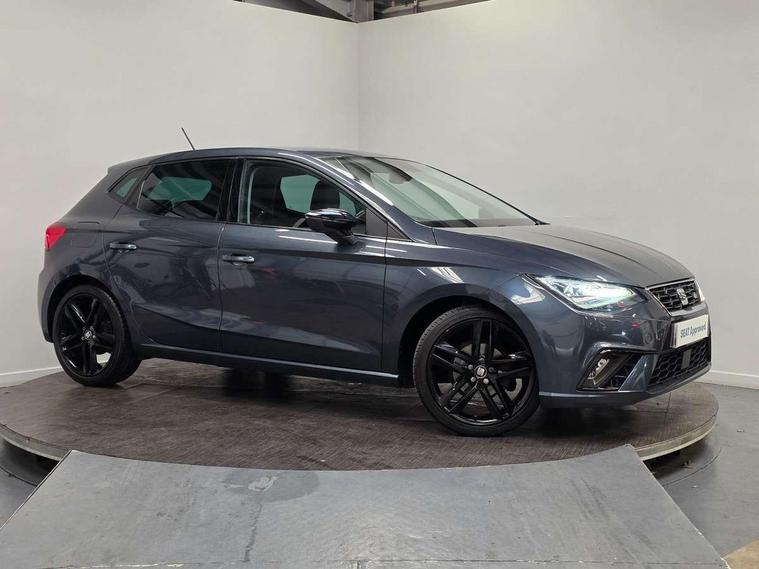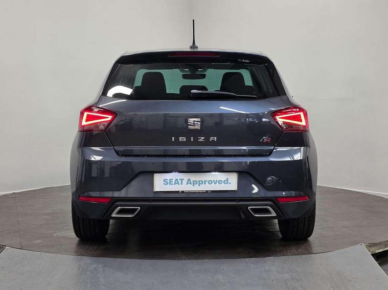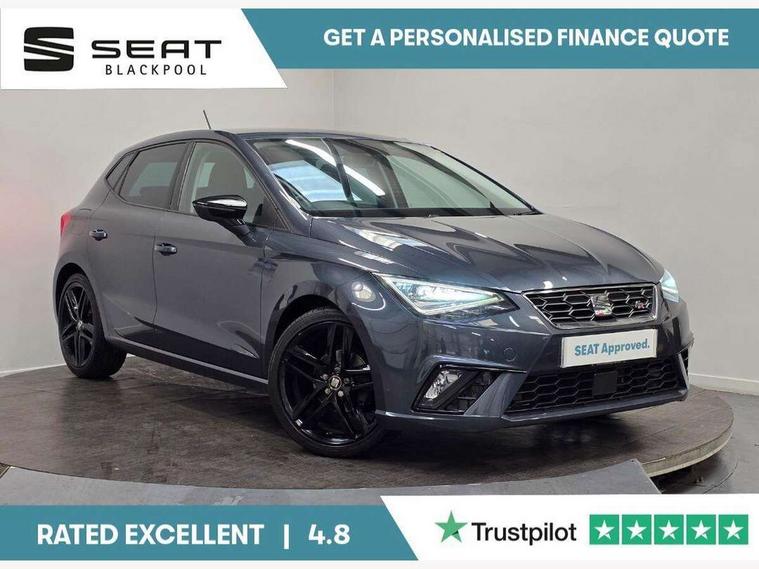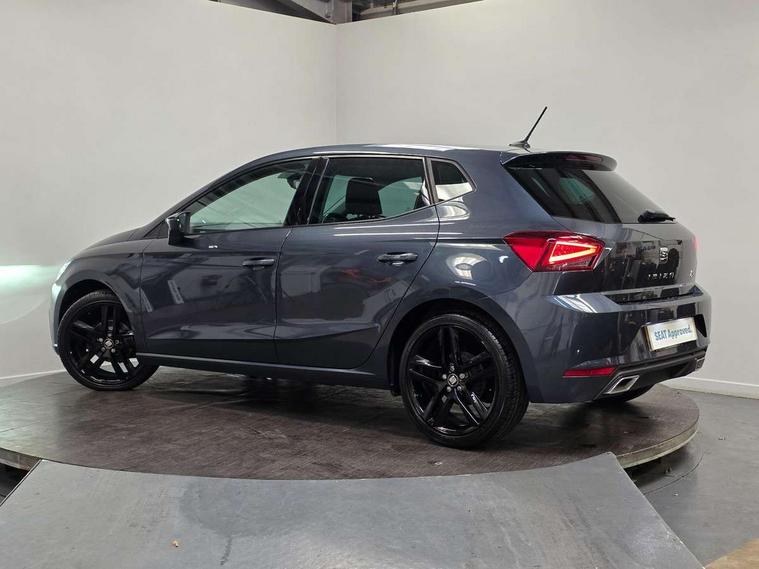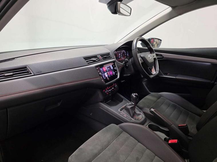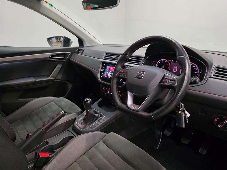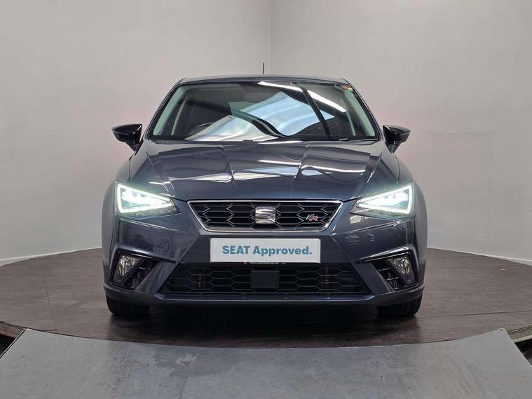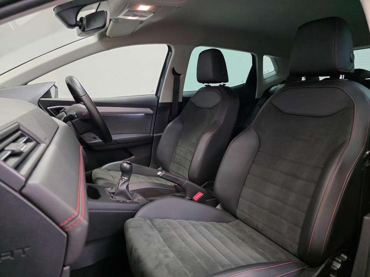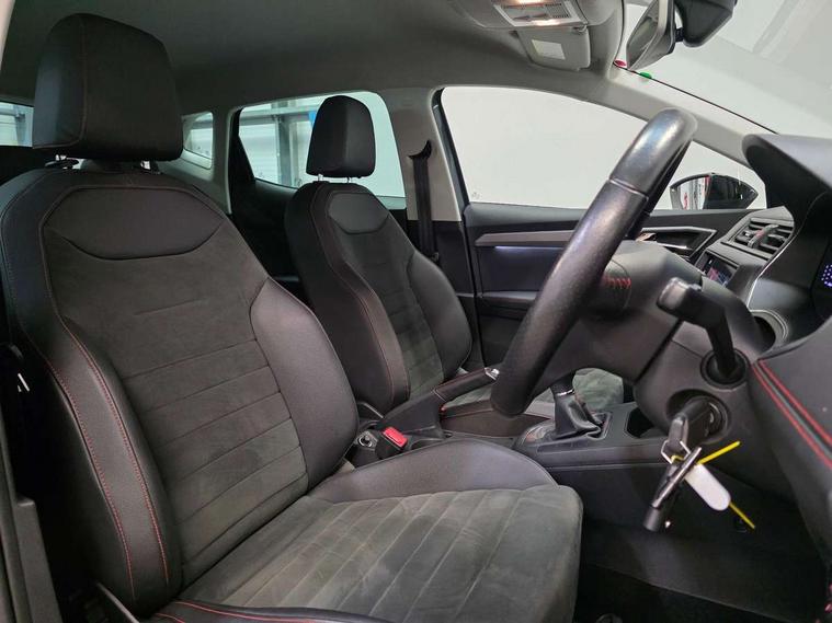 'Lights On' Reminder warning buzzer, Bluetooth Handsfree Phone Connection, Cruise control, Digital clock, Digital cockpit, Full Link Smartphone Integration with Mirror Link, Apple Car Play, Google Android Auto, Low fuel warning light, Outside temperature gauge, Power Steering, Satellite navigation system with 3D mapping, 8" touch screen, voice control and additional USB port, SEAT Drive profile, SEAT logo boot release, Trip computer, Sports suspension, 6 speakers, Auxiliary input socket, CD player, Digital Audio Broadcast (DAB) Tuner, Radio/MP3 player, SD card slot, SEAT USB media cable, Steering wheel mounted controls, USB port, Anti theft roof antenna, Auto dimming rear view mirror, Automatic headlights, Automatic rain sensing wipers, Body colour bumpers, Body colour door handles, Brilliant black door mirrors, Chrome front grille frame, Chrome grille, Coming/leaving home lighting function, Cornering front fog lights, Dark tinted rear windows, Electric folding door mirrors, Electric front windows, Electric headlight adjustment, Electrically adjustable and heated door mirrors, Exclusive FR rear bumper, Full LED headlights, LED daytime running lights, LED tail lights, Rear fog lights, Twin exhaust pipes, 3 rear headrests, 60/40 split folding rear seat, Door and steering wheel ice metal decorative inserts, Driver's sunvisor with ticket holder/vanity mirror, Dual zone climate control, Dust/pollen filter, Flat bottomed perforated leather steering wheel with red stitching and FR logo, Front courtesy lights, Front cupholders x 2, Front reading lights, Gear shift indicator, Glovebox, Height adjustable driver's seat, Height adjustable front/rear head restraints, Height adjustable passenger seat, Height/reach adjust steering wheel, Illuminated boot, Instrument lighting with brightness control, Leather handbrake, Microsuede cloth upholstery, Multi-colour ambient interior lighting, Passenger sunvisor, Rear top tether child seat ISOFIX attachment, Sports seats, Full LED headlight pack - Ibiza, 3 point seatbelts on all 3 rear seats, ABS, Active front headrests, Child locks on rear doors, Curtain airbags, Driver/Front Passenger airbags, ESP+EBA, Front assist (AEB), Front passenger airbag deactivation, Front side airbags, Hill hold control, Multi-Collision braking, Seatbelt warning, Tiredness recognition system, Tyre pressure monitoring system, Electronic engine immobiliser, Locking wheel bolts, Remote central locking + deadlocks, Volumetric alarm with back up horn, Leather dashboard, 18" Performance machined bi-colour alloy wheels,