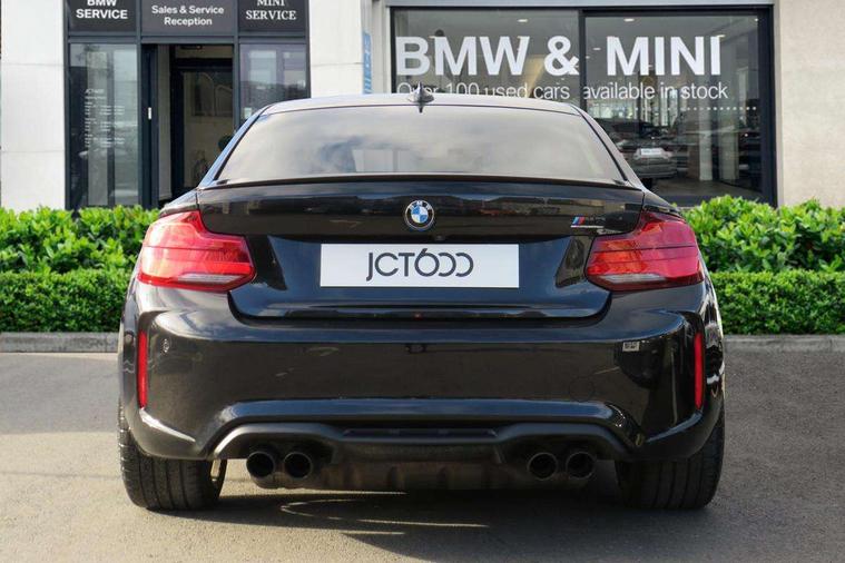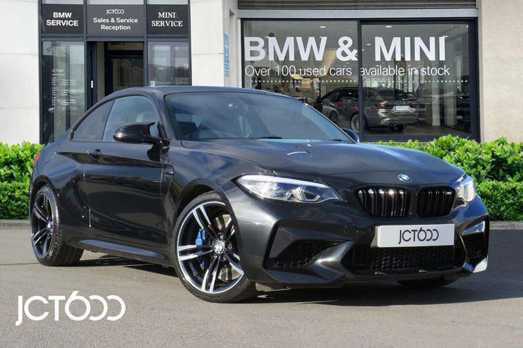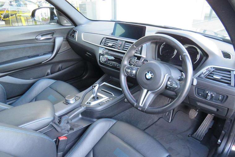 BMW Online services, BMW remote services, BMW Teleservices, Brake pad wear indicator warning light, Check control system, Cruise control with brake assist, Door/boot open warning, Front/rear Parking distance control, Lights on warning, M Servotronic power steering, Oil temperature gauge, On board computer, Outside temperature display, Real time traffic information, Service interval indicator, Speed limiter, Stop/start button, Drive Performance Control, BMW professional radio/CD/MP3, DAB Digital radio, 2 speed adjustable intermittent wipers with wash/wipe function, Auto dimming rear view mirror, Black chrome exhaust, Body colour bumpers, Body colour door handles, Body colour mirror caps, Body colour roof mouldings, Door sill finishers, Dynamic brake lights, Electric adjustable heated door mirrors, Electric front windows/one touch facility, Follow me home headlights, Front apron with large air inlets, Headlight range control, Heat insulating tinted glass, Heated windscreen washer jets, High gloss black kidney grille, High gloss shadow line, LED rear lights, LED welcome home lights, M aerodynamic body styling, M rear spoiler, Quad exhaust tailpipe finisher, Rain sensor including auto headlights activation, Shark fin roof aerial, Welcome lighting, 12V sockets in front centre console and passenger footwell, 4 grab handles, Anthracite headlining, Anthracite Velour floor mats, Dakota leather upholstery, Driver + passenger electric lumbar support, Folding storage compartment with glasses holder + coin tray, Front cupholders x 2, Front door storage bins, Front head restraints, Front sliding armrest, Front/rear armrests within door panels, Glovebox with lid, Isofix rear child seat preparation, Lashing eyelets in boot, Leather gearknob, Leather handbrake lever, M multifunction nappa leather steering wheel, M Sports seats, Reach + rake adjustable steering column, Rear centre armrest, Rear coat hooks, Storage compartment in rear centre console, Interior comfort pack - 2 Series/M2, Media pack - Professional - 2 Series/M2, 3 point seatbelts, ABS/EBD, Automatic Stability Control (ASC), BMW emergency call, Cornering brake control (CBC), Crash Sensor - activates hazard/interior lighting + unlocks doors, Driver/Front Passenger airbags, DSC+, Dynamic brake control, Dynamic Traction Control - DTC, Front and rear curtain airbags, Front seat belts warning, Front seatbelt force limiters, Front seatbelt pretensioner, Front side airbags, Hill start assist, M sport seatbelt, Passenger airbag deactivation system, Tyre pressure monitoring system, Warning triangle and first aid kit, Drive away door locking, Electronic immobiliser, Key integrated remote control central locking, Locking wheel bolts, Remote control Thatcham category 1 alarm, Carbon fibre interior trim with black high gloss finish, Tyre mobility system,