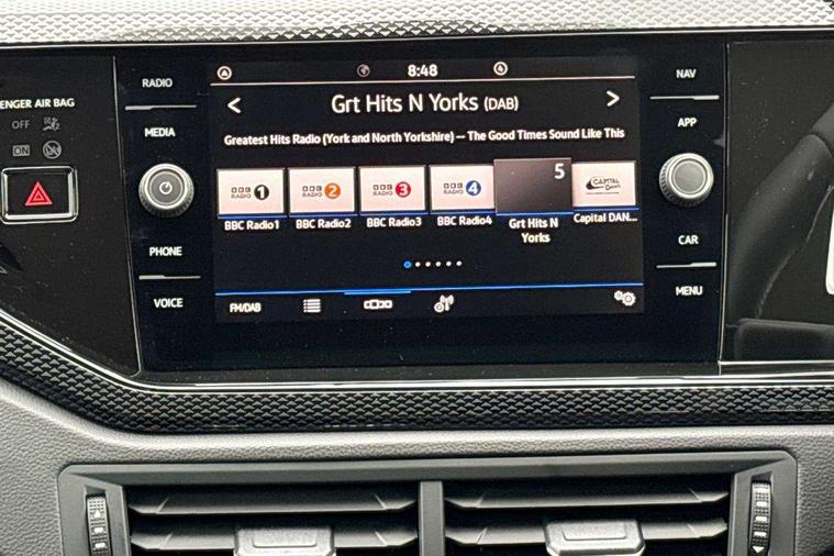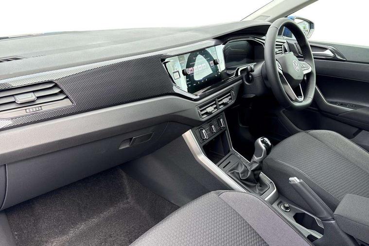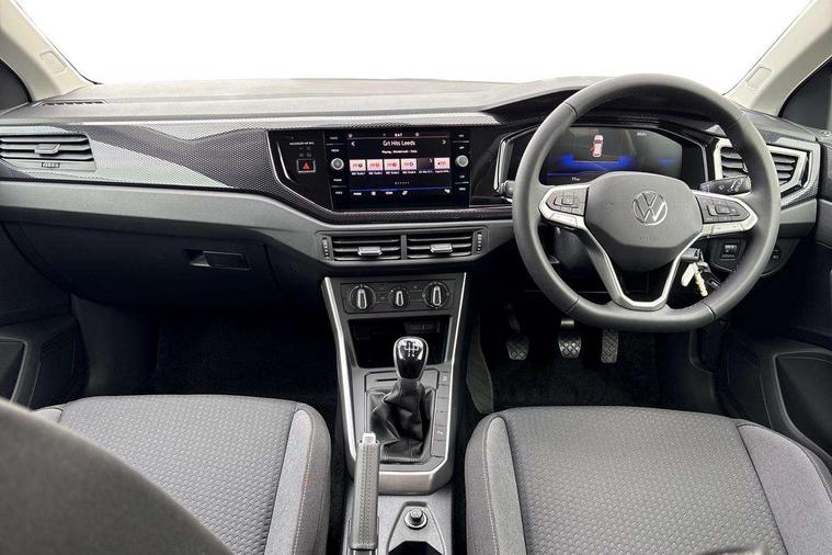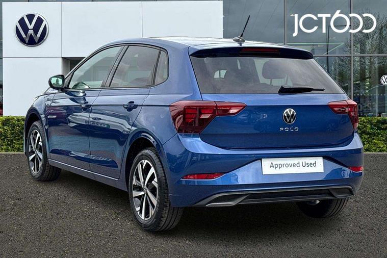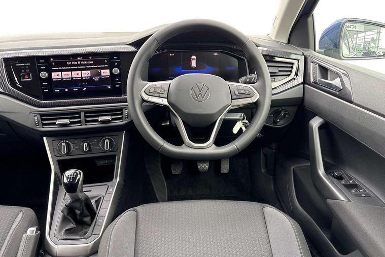 Adaptive cruise control without follow-to-stop and speed limiter, Advanced driver attention and drowsiness monitor, Bluetooth mobile phone interface, Dynamic road sign display, Emergency call service, Mobile phone preparation with inductive charging function, Multifunction front facing camera for distance control, Power assisted speed sensitive steering, Preparation for navigation system with media and internet package, Preparation for We connect and We connect plus, Rear view camera, Speedo and rev counter, electronic odometer, trip, service interval display and exterior temperature gauge, Standard rear axle, Travel Assist - Lane keeping system and traffic jam assist, Travel assist including emergency assist, Trip computer, Warning signal and warning light for front and rear seatbelts not fastened, Washer fluid level indicator, Wireless app connect, Front wheel drive, Rear shock absorpion, Start-stop system with battery regeneration (recuperation - energy recovery during braking), DAB Digital radio, Diversity antenna for FM reception, Automatic dimming interior rear view mirror, Automatic headlight control with LED separate daytime running lights with coming/leaving home function, Body colour bumpers with chrome inserts, Body colour door handles, Body colour door mirrors, Electric front windows, Engine badge deletion, Headlight range adjustment, Heat insulating and laminated safety glass windshield, LED Headlights, LED rear combination lamps, Power folding adjustable/heated exterior mirrors and front passenger exterior mirror lowering function, Rain sensor, Rear electric windows, Rear fog light, Rear side wing doors, Rear tinted glass from B-pillar backwards approx 65% tinted, Rear windscreen washer and wiper with interval delay, Third brake light, 12V power socket in centre console, 2 front and 2 rear reading lights with switch off delay and dimmer, 2 USB-C ports in the front, 2 USB-C charging sockets on the center console in the rear, 3 rear head restraints, 60/40 split folding rear seat and rear seat bench not split, Ceramique roof lining, Chrome plated radiator grille inserts, air vent surrounds and light switch surrounds, Door and side trim panel, Driver and front passenger seat height adjustment, Driver/passenger sunvisors with illuminated vanity mirrors, Front centre armrest, Front seat backrest storage pockets, Front standard seats, Handbrake lever handle in leather, Hartley/Thomas cloth upholstery, Headliner in recycled material, Isofix child seat preparation easy-fit (for two outer rear seats, and front passenger seat) compatible with I-size, Leather trimmed gear knob, Luggage compartment cover, Luggage compartment lighting, Removable luggage compartment floor, Single front passenger seat, Standard climatic zones, Standard pedal cluster, Three spoke leather wrapped multifunction steering wheel, Light and vision pack - Polo, 3 point height adj front seatbelts + pretensioners, 3 point seat belt for centre rear seat, 3 point seatbelts, outer rear with ECE lable, ABS, Driver and front passenger airbag with front passenger airbag deactivation, Drivers and front passengers safety optimised head restraints, ESC (Electronic stability control) + EDL (Electronic Differntial lock) and ASR (Traction control), Extended and predictive pedestrian/ cyclist protection, Front assist with autonomous emergency braking (for Adaptive Cruise Control ACC up to 130 mph), Front curtain and side airbags with center airbag, Front disc brakes, Hill hold control, Manual child lock in rear doors, Rear drum brakes, Single tone horn, Tyre pressure loss indicator, Alarm with interior protection, Anti-theft alarm system with interior monitoring, backup horn, and towing protection, Anti-theft wheel bolts, Electronic engine immobiliser, Lava stone black gloss/matt decorative inserts in dash and front door panels, 16" Torsby alloy wheels, Low rolling resistance tyres,