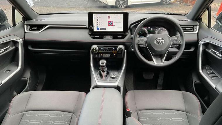 12.3" Digital Combimeter, Analog tachometer, Android Auto, Bluetooth system, Cyclist Detection, Digital speedometer, Drive mode selector, Driver attention alert system, eCall emergency call system, ECO-driving indicator, Electric power steering, EV audible alert, Front parking sensors, Full range intelligent adaptive cruise control, Hybrid system indicator, Lane departure alert with steering control, Lane trace assist, Lights on warning, Memory on adjustable speed limiter, MirrorLink, My T Connected services, Night Time Pedestrian Detection, Power boot opening and closing, Rear parking camera, Rear parking sensors, Remote boot door release in cabin, Remote boot door release in key, Road sign assist - RSA, Smart entry and push button start, Smartphone hazard lights notification, Tailgate, Toyota smart connect navigation, Traffic sign recognition, Trip computer, Voice control system, 6.6 kw fast charger, 7.5m cable with home charging plug, Vehicle Stability Control (VSC), 10.5" Toyota smart connect multimedia with wireless smartphone integration incl apple car play, 6 speakers, Auxiliary socket for external MP3 player, Digital audio broadcast (DAB)+, Gloss black surround on multimedia display, Multimedia Road Events, Rear USB connection, Toyota touch media system, USB in front armrest, Adaptive automatic high beam, Anti-jam protection on power windows, Auto dimming interior rear view mirror, Auto up and down function on power windows, Automatic headlights, Automatic wipers, Automatically retractable door mirrors, Black door moulding, Black front bumper, Black painted upper front grille, Black rear bumper, Black rear under-run, Black roof rails, Body colour door handles, Body colour rear roof spoiler, Body coloured door mirrors, Body coloured Shark-fin antenna, Chrome window surround, Dual exhaust pipes, Electric adjustable door mirrors, Electric heated door mirrors, Emergency brake-light signal (EBS), Follow me home headlights, Front wipers with variable intermittent facility, Honeycomb upper front grille, LED daytime running lights, LED dual beam projector headlights, LED front fog lights, LED front light guide, LED High mounted stop lamp, LED Indicators, LED rear brake lights, LED rear combination lights, PHEV badge in rear, Power front windows, Power rear windows, Privacy glass, Rear side wing doors, Rear windscreen defogger, Rear wiper, Silver front under-run, Smartphone remote power window operation, Trailer sway control, Turning signal integrated indicators in door mirrors, 1.5L front and rear bottle holder, 12 volt front socket, 12V power outlet - Boot, 220v power socket in boot, 2x Rear coat hooks, 3 rear headrests, 3 seat bench in 2nd row, 60/40 split fold rear seat back, Adjustable speed limiter switch on steering wheel, Array microphone, Black roof lining, Clean air filter, Cloth upholstery, Driver and front passenger personal light, Driver and front passenger Whiplash Injury Lessening seats, Driver and passenger seatback pockets, Driver and passenger sunvisors with illuminated vanity mirrors, Dual sided deck board in boot, Dynamic sports seats, Energy saving heat pump, Folding rear centre armrest, Front and rear cup holders, Front centre armrest, Front headrests, Front leather armrest, Front/rear roof mounted assist grips, Gloss black surround on centre console, Heated driver and front passenger seats, Heated rear seats, Illuminated entry system, Isofix child seat preparation, Leather gear shift with chrome surround, LED boot light, LED centre room light, Lockable glovebox, Manual telescopic and tilt 3-spoke nappa leather steering wheel, Manually reclining and sliding front passenger seat, Multimedia switches on steering wheel, Pollen filter, Power height-adjustable sliding reclining and lumbar support for driver seat, Rear console box, Rear door armrests, Rear passenger air vents, Rear view display in display audio screen with dynamic guide lines, Reclining rear seats, Remote dual zone automatic air conditioning, Retractable tonneau cover, Satin chrome interior door handles, Single front passenger seat, Sunglasses holder, Telephone and voice recognition switches on steering wheel, White ambient lighting in footwell, White ambient lighting on front cup holders, White ambient lighting on open tray, 3x3 point rear seatbelts, ABS/EBD, Acoustic vehicle alerting system, Adjustable front driver and passenger seat belt extender, Brake assist function, Brake hold function, Child proof door locks, Collision mitigation braking system, Driver/Front Passenger airbags, Driver/front passenger side airbags, Drivers knee airbag, Electronic parking brake, Electronic Stability Programme (ESP), Front and rear curtain airbags, Front and rear seatbelt reminder, Front passenger airbag detector, Hill start assist, Passenger airbag cut-off device, Pedestrian detection, Pre collision system, Seatbelt pretensioners with load limiters, Supplemental restraint system (SRS) airbags, Toyota safety sense 2, Traction control, Tyre pressure warning, Glass-breaking alarm sensors, Immobiliser, Intrusion alarm, Light - on and Key in reminder, Motion sensor alarm, Power door locks, Remote central locking, Smartphone remote door lock, Speed sensitive auto door locking, Tilt detection sensors, Black centre air vent surround, Gloss black centre console, Open tray on passenger dashboard, Soft-touch black upper dashboard with silver insert, Soft-touch texture on lower dashboard, 18" 5 spoke grey machined face alloy wheels, Full size spare wheel,