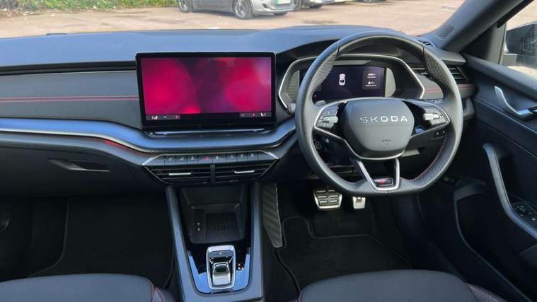 1x USB Typc C port in rear view mirror, 4x USB Type C ports - 2x in front centre console and 2x in rear (45W), Drive mode selection, Driver fatigue sensor, eCall emergency system, Electrically operated boot with virtual pedal, Front assist system, Progressive dynamic steering, Traffic sign recognition, Turn Assist, Virtual Cockpit - 10.25" digital display, Voice control system, Wireless charging (15W) with cooling function, Wireless SmartLink for Apple CarPlay and Android Auto, Electronically controlled limited slip differential, vRS suspension, 13" touchscreen display with navigation, DAB Digital radio, Aero front windscreen wipers with intermittent function, Auto dimming rear view mirror, Black sport exhaust pipes, Body colour bumpers, Body colour door handles, Electric front and rear windows, Exterior gloss black sports styling including front grille, window surrounds, door mirrors and badging, Gloss black diffuser, Gloss black spoiler, Heated rear windscreen, High beam control, High level third brake light, Ice scraper in fuel cap, LED daytime running lights, Logo projection in front doors, Rain and light sensors, Rear fog light on one side, Rear privacy glass, Rear side wing doors, Unique vRS bumpers and exterior styling, 12 volt socket in boot, 3 rear headrests, 3 seat bench in 2nd row, 4 foldable roof handles, Aluminium pedals, Front head restraints, Front sport seats, Heated front seats, Illuminated glovebox, Interior door handles in dark chrome, Jumbo Box storage, Luggage compartment lighting x2 lights, Mechanical rear seat release from boot, Parcel shelf - folding, Single front passenger seat, Steering wheel in black leather with black stitching, Storage compartments in left and right of boot, Sun visors with mirrors, Sunglasses storage, Ticket holder, Umbrella in door panel, Unsplit rear bench seat, split folding backrest with centre armrest with cupholder, Waste bin in door panel, Comfort package - Octavia, Family package - Octavia, Light and view package plus - Octavia, vRS Design Selection pack - Octavia, 3x3 point rear seat belts, Alarm with interior monitoring, tilt sensor and back up horn, Curtain airbags and front side airbags, Driver and front passenger airbags, Drivers knee airbag, Electronic parking brake, ESC including ABS, EBV, MSR, ASR, EDS, HBA, DSR, Front central airbag, Hill hold assist, ISOFIX on front passenger seat and outer rear seats, Passenger airbag deactivate switch, Red brake calipers, Three point seat belts in front and rear, Two tone horn, Tyre pressure monitor, Visual and acoustic seat belt reminder, Warning reflectors in front door, Anti-theft wheel bolts, Keyless start/stop, Remote central locking, Gloss black air vent surrounds, 19" Elias anthracite alloy wheels,
