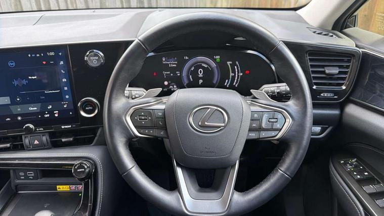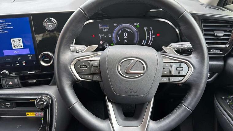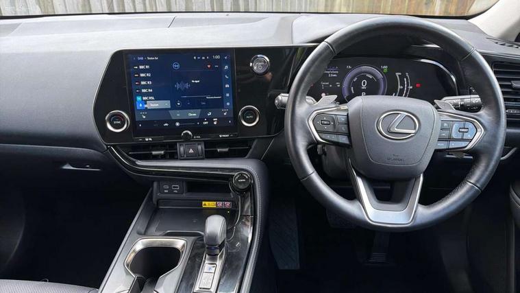 7" display in instrument binnacle, Blind spot monitoring with rear cross traffic alert, Bluetooth telephone connectivity, eCall emergency system, Electric speed sensitive power steering, Intelligent parking sensors - 4 front and 4 rear with object and pedestrain detection, Lane change flasher function, Lexus link connect - Cloud based navigation, cloud based voice assistant, always online and 9.8" VGA touchscreen, Push button starter, Reversing camera with back guidelines, Service interval indicator, Tailgate, Wireless Apple CarPlay/Android Auto, Wireless Smartphone charger, 6.6 kW onboard charger, All Wheel Drive (AWD), Hybrid automatic transmission, Vehicle Dynamics Integrated Management (VDIM), Vehicle Stability Control (VSC), 10 speakers, 4 USB ports - 2 front, one USB C, 2 rear USB C, DAB Digital radio, Auto dimming interior rear view mirror, Automatic headlights, Black roof, Double hidden exhaust pipes, Front and rear one touch power windows, with anti-jam protection, Heated and auto folding door mirrors, Illuminated door handles with puddle light, LED brake lights and rear lights with emergency brake signal, LED cornering lights, LED daytime running lights, LED front fog lights, LED Indicators, LED low beam and Hi-beam headlight, Power back door system, Privacy glass, rear doors and tailgate, Rain sensor windscreen wipers, Rear side wing doors, Rear wiper, Roof rails, 12V accessory port centre console and luggage compartment, 2 cupholders in front centre console, 2 way electrical lumbar adjustment for driver, 2 x fixed shopping bag hooks in boot, 2 x sun visors with vanity mirror and lamp, 3 seat bench in 2nd row, 4 x tie down hooks in the boot, 60/40 split folding rear seat, 8 way driver/passenger electrically adjustable front seats, Adjustable rear seat backrest, Ambient light in 64 colours, Card holder installed in driver and passengers sun visors, Centre armrest with storage box, Dual climate control air conditioning system, Front and rear head restraints, Front and rear textile carpet mats, Front passenger seat, Heated front seats, Heated steering wheel, LED interior illumination, Power adjustable leather steering wheel with paddle shifts, Premium Tahara leather upholstery, Rear centre armrest with 2 cupholders, Whiplash Injury Lessening (WIL) feature (active headrest) for seats, 3 point ELR front seatbelts with pretensioners, 3x3 point rear seat belts, ABS, Adjustable seat belt anchor points, Driver and front passenger 2 stage airbag, Driver/front passenger side airbags, Drivers knee airbag, E-Latch with safe exit assist, EBD + Brake Assist, ECB (Electronically Controlled Brake System), Electronic parking brake, Front and rear curtain shield airbags, Front center airbag, Front passenger seat cushion airbag, Hill assist control, Lexus safety system - dynamic radar cruise control, pre collision system day and night, lane tracing assist, road sign, automatic high beam, OTA, Manual rear child locks, Passenger airbag cut-off device, Traction control, Tyre pressure warning, Anti-theft system with alarm, intrusion sensor, glass breakage sensor, tilt sensor and engine immobiliser, Locking wheel nuts, Smart entry ( front/rear/boot), Speed sensitive auto door locking, Ultra Wide Band (UWB) Anti-theft system, VIN Window etching, 3D prism black Inlay, Organic inlay, Tyre repair kit,