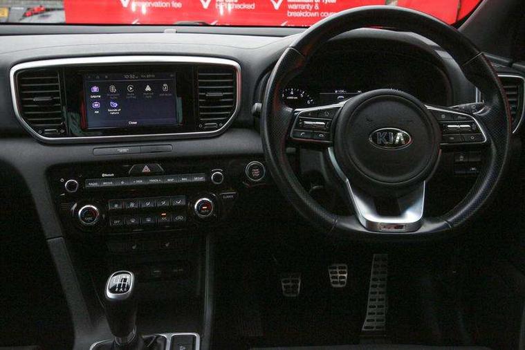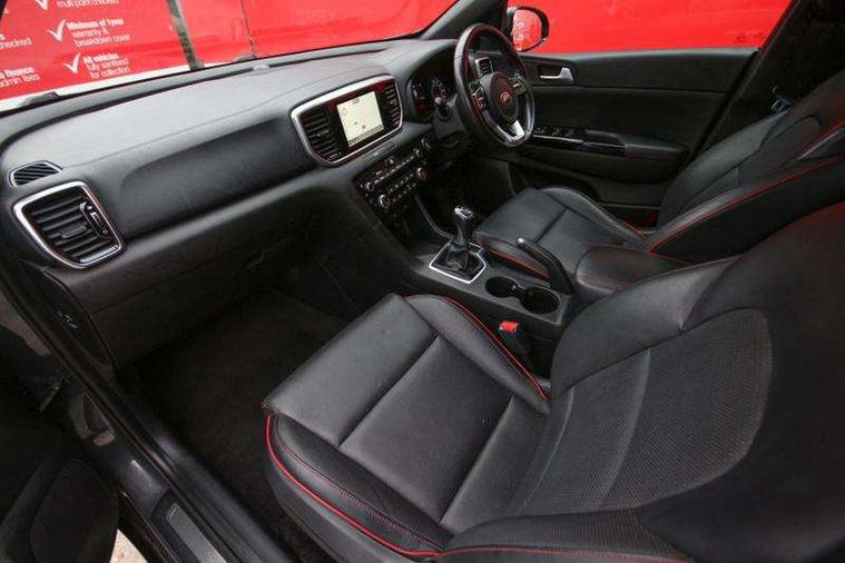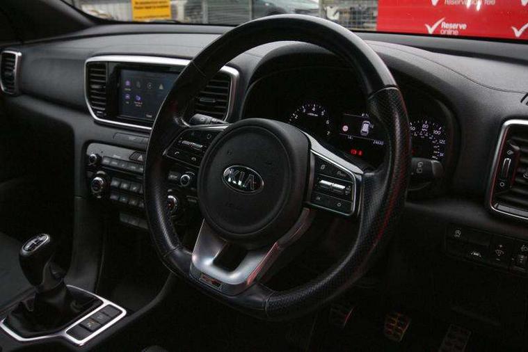 4.2" supervision colour cluster display, 7" touchscreen satellite navigation with European mapping and traffic messaging channel, Android auto with voice control, Apple car play with voice control, Bluetooth connectivity with voice control, Cruise control + speed limiter, Digital clock, Driver attention warning, Emergency stop signalling system, Front parking sensor, Kia connected services featuring TomTom live, Lane keep assist, Rear parking sensor, Reversing camera, Speed limit information, Speed sensitive power steering, Trip computer, Windscreen washer level indicator, Intelligent Stop and Go, 6 speaker audio system, Bluetooth audio streaming, DAB Radio with MP3, Steering wheel mounted audio controls, USB/iPod/auxiliary input connections, All round electric windows with drivers auto up/down function, Auto dimming rear view mirror, Automatic defog system, Automatic headlights, Black wheel arch body mouldings and side sills with dark chrome insert, Body colour door handles with chrome inserts, Body colour door mirrors, Chrome window surround, Cornering light, Dark chrome front bumper insert, Dark chrome grille surround, Electrically adjustable/heated/folding door mirrors with LED indicators, High beam assist, High gloss black blade mesh radiator grille, LED Bi-Function headlights, LED daytime running lights, LED ice cube front fog lights, LED rear lights, Privacy glass (rear side windows and rear screen), Rain sensing front wipers, Rear spoiler, Rear wiper, Roof rails, Shark fin antenna, Silver painted front and rear skid plates, Speed sensitive front wipers, Tinted glass, Trailer stability assist, Welcome and follow-me home light functionality, Wide view drivers door mirror, Windscreen wiper de-icer, 12V power in front and rear centre console, 3 x passenger assist grips, 60/40 split folding rear seat, Air filter, All-round height adjustable headrests, Black headlining, Centre cabin light, Centre console storage box, Chrome boot sill guard, D-Shaped sports leather steering wheel and perforated inserts with GT-Line logo, Door armrest in leather, Driver and front passenger side sunvisors with illuminated vanity mirrors, Drivers seat power lumbar support, Dual zone automatic air conditioning, Front and rear door storage, Front cabin LED map light with sunglasses case, Front door courtesy reflectors, Front seat and rear pockets, Front/rear centre armrests, Gear shift indicator, Glovebox illumination, Heated front and outer rear seats, Illuminated glovebox, Interior door lock/unlock function, ISOFIX Child seat top tethers and anchor fixings, Leather trimmed gearshift, Leather upholstery, Luggage area light, Luggage area load cover, Luggage net with hooks, Perforated leather sports steering wheel, Rear centre armrest with cupholder, Rear coat hooks, Rear headrests, Satin chrome interior door handles, Stainless steel pedals, Stainless Steel Scuff Plates, Tilt/telescopic adjustable steering wheel, Ventilation ducts to rear compartment, 3x3 point rear seatbelts, Active front headrests, All round 3-point seatbelts, Anti-lock braking system with electronic brakeforce distribution, Dual front side airbags, Electronic stability control with downhill brake control, ESP + traction control, Front passenger airbag cut-off switch, Front seatbelt pretensioners + load limiters, Height adjustable front seatbelts, Hill start assist control (HAC), Impact sensing auto door unlocking, Rear door child safety locks, Twin curtain airbags with roll over sensor, Twin front airbags, Tyre pressure monitoring system, Advanced anti-theft system including immobiliser and alarm, Door deadlocks, Engine Start/Stop Button with Smart Entry System, Locking wheel nuts, Speed sensitive auto door locking, Visible vehicle identification number, High gloss black centre fascia, 19" alloy Wheels B-type, Temporary spare wheel,