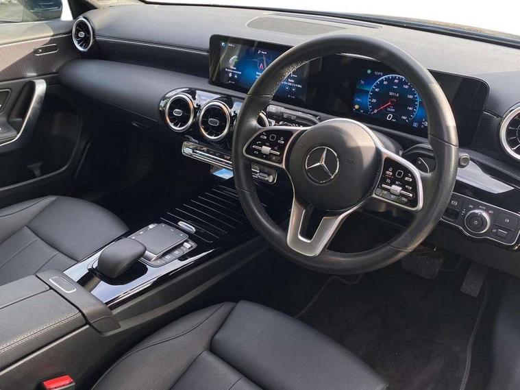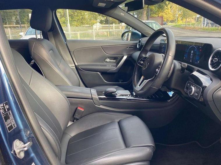 10.25" media display, 180 degree rear view camera with parking guidelines, 7" colour screen in instrument panel, Active parking assist with visual and audible warning of detected obstacles, Attention assist, Brake pad wear indicator warning light, Car wash mode, Cruise control + speed limiter, Direct steering, Dual bluetooth interfaces, DYNAMIC SELECT with a choice of driving modes (ECO, Comfort, Sport and Individual), ECO start/stop function, Fluid level warning indicator for fuel, oil, coolant and washer fluid, Hard-disk navigation, Hey Mercedes Voice activation, Lamp failure indicator, Lane keeping system, Mercedes me connect including emergency call system, accident recovery, breakdown and maintenance management, Mercedes me remote services, Outside temperature gauge, Owners manual in English, Pre-installation for private car sharing, Preinstallation for Mercedes Benz link, Service indicator (ASSYST), Smartphone integration with Apple CarPlay and Android auto, Speed sensitive power steering, Trip computer, Ultrasonic sensors positioned in the front and rear bumpers, Lowered comfort suspension, Rear axle torsion beam, 2 USB ports (type C) in rear stowage compartment and one in front of center console, 6 speakers, DAB Digital radio, MBUX multimedia system with DAB digital radio and touchpad including satellite navigation, Mercedes-Benz sound system - 100W, 4 Electric Front and Rear windows, Adaptive brake lights, Automatic headlights, Black weather strip, Body colour bumpers, Body colour door handles, Body colour side skirt, Body coloured door mirrors, Chrome beltline trim, Diamond radiator grille with black pins with one louvre in silver + chrome insert, Electric adjustable and heated door mirrors with integrated LED side indicators, Exhaust system - Twin visible tailpipes in polished stainless steel, Headlamp assist automatic headlamp activation, Heated glass rear windscreen + timer control, LED High level third brake light, LED high performance headlamps with integrated LED daytime running lights, LED tail lamp, Privacy glass, Radio aerial, Rain sensing windscreen wipers with two sensitivity settings, Rear fog lights, Rear side wing doors, Rear wiper, Window line trim strip in chrome, 3 seat bench in 2nd row, 3 Spoke leather multi function steering wheel, 40:20:40 split folding rear seats, Artico man-made leather upholstery, Auto Mercedes-Benz child seat recognition sensor, Black air vents with surround in silver chrome, Black roof lining, Controller on centre console with chrome surround, Front centre armrest with storage compartment, Front comfort seats with adjustable head restraints, Front door sills with Mercedes Benz lettering, Front seat backs luggage nets, Front seat cushion length adjustment, Gearshift paddles on steering wheel, Heated front seats, Height/reach adjustable steering column, Interior mirror with reading lamps in black and frameless, Manual height adjustable front seats, Rear head restraints, Seat occupancy sensor for front passenger seat, Single front passenger seat, Stowage compartment in centre console with retractable cover, Sunvisors with illuminated vanity mirrors, Touchpad on center console, Twin front cupholders, Two zone thermotronic luxury automatic climate control, Velour floor mats, Light and sight pack - A Class, Mirror package - A Class, Seat comfort pack - A Class, 3 rear 3 point seatbelts, ABS with Brake Assist, Active bonnet, Active brake assist includes forward collision warning system with autonomous braking, Adaptive brake assist with hold function and hill start assist, Black seatbelts, Childproof locks manually operated for rear doors and electrically operated for rear power windows, Crash responsive emergency lighting, Driver and passenger head and side airbags, Drivers knee airbag, Dual stage driver/passenger airbags, Electronic parking brake, ESP curve dynamic assist, ESP with ASR, Front and rear seatbelt reminder, ISOFIX and top tether child seat fixing points in two outer rear seats, Tyre pressure monitoring system, Warning triangle and first aid kit, Window airbags, Alarm system/interior protection/immobiliser, Keyless Go, Remote central locking and crash sensor with emergency opening function, Urban guard vehicle protection system with immobiliser and interior protection, Dark carbon fibre interior trim, 18" multi spoke light alloy wheels painted in himalayas grey with a high sheen finish, Summer tyres, Tirefit sealant kit,