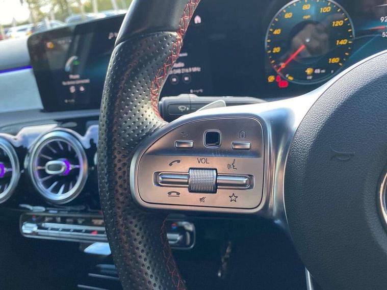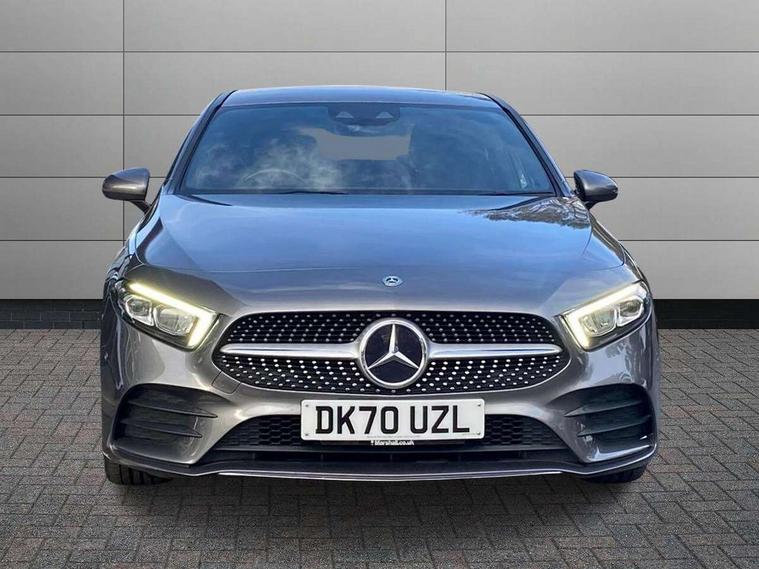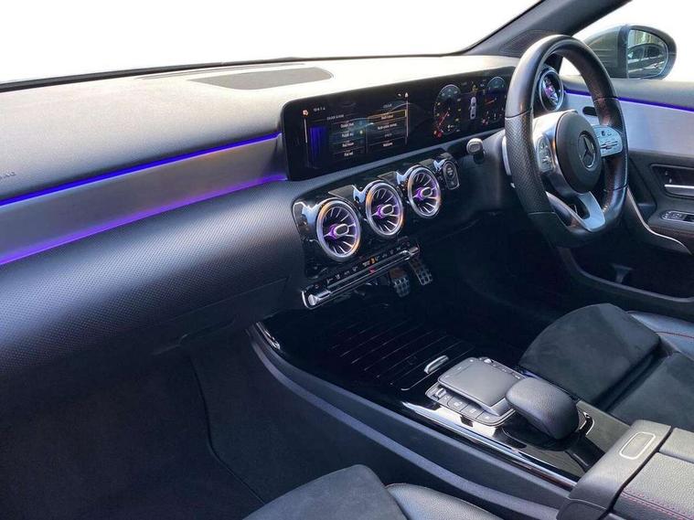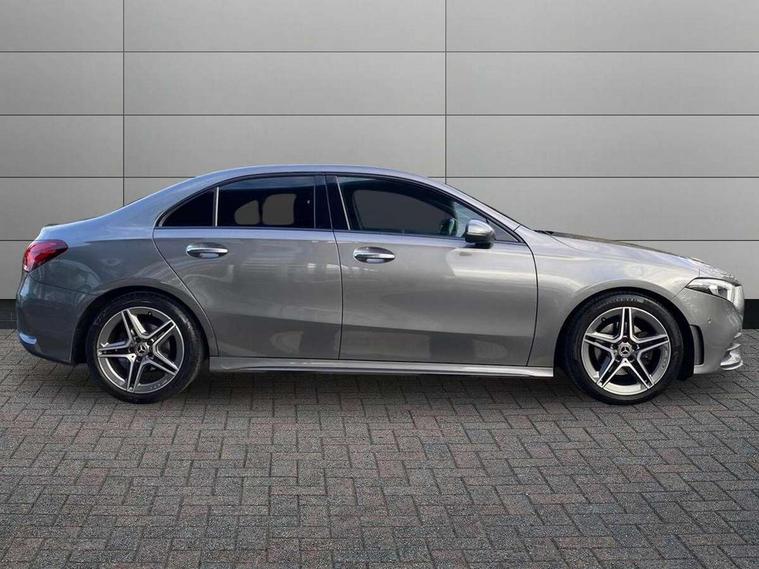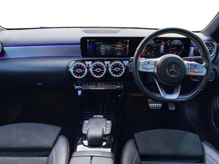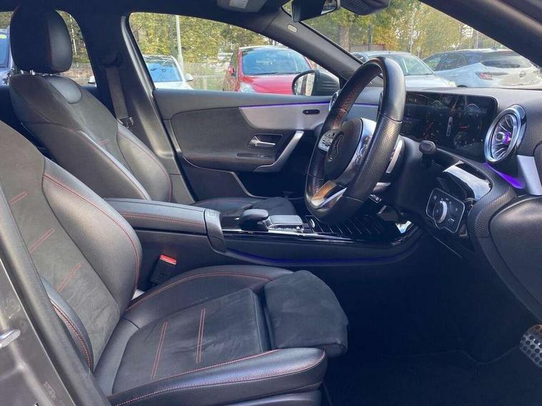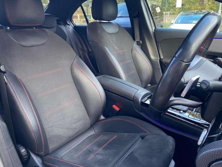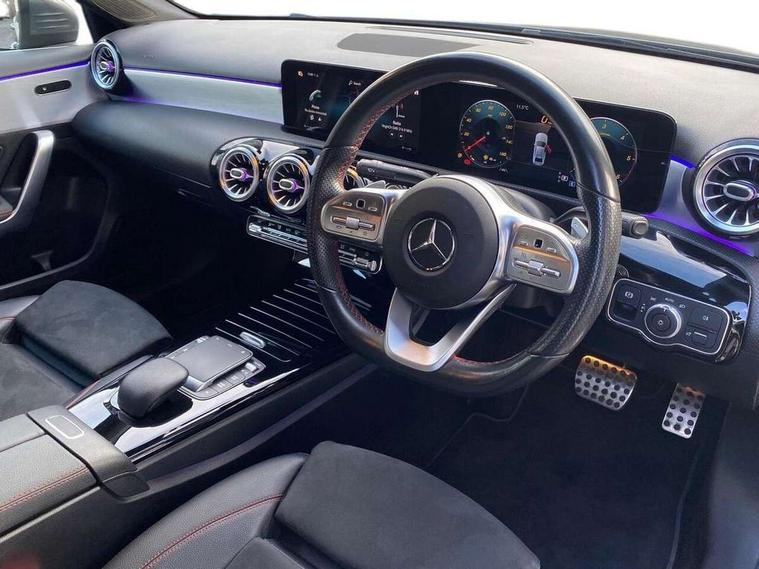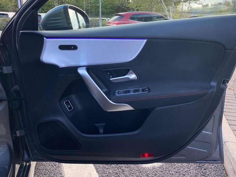 10.25" Digital instrument cluster display screen, 10.25" media display, 180 degree rear view camera with parking guidelines, Active lane keep assist, Active park assist with parktronic system including front and rear parking sensors, Attention assist, Brake pad wear indicator warning light, Car wash mode, Cruise control + speed limiter, Direct steering, Dual bluetooth interfaces, DYNAMIC SELECT with a choice of driving modes (ECO, Comfort, Sport and Individual), ECO start/stop function, Fluid level warning indicator for fuel, oil, coolant and washer fluid, Hard-disk navigation, Hey Mercedes Voice activation, Lamp failure indicator, MBUX augmented reality for navigation, Mercedes me connect including emergency call system, accident recovery, breakdown and maintenance management, Outside temperature gauge, Owners manual in English, Pre-installation for private car sharing, Pre-installation for Vehicle Monitoring, Pre-installation for Vehicle Setup, Preinstallation for Mercedes Benz link, Service indicator (ASSYST), Smartphone integration with Apple CarPlay and Android auto, Speed sensitive power steering, Trip computer, Wireless charging, Lowered comfort suspension, Rear axle torsion beam, 10 speakers, 2 USB ports (type C) in rear stowage compartment and one in front of center console, DAB Digital radio, MBUX multimedia system with DAB digital radio and touchpad including satellite navigation, Mercedes-Benz advanced sound system - 225W, 4 Electric Front and Rear windows, Adaptive brake lights, AMG bodystyling - Front apron with splitter in chrome, rear apron with chrome trim and chrome visible trim elements in tailpipe, Black weather strip, Body colour bumpers, Body colour door handles, Body colour side skirt, Body coloured door mirrors, Chrome beltline trim, Diamond radiator grille with chrome pins and silver louvre + chrome insert, Electric adjustable and heated door mirrors with integrated LED side indicators, Exhaust system - Twin visible tailpipes in polished stainless steel, Headlamp assist automatic headlamp activation, Heated glass rear windscreen + timer control, Illuminated front door sill panels with Mercedes-Benz lettering, LED high performance headlamps with integrated LED daytime running lights, LED tail lamp, LED third brake light, Privacy glass, Radio aerial, Rain sensing windscreen wipers with two sensitivity settings, Rear fog lights, Window line trim strip in chrome, 3 Spoke flat bottom leather multi function steering wheel with perforated leather in grip area, 40:20:40 split folding rear seats, Artico man-made leather/Microfibre Dinamica upholstery with red contrast stitching, Auto Mercedes-Benz child seat recognition sensor, Black air vents with surround in silver chrome, Black roof lining, Brushed stainless steel sports pedals with rubber studs, Controller on centre console with chrome surround, Floor mats with stitched edging and AMG lettering, Front centre armrest with storage compartment, Front seat backs luggage nets, Front seat cushion length adjustment, Front sports seats with adjustable head restraints, Galvanished gear shift paddles on steering wheel, Heated front seats, Height/reach adjustable steering column, Interior lighting - 64 colour Ambient lighting, Interior mirror with reading lamps in black and frameless, Manual height adjustable front seats, Rear armrest with 2 cupholders, Rear head restraints, Seat occupancy sensor for front passenger seat, Stowage compartment in centre console with retractable cover, Sunvisors with illuminated vanity mirrors, Touchpad on center console, Twin front cupholders, Two zone thermotronic luxury automatic climate control, Light and sight pack - A Class, Mirror package - A Class, Seat comfort pack - A Class, 3 rear 3 point seatbelts, ABS with Brake Assist, Active bonnet, Active brake assist includes forward collision warning system with autonomous braking, Adaptive brake assist with hold function and hill start assist, Black seatbelts, Childproof locks manually operated for rear doors and electrically operated for rear power windows, Crash responsive emergency lighting, Driver and passenger head and side airbags, Drivers knee airbag, Dual stage driver/passenger airbags, Electronic parking brake, ESP curve dynamic assist, ESP with ASR, Front and rear seatbelt reminder, Front brake callipers with Mercedes Benz lettering, ISOFIX and top tether child seat fixing points in two outer rear seats, Tyre pressure monitoring system, Warning triangle and first aid kit, Window airbags, Alarm system/interior protection/immobiliser, Keyless entry lock/unlock, Keyless Go, Remote central locking and crash sensor with emergency opening function, Urban guard vehicle protection system with immobiliser and interior protection, Light aluminium with longitudinal grain interior trim, 18" AMG 5 twin spoke light alloy wheels in titanium grey with highsheen finish, Summer tyres, Tirefit sealant kit,