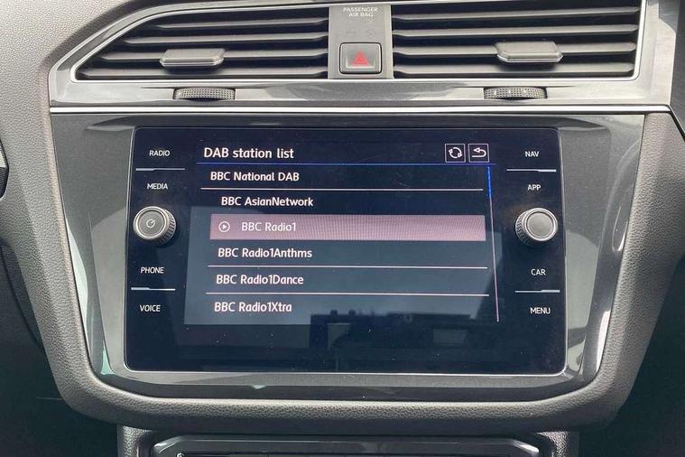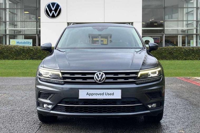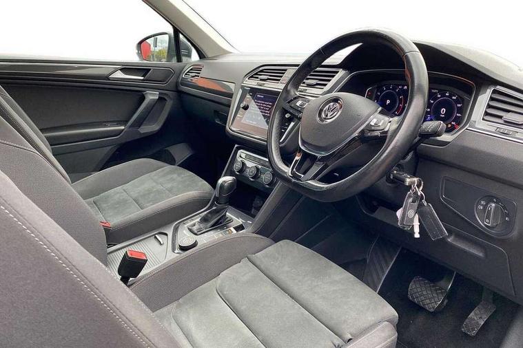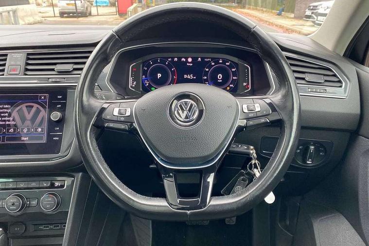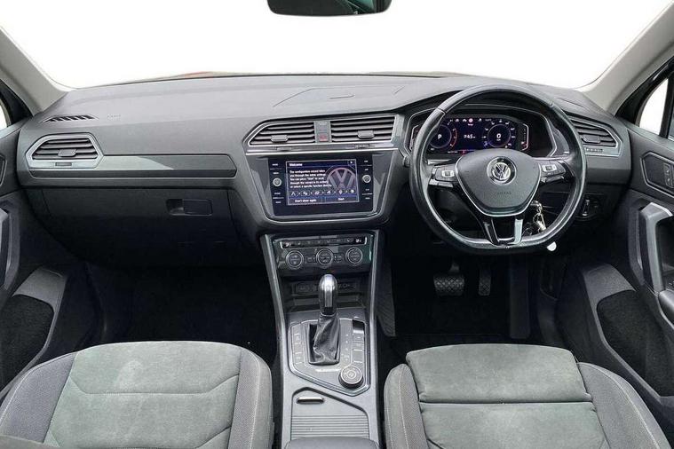 2D/3D map view, Active information display, Adaptive cruise control, App-Connect, Bluetooth phone integration system, Car information display, Coasting function, Distance control assist, Drive mode selector, Driver profile selection, Front assist, radar sensor controlled distance monitor, city emergency braking + predictive pedestrian protection, Instrument cluster, Lane assist, Lights on warning, Multifunction computer with visual gear change recommendation for fuel consumption, Outside temperature display, Service interval indicator, Speed limiter, Start/Stop function, Warning sound and light for doors and tailgate open, Battery regeneration during braking, XDS electronic differential lock for improved traction and handling, 2 x USB connection + USB charging socket, 4 X 20 watt output, DAB Digital radio, SD card slot, Simultaneous pairing of 2 compatible mobile devices, SMS functionality - read, compose and send SMS messages using touch-screen display, Title and cover art display, 3D effect cherry red LED rear tail lights, Auto dimming interior mirror, Automatic activation of hazard warning lights, Black grained lower door protectors with chrome inserts, Body colour door handles, Body colour door mirrors, Body coloured bumpers, Chrome side window surrounds, Chrome trimmed radiator grille, Coming/leaving home lighting function, Dusk sensor + auto driving lights, Electric panoramic sunroof with sunblind, Electrically heated and foldable door mirrors, door mirror puddle lights and reverse activated kerb view adjustment on passenger's door mirror, Front and rear electric windows, Heated rear window, High level 3rd brake light, LED headlights with dynamic light assist daytime running lights and cornering front fog lights, LED rear number plate lights, Piano black front air intake and rear diffuser, Rain sensor windscreen wipers, Rear tinted glass from B-pillar backwards approx 65% tinted, Rear windscreen washer and wiper with interval delay, Side door sills with chrome inserts, Silver front underbody protection and rear diffuser, Silver roof rails, Windscreen wipers/ intermittent wipe + 4 position delay, 12V socket in centre console storage area, 2 cup holders in front, 3 rear headrests, 3 zone climate control, 4 load lashing points, 40:20:40 split folding rear seats, Bag hook in luggage compartment, Foldable front passenger seat backrest, Front + rear carpet mats, Front centre armrest with 12v socket, Front centre armrest with storage + rear 2 air vents, Front seat back storage pockets, Front seatback folding tables, Height/reach adjust steering wheel, Illuminated driver/passenger vanity mirrors, Illuminated scuff plates, Instrument lighting white adjustable panel illumination, Interior light with delay, Isofix Preparation 2 Rear child seats, Leather gear knob, Load through provision with 2 cupholders when folded, Lockable cooled glovebox, Luggage compartment lighting, Map pockets on front seats, Passenger seat height adjuster, Removable luggage cover, Sliding/reclining rear seats, Storage compartment in driver's door, Storage compartment in passenger's door, Storage compartment in rear doors, Storage compartments in luggage area left and right, Storage tray on dashboard, Sunglasses storage, Variable boot floor, height adjustable and removable, Ambient lighting pack - Tiguan, 3 rear 3 point seatbelts, ABS+EBD+Brake assist, Active bonnet, Active pedestrian safety system, Curtain airbags, Driver/Front Passenger airbags, Driver/Passenger whiplash optimised head restraints, Drivers knee airbag, DTC - Drag torque control, Electronic parking brake with auto hold, ESC with EDL, ASR, EDTC and trailer stabilisation function, First aid kit, Front seat side impact airbags, Front side airbags, Front ventilated disc brakes and rear disc brakes, Head airbag system, Height adjustable front 3 point seatbelts + pretensioners, Hill hold control, Passenger airbag deactivate switch, Passenger knee airbag, Pre crash preventive occupant protection, Rear side airbags, Rigid safety cell with front and rear crumple zones, Two tone horn, Warning sound and light for front seat belts if unfastened, Warning triangle, Alarm with interior protection, Electronic engine immobiliser, Remote central locking with 2 remote folding keys, Chrome door trim inserts, Dark grey decorative inserts in dash and door panel, Piano black decorative inserts in centre console,