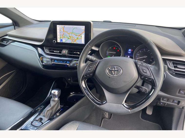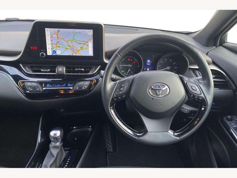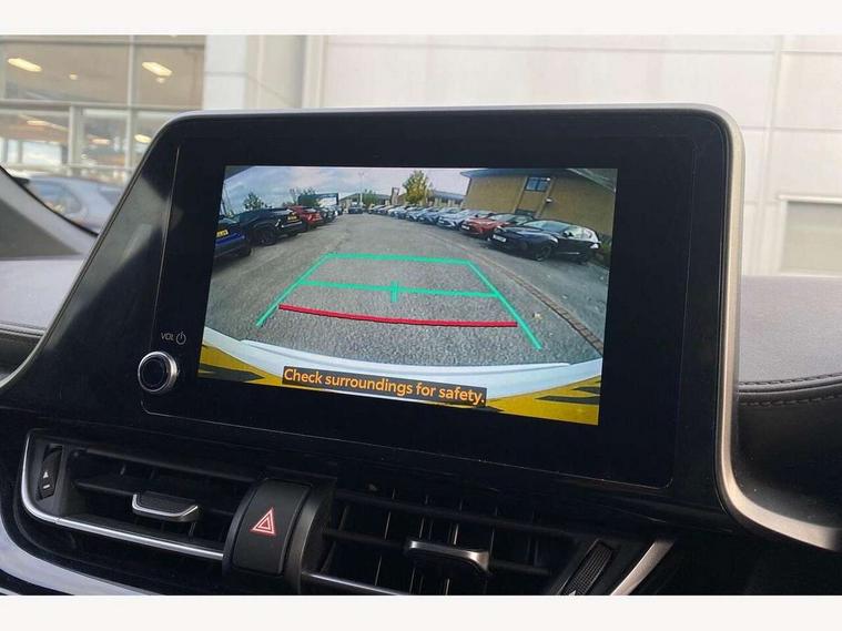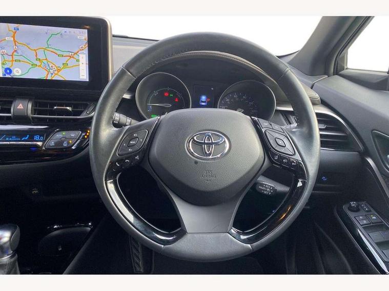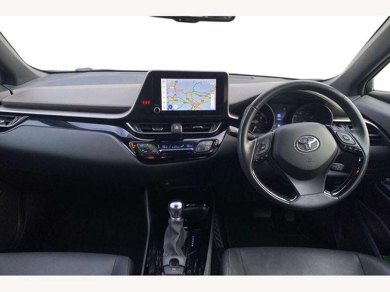 4.2" coloured TFT screen for multi-information display, Adaptive cruise control, Bluetooth connectivity, E-call, Electric power steering, Hybrid system indicator, Lane departure alert with steering control, Remote boot door release in cabin, Remote boot door release in key, Reversing camera, Road sign assist - RSA, Simple Intelligent parking assist, Touch 2 Go navigation system, Trip computer, Voice recognition, Vehicle Stability Control (VSC), 6 speakers, AM/FM radio, DAB Radio (Digital Audio Broadcasting), Toyota touch 2 multimedia system with 8" display, USB connector, Wi-fi connectivity, Adaptive front light system, Adaptive LED Headlights, Anti-jam protection on power windows, Auto high beam, Auto up and down function on all power windows, Automatic headlight levelling, Automatic headlights, Automatic headlights cut-off, Black and body coloured rear bumper, Black upper front grille, Body colour door handles, Body colour door mirrors, Body colour front spoiler lip, Body coloured front bumper, Boot door release with push button, Electric heated door mirrors, Follow me home headlights, Front and rear power windows, Hard tonneau cover, Honeycomb lower front grille, LED daytime running lights, LED fog lights, LED front light guide, LED High mounted stop light, LED rear brake lights, LED rear combination lights, Noise reduction layer on front windows and windscreen, Power adjustable door mirrors, Privacy glass, Rain sensor, Rear sequential indicators, Rear side wing doors, Rear spoiler, Rear tailgate, Rear window defogger, Rear window wiper, Shark fin antenna, UV-filter on driver and passenger windows, UV-filter on rear windows, 12v power outlet - front, 3 rear headrests, 3 seat bench in 2nd row, 3 spoke leather steering wheel, 60/40 split folding rear seat, Adjustable rear headrests, Adjustable speed limiter switch on steering wheel, Assist grips front and centre pillar, Audio and telephone switches on steering wheel, Black front door assist grips, Blue ambient lighting on front cup holders, Blue ambient lighting on front doors, Boot light, Chrome interior door handles, Driver and front passenger personal light, Driver and front passenger Whiplash Injury Lessening seats, Driver and passenger seatback pockets, Dual zone automatic air conditioning, Floor mats, Front cupholders, Front head restraints, Front sports seats, Glovebox with internal light, Heated driver and front passenger seats, Heated steering wheel, Hooks for luggage holding net, Humidifying Nanoe air purifier, Illuminated entry system, Isofix attachments on rear seats, Leather gearshift, Light on driver sun visor, Light on passenger sun visor, Manual telescopic steering wheel, Manual tilt steering wheel, Microphone on front personal light, Mirror on driver sun visor, Mirror on passenger sun visor, Multimedia switches on steering wheel, Pollen filter, Power adjustable lumbar support on driver seat, Power tilting cushion on driver seat, Shopping bag hooks, Single front passenger seat, Slow opening on lower glovebox, Voice recognition switch on steering wheel, Leather pack - C-HR, Tech with parking sensor pack - C-HR, 16 Disk front wheel brake, 3x3 point rear seatbelts, ABS+EBD+Brake assist, Electronic parking brake, Front and rear seatbelt reminder, Front passenger airbag on/off switch, Hill start assist control (HAC), Pre collision system with pedestrian detection, Pre-tensioners and force limiters, Rear door child safety locks, SRS Airbags - Driver + Front passenger, front side, front and rear curtain and driver's knee airbags, Toyota safety sense, Tyre pressure monitoring system, Acoustic vehicle alert system (AVAS), Glass-breaking alarm sensors, Immobiliser, Intrusion alarm, Intrusion sensor, Motion sensor alarm, Power door locks, Power passenger window lock, Remote central locking, Black lower dashboard, Dark brown upper dashboard, Piano black console, Silver deco line on upper dashboard, Tyre repair kit,