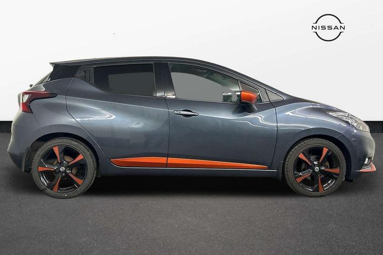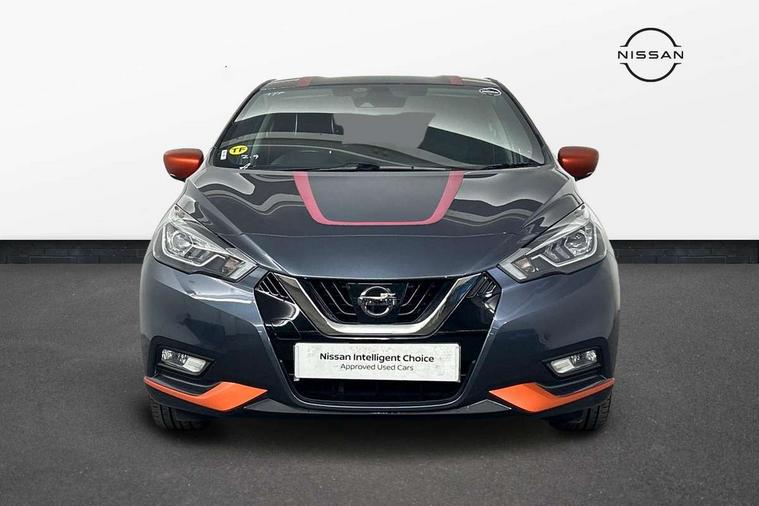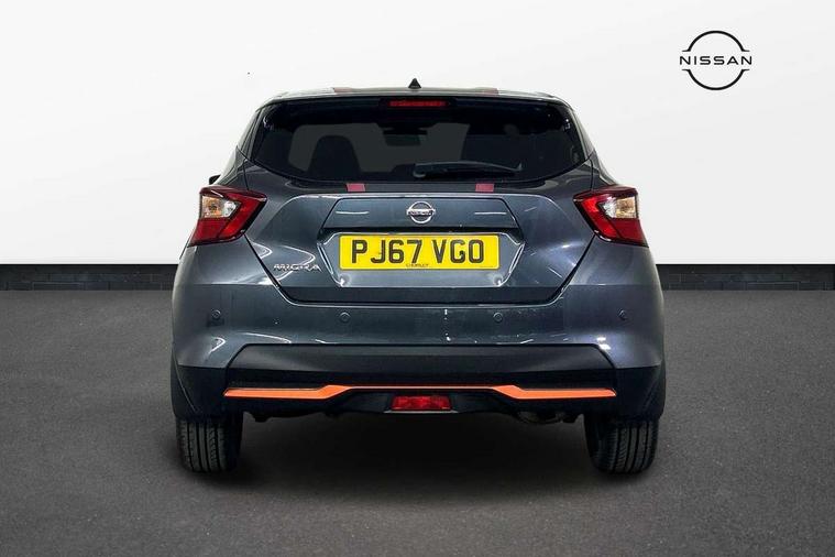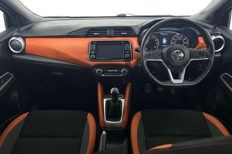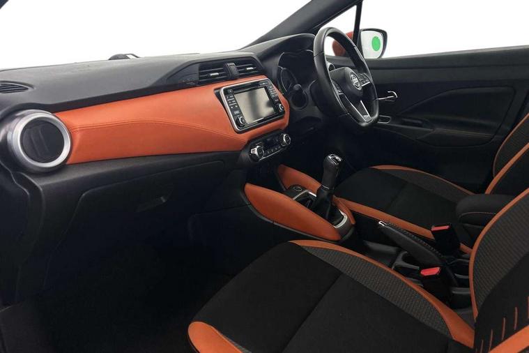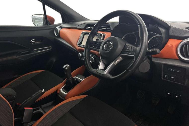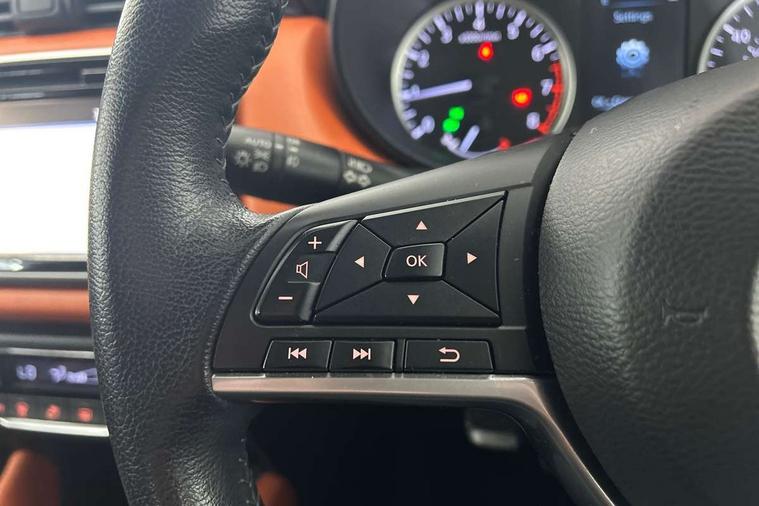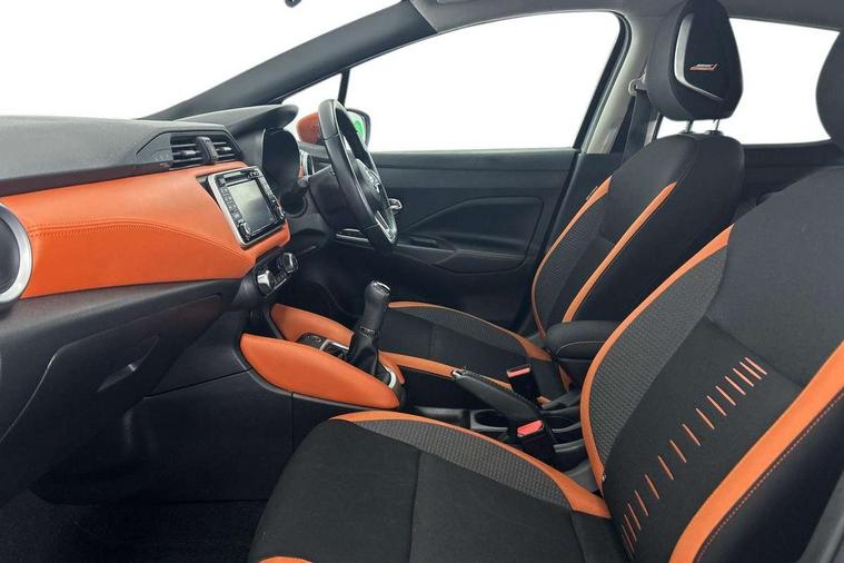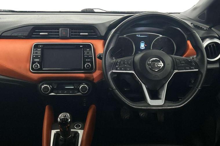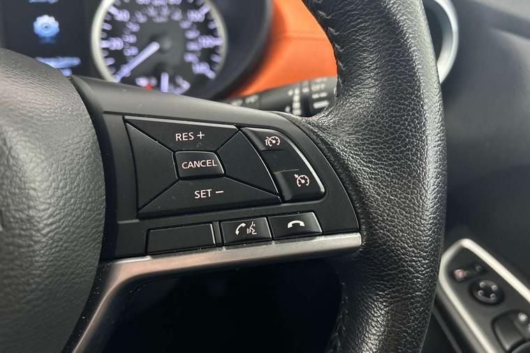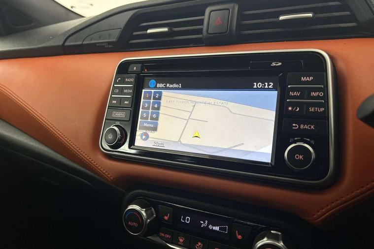 5" TFT driver information centre, Adjustable speed limiter, Bluetooth system, Cruise control, Lane departure warning system, Nissan connect sat nav system, Outside temperature gauge, PAS, Rear parking sensors and rear view camera, Service indicator, Traffic sign recognition, Trip computer, Aux-in socket, BOSE sound system with 6 speakers, DAB Digital radio, MP3 player, Radio/single CD player, Smartphone apps, Steering wheel mounted audio controls, USB/iPod connection, Automatic activation of hazard warning lights, Automatic headlights with dusk sensor, Body colour door handles, Body coloured bumpers, Body coloured door mirrors, Electric folding door mirrors, Electrically adjustable door mirrors, Front fog lights, Heated door mirrors, High beam assist, High mounted stop lamp, LED daytime running lights, LED Headlights, LED indicators in door mirrors, Metallic paint, Power front windows, Privacy glass, Rain sensor windscreen wipers, Rear roof spoiler, Rear wiper, 12V power point front, 3 height adjustable rear headrests, 60/40 split folding rear seat, Automatic air conditioning, Boot compartment cover, Boot light, Chrome interior door handles, Driver's seat manual height adjust, Driver/passenger sunvisors and vanity mirrors, Entry kickplates, Floor mats, Front and rear door pockets with bottle holders, Front armrest, Front console storage box, Front cupholders x 2, Front headrests, Gear shift indicator, Height adjustable front headrests, Height adjustable steering wheel, Interior personalisation cloth upholstery, Isofix front passenger and rear seat preparation, Leather wrapped gear shift knob, Leather wrapped steering wheel, LED ambient lighting, Lumbar support, Map reading lamp, Passenger seat back pocket, Reach adjustable steering wheel, Rear cupholder, Reclining front seats, Satin silver air vents, Synthetic leather door trims, Synthetic leather instrumental panel inserts, ABS+EBD+Brake assist, Crash sensor, Driver/Front Passenger airbags, ESP + ASR traction control + CSV understeer control, Front and rear curtain airbags, Front side airbags, Height adjustable front seatbelts with pre-tensioners and load limiters, Hill start assist, Intelligent emergency braking with pedestrian recognition, Passenger airbag deactivation system, Rear seatbelts with pre-tensioners and load limiters, Seatbelt warning, Tyre pressure monitoring system, Anti-theft immobiliser, Intelligent key with push button ignition, Remote central locking, 17" Alloy wheels, Tyre repair kit,