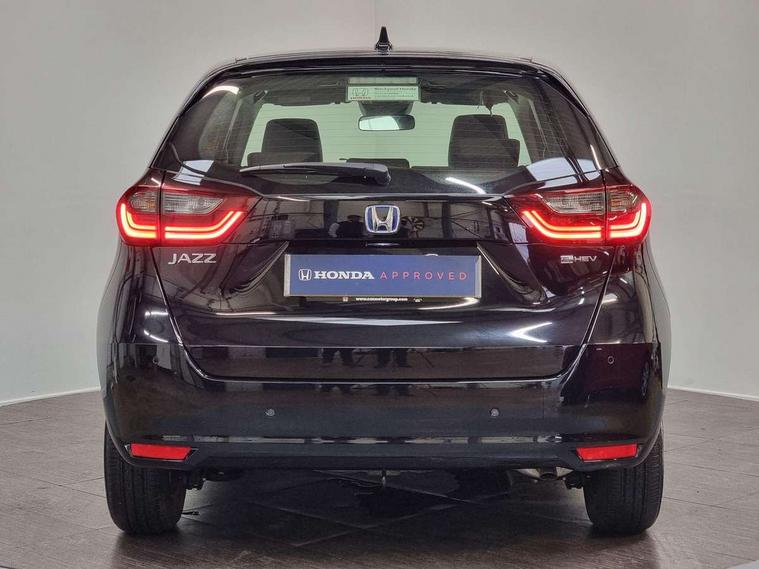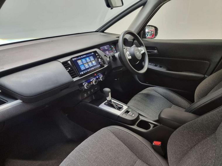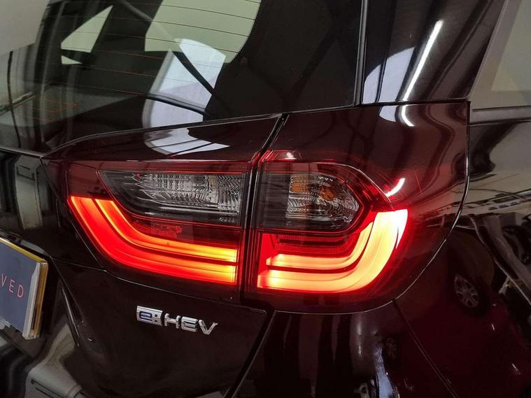 Adaptive cruise control, Adjustable speed limiter, Agile handling assist, Bluetooth hands free telephone connection, eCall emergency call system, Econ mode, Electric power steering wheel with variable gear ratio steering, Emergency stop signalling system, Forward collision warning, Front and rear parking sensors, Honda CONNECT with 9" touchscreen, AM/FM/DAB/Apple Carplay and android auto, Idle stop, Intelligent speed limiter, Lane departure warning system, Lane keep assist system, Low speed following, Multi-information display, Road departure mitigation, Traffic sign recognition, Vehicle stability assist, 'Shark fin' mobile antenna, 2x USB Front socket (1 data & 1 charge), 4 speakers, Remote audio controls on steering wheel, Aspheric door mirrors, Auto wipers, Automatic headlights with on/off timer, Coming/leaving home function, Body colour door handles, Body colour door mirrors, Body coloured bumpers, eHEV emblem, Electric adjustable door mirrors, Electric front windows, Electrically folding door mirrors, Heated door mirrors, High beam assist, LED daytime running lights, LED Headlights, LED rear lights, Rear side wing doors, Rear wiper, Single exhaust tailpipe, Third brake light, 3 seat bench in 2nd row, 60/40 split rear bench seat, Cargo net hooks, Climate control air conditioning, Driver and front passenger seat armrests, Driver and passenger front seat pockets, Driver's seat height adjustment, Fabric/leather upholstery, Front accessory power socket, Front head restraints, Front map lights, Front/rear courtesy lights, Isofix child seat restraint mechanism, Isofix points, Magic seat flexibility system, Plating interior door handles, Rear head restraints, Rear parcel shelf, Single front passenger seat, Sunvisors with vanity mirrors, Tilt/telescopic adjustable steering wheel, Tonneau cover, Trunk light, 3x3 point rear seatbelts, Anti-lock braking system (ABS), Brake assist function, Brake hold function, Child locks on rear doors, Collision mitigation braking system, Deflation warning system, Driver knee airbag, Driver SRS airbag (single stage inflation), Driver/Front Passenger airbags, Electric parking brake, Front and rear side curtain airbag, Front side airbags, Hill start assist, Passenger SRS airbag cut-off device, Rear side airbags, Whiplash lessening front headrests, Front seat belt with emergency locking retractor, Honda super locks, Immobiliser, Mirrors key fob operation, Remote central locking with 2 remote folding keys, Security alarm, Soft pad leather interior panels, 15" Multi apperance alloy wheels in mat berlina black, Tyre repair kit,