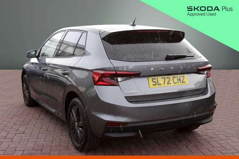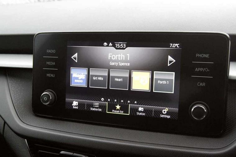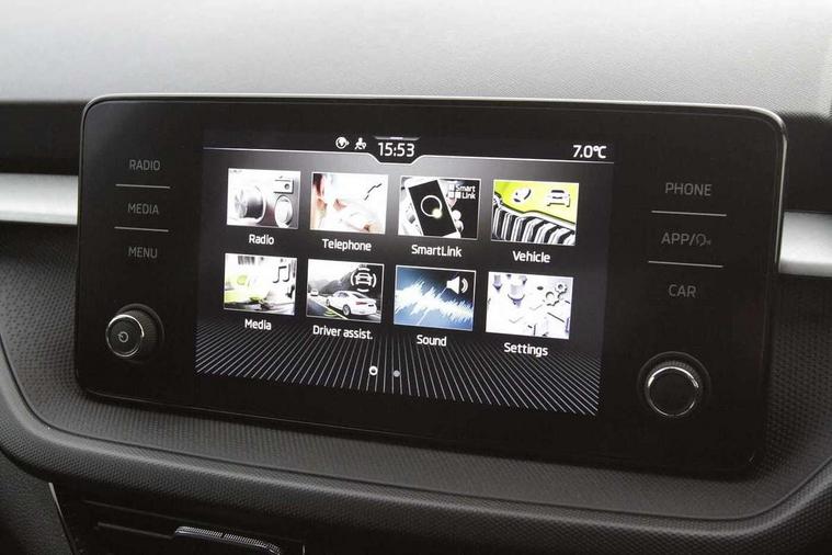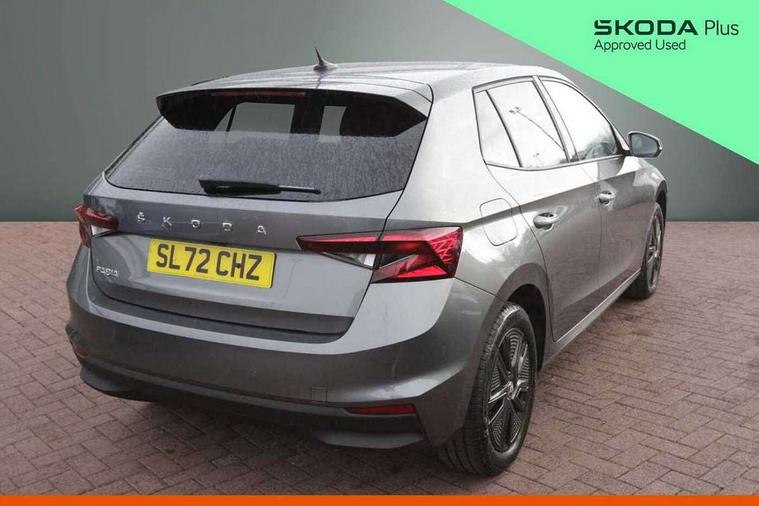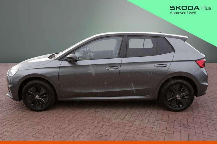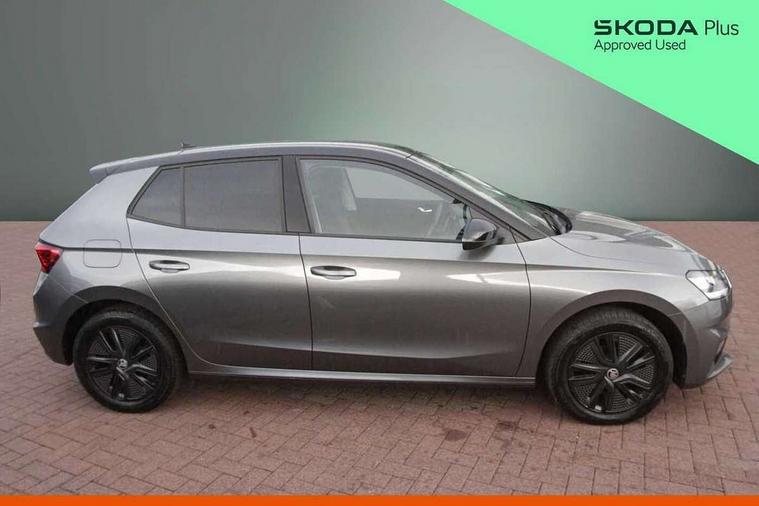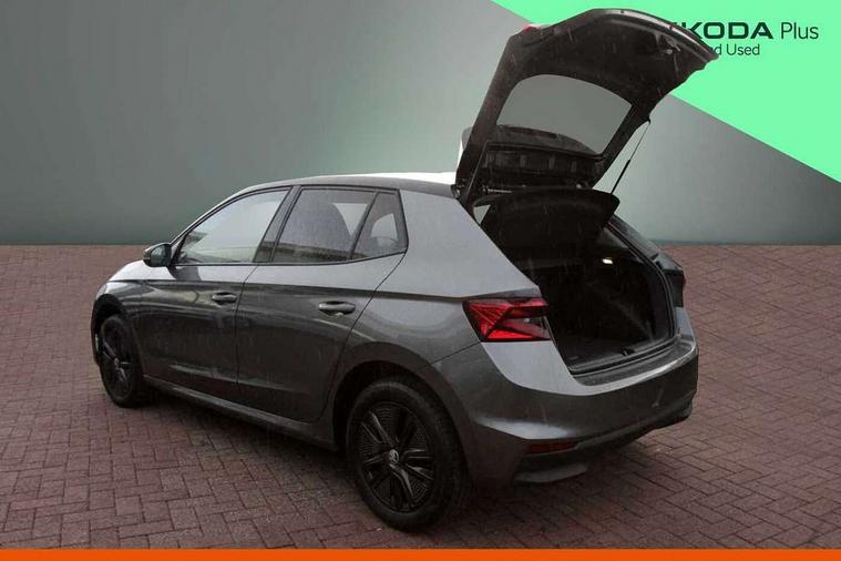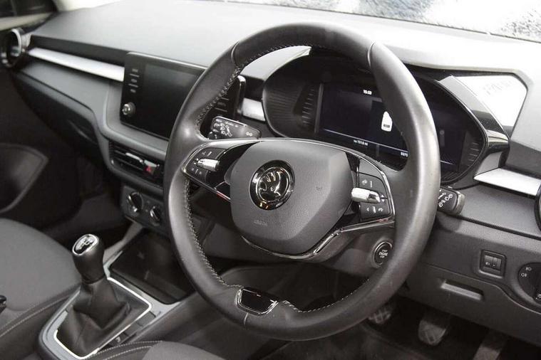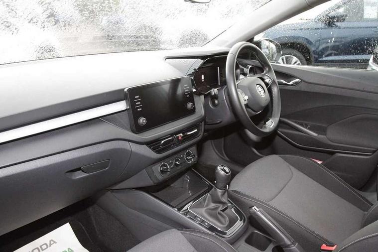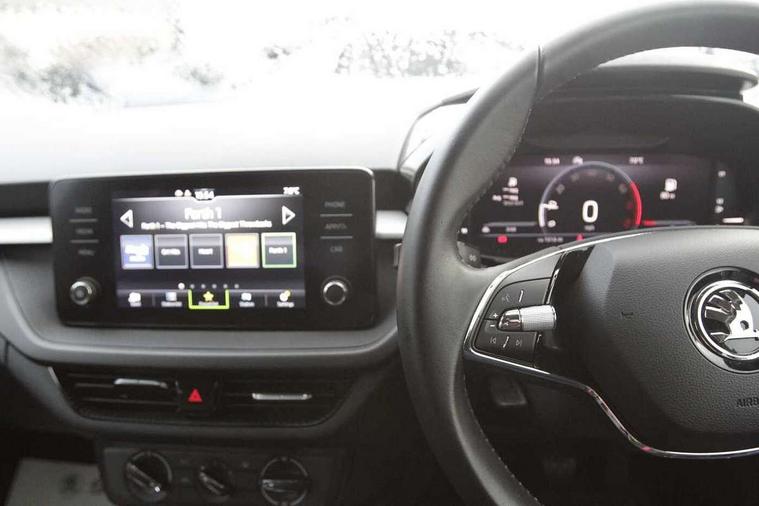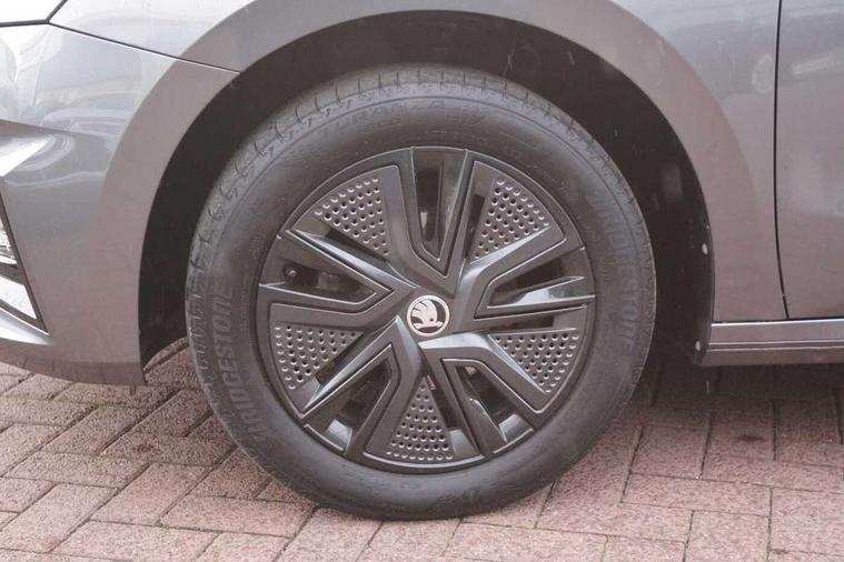 Bluetooth connection, Driver alert system - DAS, Electromechanical power steering, Exterior temperature gauge, Lane assist including road edge detection, Service interval indicator, Virtual cockpit with 10.25" colour display, 2x USB-C in the front (for data transmission and charging), 6 Speakers (4 in front and 2 in rear), Auxiliary socket for external MP3 player, Bolero radio with 8" colour display, DAB digital radio reception, Basic rear lights, Body coloured bumpers, Dimming rear view mirror with black frame, Door mirror integrated indicators, Electrically adjustable and heated door mirrors, Electrically adjustable front windows with function auto up/down, Front window wiper intermittent control, Headlight range control - Automatic, Ice scraper in fuel cap, LED daytime running lights with coming and leaving home feature, Mechanical adjustable rear windows, Privacy glass, Rear LED fog light, Rear side wing doors, Rear window wiper with washing nozzles, Roof mounted spoiler, SKODA tailgate lettering in chrome, Third brake light, 3 rear headrests, Backrest split and folding, Central console with fixed cup holder and storage box, Chrome handbrake release button, Fabric upholstery, Gearshift knob/handle in leather, Grain satin black interior door handles, Hand brake lever handle in leather, Height adjustable front headrests, Height adjustable steering wheel, ISOFIX and TopTether anchorage points to the outer rear seats, ISOFIX and TopTether on the front passenger seat, Luggage compartment lighting, Pollen filter, Rear seat bench unsplit, Single front passenger seat, Storm grey headlining, Sun visors with mirror and airbag label on passenger side, Ticket holder, Umbrella in drivers door, 3-point height adjustable front seats belts with pretensioner and force limiter, Automatic warning lights in case of crash, Driver and passengers airbag with switch off function, e-Call+, ESC including ABS, MSR, ASR, EDS, HBA and XDS, Front and rear seat belt warning, FRONT ASSIST (AEB City and AEB Inter Urban), Front side airbags, Head airbags, One tone horn, Pedestrian protection, Three rear 3-points safety seat belts with pretensioner and force limiter including stop function for outer rear seat belts, Tyre pressure monitoring system, Anti-theft alarm system including immobiliser, interior monitoring, backup horn, and towing protection, Anodized cross line upper decorative trim, Colour Edition air vents, Grain satin black central console cover, Grain satin black lower decorative trim, Satin black door and side trim panel in front, Anti-theft wheel bolts protection, Super-low rolling resistance tyres,