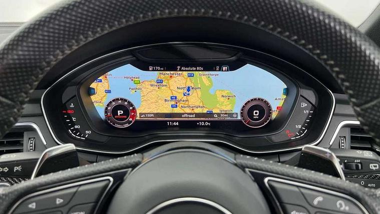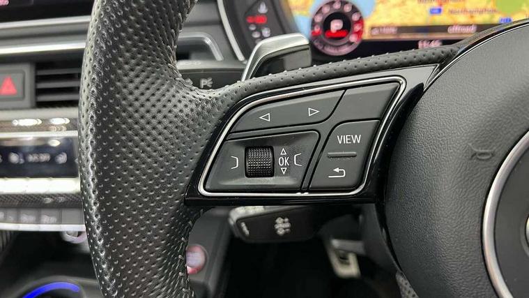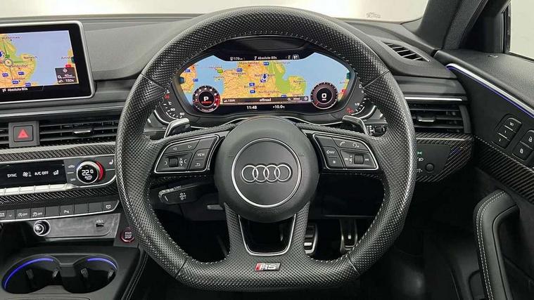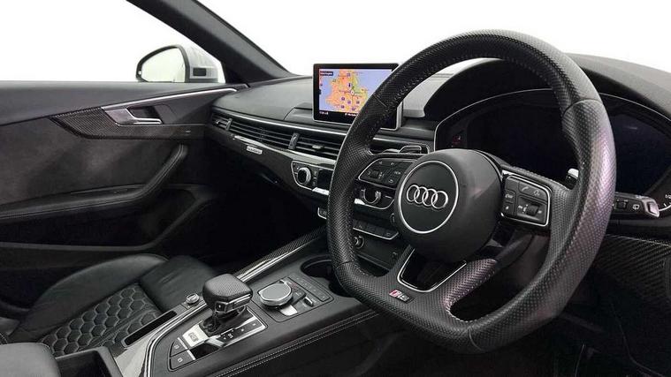Audi drive select, Audi smartphone interface, Audi virtual cockpit - 12.3" high-resolution LCD display with fully customisable instrument cluster, Colour driver's information system display, Electro-mechanical PAS, MMI navigation plus with HDD and jukebox storage + 2 SD card readers + single CD/DVD player, Mobile telephone preparation - bluetooth interface, Power boot opening and closing, Service interval indicator, Stop/start button, Voice control system, Quattro sports differential, 2 USB ports, Aux input, DAB digital radio module, Acoustic windscreen, Air inlets in titan black with chrome inlays, Aluminium window trim, Auto dimming rear view mirror, Automatic headlights + automatic windscreen wipers, Body colour bumpers, Body colour door handles, Electric adjustable heated door mirrors, Electric front windows, Electric rear windows, Headlight range control, Headlight washer jets, High beam assistant, High gloss black triangular aperture at rear door, Honeycomb radiator grille - black, LED daytime running lights, LED indicators in door mirrors, Rain and light sensors, Rear diffuser in Twilight grey matt, Rear wiper, Twin oval exhaust tailpipes with chrome finish, 3 zone climate control, 4 way electric lumbar support for driver and front passenger, Black cloth headlining, Door armrest in leather, Fine Nappa leather upholstery, Front centre armrest with 12v socket, Front headrests, Front/rear floor mats, Gearshift paddles, Illuminated door sill finishers, Isofix child seat preparation for front passenger/outer rear seats inc passenger airbag deactivation, Jack and tool kit, Luggage compartment carpet, Lumbar support with massage function, Massage function for front and rear seats, Perforated leather gearknob, Reach + rake adjustable steering column, Rear centre armrest, Rear headrests, Retractable load area cover, RS Super sports front seats, Split folding rear seats, Sunvisors with vanity mirrors, Top tether anchor plate for isofix child seat, Non Smokers pack, 3 point seatbelts on all rear seats, ABS/EBD, Active bonnet, Adaptive driver and front passenger airbags, Electromechanical parking brake, Enhanced braking system, ESP, First aid kit, Front head airbags, Front seatbelt pretensioners + load limiters, Front side airbags, Hill hold assist, Pre-sense city emergency braking system, Seatbelt warning, Traction control, Warning triangle, Anti theft alarm, Keyless Start, Locking wheel bolts, Remote central locking, Thatcham category 1 alarm + immobiliser, Space saver spare wheel,
