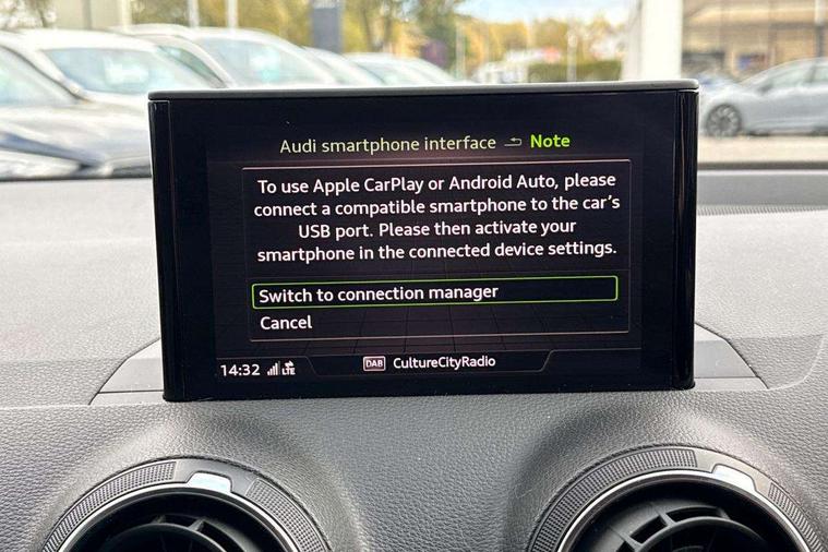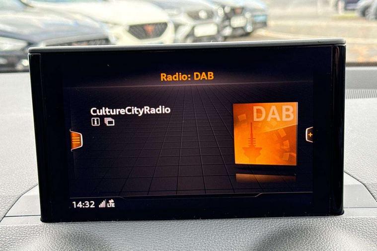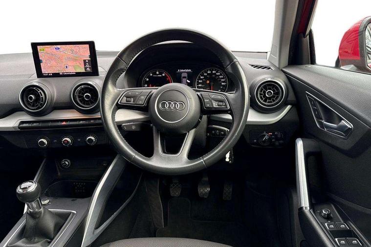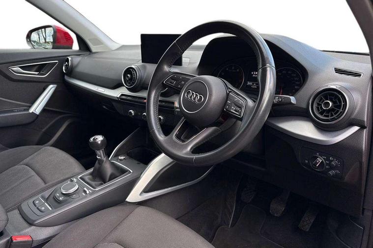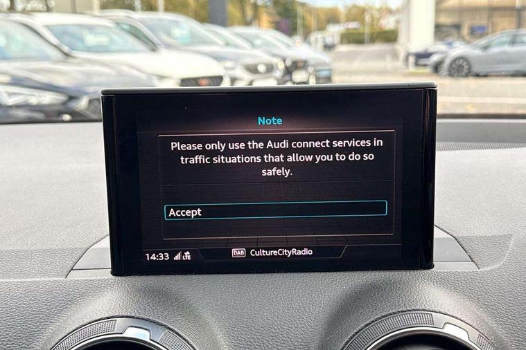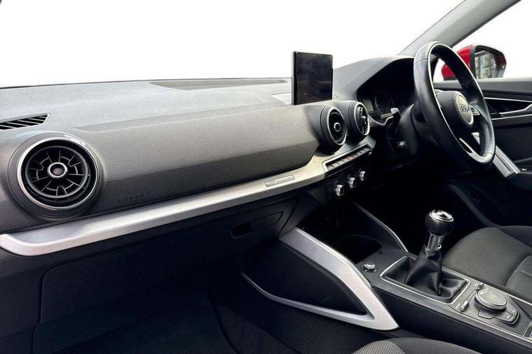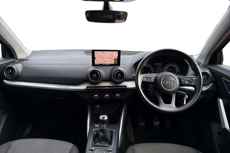 Audi drive select, Audi smartphone interface, Bluetooth hands free telephone connection, MMI - Multi Media Interface control system, MMI SD card Navigation, PAS, Service interval indicator, Voice control system, Dynamic suspension, Audi music interface, Aux input, CD player, DAB digital radio module, MMI radio plus with 7" colour MMI screen and MMI controller, USB port, Body colour door mirrors, Chrome exhaust tailpipe, Door mirror integrated indicators, Electrically adjustable and heated door mirrors, Front and rear electric windows, Rear wiper, Sunband for windscreen, Aluminium door sill trims, Centre console with storage/cupholders, Front and rear door pockets, Front and rear headrests, Front and rear velour floor mats, Front centre armrest, Front sports seats, Glovebox, Height adjustable front seats, Height/reach adjust steering wheel, ISOFIX on front passenger and rear outer seats, Storage compartment in rear centre console, Titanium grey cloth headlining, Non smoking pack - Q2, 3x3 point rear seatbelts, ABS+Electronic Brake force Distribution, Curtain airbags, Driver and passenger airbags, Driver and passenger side airbags, EDL + ASR, Electrically operated child locks on rear doors, Electromechanical parking brake, ESP, Multi-Collision braking, Pre-sense front with pedestrian recognition, Seatbelt warning light, Tyre pressure monitoring system, Warning triangle and first aid kit, Locking wheel bolts, Remote central locking, Thatcham category 1 alarm + immobiliser, Aluminium interior trim,