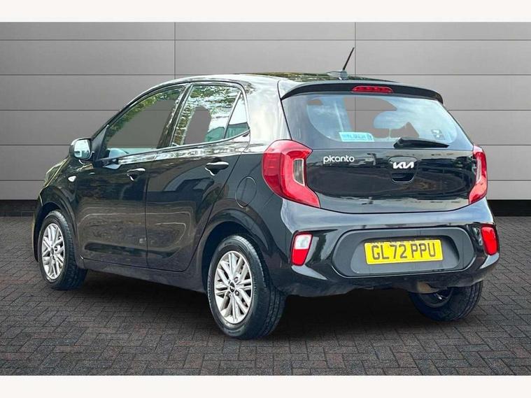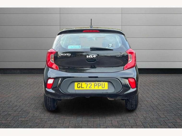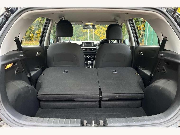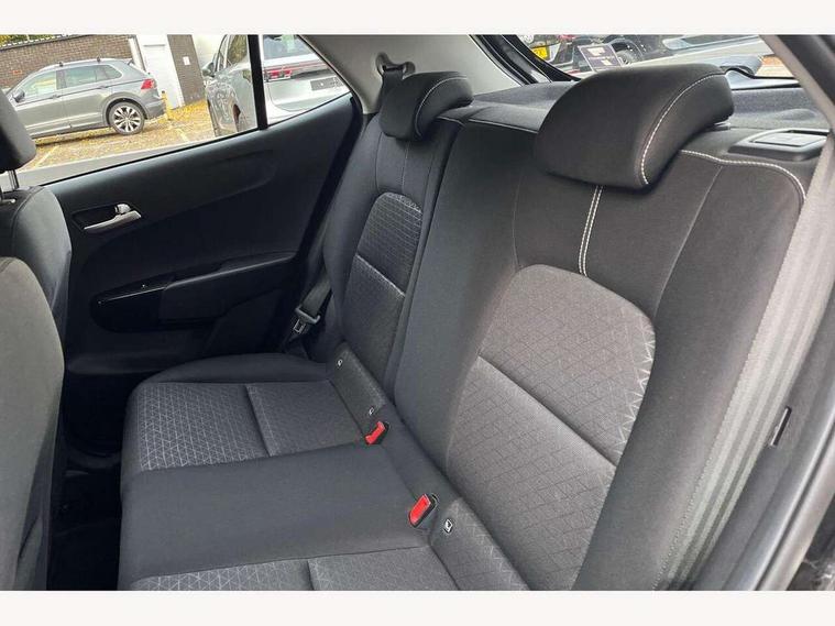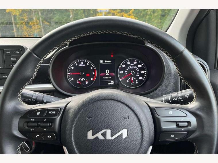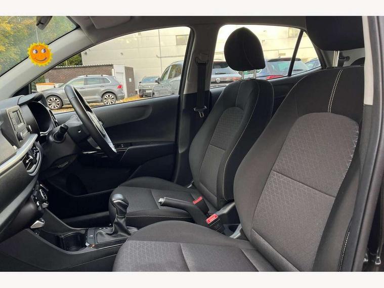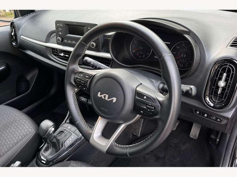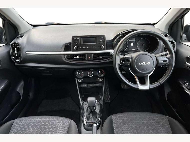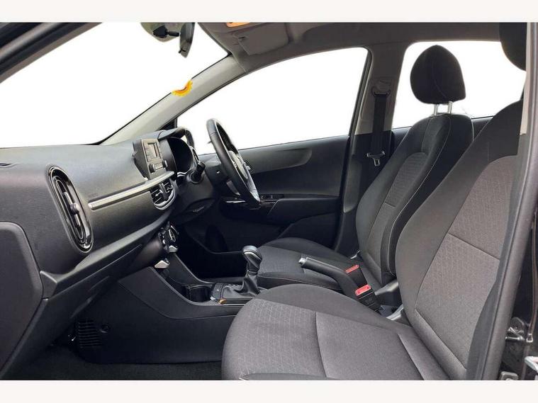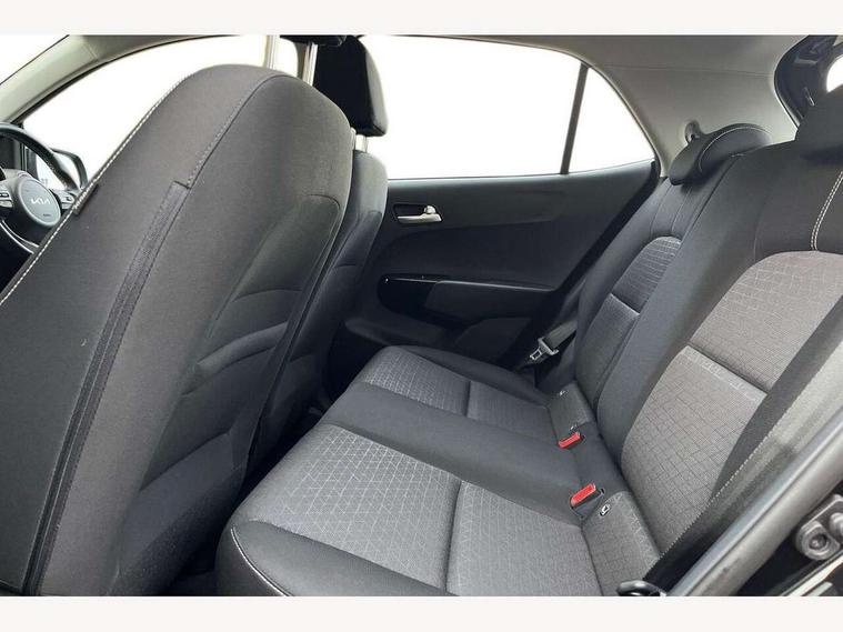 3.8" monochrome audio display with RDS and DAB, Emergency call service, Emergency stop signalling system, External temperature gauge, Motor driven power steering, Tachometer, Tailgate, Trip computer, 4 speaker audio system, Bluetooth with music streaming, Steering wheel mounted controls, USB ports for connection of a media device, Automatic headlight control system, Black radiator grille with chrome surround, Body colour bumpers, Body colour mirrors and door handles, Day/night rear view mirror, Daytime running lights, Electric adjustable heated door mirrors, Front and rear electric windows with drivers's auto up/down function, Headlamp levelling, Heated rear window, High mount brake light, MFR - Multi Focus Reflector halogen headlights with black bezel, Rain sensor, Rear fog lights, Rear side wing doors, Rear wash/wipe, Speed variable front wipers, Tinted glass, Visible VIN plate, Welcome and follow-me home light functionality, 1 x rear coat hook, 12V power point front, 2 seat bench in 2nd row, 3 x passenger assist grips, 60/40 split/folding 2nd row of seats, All round height adjustable headrests, Cupholders in centre console, Driver and front passenger sunvisor with vanity mirror, Driver seat height adjust, Front cabin lights, Glovebox, High gloss lower centre fascia trim, door armrest and air vents, ISOFIX Child seat top tethers and anchor fixings, Leather trimmed steering wheel and gearshift, Luggage area light, Luggage area parcel shelf, Manual air conditioning, Passenger front seatback pockets, Premium cloth upholstery, Silver paint finished interior door handles, Single front passenger seat, Slide/reclining front seats, Tilt adjustable steering wheel, Advanced Driver Assistance Pack - Picanto, 2 x 3-point rear seatbelts, ABS/EBD, Automatic unlocking of doors in case of impact, Dual front airbags, ESC + BAS + VSM + HAC, Front passenger airbag cut-off switch, Front seatbelt height adjusters, Front seatbelt pretensioners + load limiters, Hill hold control, Knee airbags, Rear child proof door locks, Seatbelt warning, Side impact protection, Torque vectoring brake based and straight line stability (SLS), Traction control, Twin curtain airbags, Twin front side airbags, Tyre pressure monitoring system, Anti theft alarm, Engine immobiliser, Folding key, Locking wheel nuts, Remote central door locking, 14" alloy wheels, Tyre mobility kit,