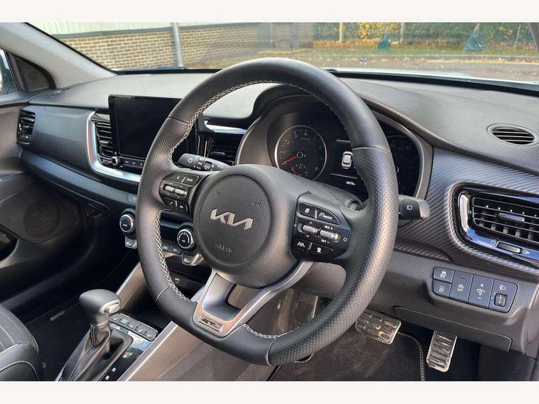 4.2" supervision colour cluster display, 8" touchscreen navigation, Apple car play/Android Auto with voice control, Blind spot collision avoidance assist, Blind spot collision warning, Drive mode selector, Electric power steering, Emergency call service, Emergency stop signalling system, External temperature display, Forward Collision-Avoidance Assist (FCA) - City/Pedestrian/Cyclist, Front parking sensors, Intelligent speed limit warning, Lane keeping assist system (LKAS), Driver attention warning (DAW) and High beam assist (HBA), Rear parking sensor, Reversing camera system, Smart cruise control, Trip computer, Intelligent Stop and Go, Audio system with 6 speakers, Bluetooth with music streaming, Front USB port, Steering wheel mounted controls, All round electric windows with drivers auto up/down function, Auto dimming rear view mirror, Automatic defog system, Automatic headlights control, Black rear roof spoiler with high mounted LED braking light, Black side sill, door garnish and wheel arch trims, Black/body colour bumpers, Body coloured exterior door handles, Chrome side window trim, Electrically adjustable/heated/folding door mirrors with LED indicators, Front and rear silver skid plates, Gloss black door mirrors with matt black lower housing, GT-Line body kit, Headlight levelling device, Heated rear window, High gloss black and satin radiator grille, LED Bi-function projection headlights with static bending, LED daytime running lights, LED front fog lights, LED position light, LED rear combination lights, Privacy glass - Rear windows and tailgate, Rain sensing front wipers, Rear fog lights, Rear side wing doors, Rear wash/wipe, Roof rails, Shark fin antenna, Solar windshield glass, Speed variable front aeroblade wipers, Tinted glass, Welcome and follow-me home light functionality, Windscreen Washer Level Warning, 12V power point front, 3 seat bench in 2nd row, 60/40 split folding rear seat, Air filter, All-round height adjustable headrests, Aluminium pedals, Automatic air conditioning, Centre armrest storage box, Centre console with cupholders, D-Cut perforated leather trimmed steering wheel, Dash illumination dimmer switch, Driver's seat height adjuster, Front and centre cabin lights, Front and rear door map pockets with bottle holder, Gear shift indicator, Glovebox illumination, GT-Line cloth/faux leather upholstery, Heated front seats, Heated steering wheel, ISOFIX Child seat top tethers and anchor fixings outer rear seats, Leather trimmed gearshift, Luggage area light, Luggage area parcel shelf, Luggage net, Luggage net with hooks, Overhead console lamp, Overhead console with sunglasses cases, Passenger front seatback pockets, Passenger seat height adjuster, Rear USB charging port, Satin chrome interior door handles, Single front passenger seat, Sunvisors with vanity mirror illumination (Driver and front passenger), Tilt/telescopic adjustable steering wheel, ABS with Electronic Brakeforce Distribution (EBD) and Brake Assist System (BAS), All round 3-point seatbelts, Electronic stability control (ESC) and vehicle stability management (VSM), Front passenger airbag cut-off switch, Front seatbelt pretensioners + load limiters, Height adjustable front seatbelts, Hill start assist control (HAC), Impact sensing auto door unlocking, Manual child lock in rear doors, Rear seat Occupancy alert, Seatbelt reminder warning, Twin curtain airbags, Twin front airbags, Twin front side airbags, Tyre pressure monitoring system, Alarm system, Door deadlocks, Engine immobiliser, Locking wheel nuts, Smart key with engine start/stop button, Speed sensitive auto door locking, Visible vehicle identification number, High gloss black centre fascia, 17" GT-Line alloy wheels, Tyre mobility kit,
