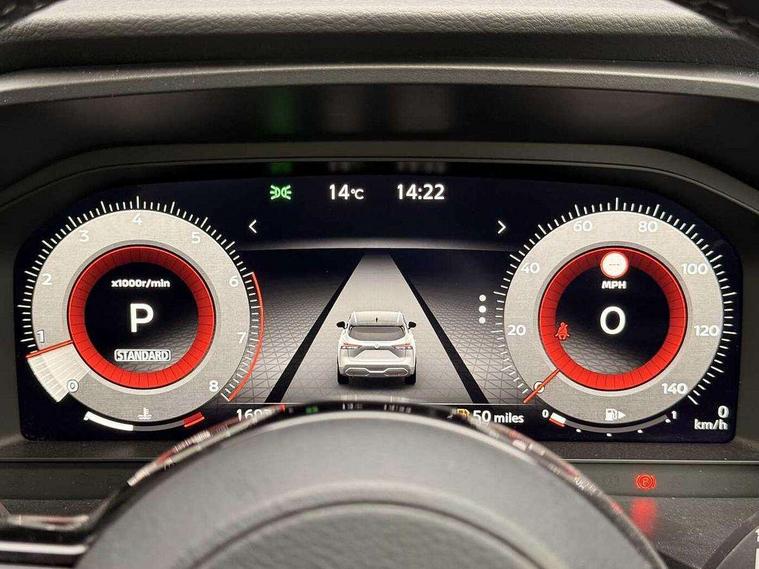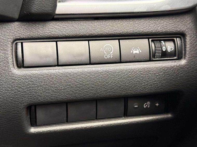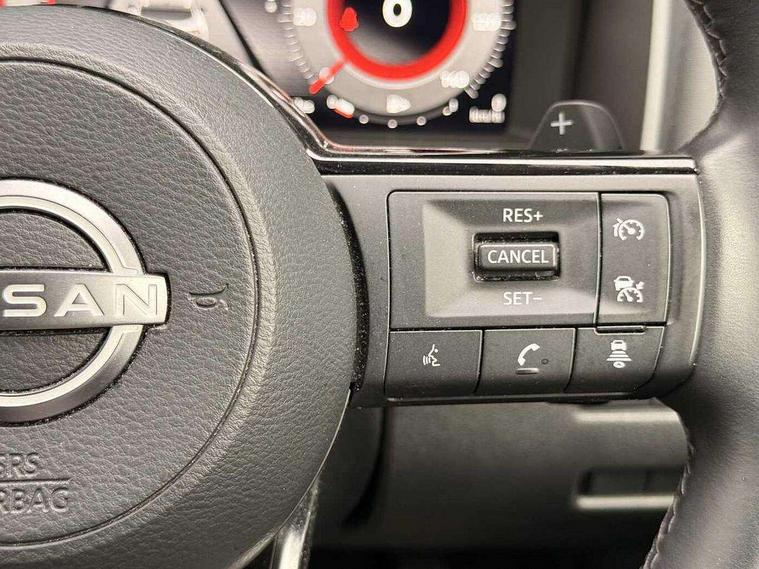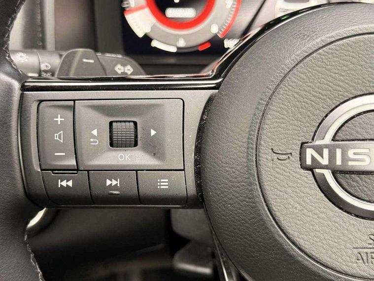 Android auto/Apple CarPlay (Wired), Blind spot warning, Drive modes (sport, normal, eco), Electric speed sensitive power steering, Emergency and breakdown call, Full Digital 12.3" TFT Digital Combimeter, Google maps services - search, weather, 3D maps and Google street view, Idle stop/start system, Intelligent around view monitor, Intelligent Cruise control (ICC), Intelligent driver alert system, Intelligent forward collision warning, Intelligent lane intervention, Lane departure prevention, Lane departure warning system, Maximum speed limiter, Moving object detection, Nissan connect 12.3 inch touchscreen infotainment system, Nissan connect navigation, Push button starter, Rear cross traffic alert, Rear parking sensors, Rear view camera, Remote control services - door locks, lights, horn and car locator, Telematics - notifications and connectivity services, TomTom live traffic services, Traffic sign recognition with legal speed adjustment, Trip computer, Virtual personal assistant and firmware over the air capability, Wireless apple carplay, 6 speakers, AM/FM audio system with DAB, Bluetooth audio streaming, Front USB connections (Type-A and Type-C), Rear USB charging only ports (Type-A and Type-C), Auto dimming rear view mirror, Auto rear wiper when reversing, Automatic hazard signal with emergency stop signal, Body colour mirror caps, Body coloured door handles, Bodyside mouldings, Chrome side window finisher, Door handle with button, Electric auto folding door mirrors, Electrically adjustable and heated door mirrors with LED turn indicator, Follow me home headlights, High beam assist, Intelligent auto headlights, LED daytime running lights, LED Headlights, LED rear lights, One touch front and rear electric windows with remote opening and closing, Partially body coloured bumpers, Privacy glass, Rear bumper with graphite insert, Rear reversing light (bulb lighting), Rear roof spoiler, Rear side wing doors, Rear styling plate, Shark fin antenna, Splash free rain sensing wipers, Super UV and infrared cut glass, Three blink turn signal, 12v power socket in dashboard and luggage, 2x Rear coat hooks, 3 bench rear seats in 2nd row, 3 rear headrests, 4 folding assist grip, 6 Luggage hooks - 4 on floor, 2 on side, 6-way manually adjustable driver's seat, 60/40 split folding rear seat bench, Ambient lighting around centre console, Centre console storage tray, Chrome interior door handles, Cloth monoform upholstery, Driver and front passenger sunvisors with illuminated vanity mirrors, Driver seat back pocket, Dual zone automatic climate control with pollen filter, Electrically adjustable lumbar support for driver, Front and rear door storage, Front centre console and armrest, Front cupholders x 2, Front door with bottle holders, Glovebox with light, Hard trunk cover, Height adjustable driver's seat, Height adjustable front headrests, Height adjustable passenger seat, Leather steering wheel, Luggage board system, Luggage space lighting, Manually adjustable passenger (slide recline + lifter), Multifunction steering wheel, Passenger seat back pocket, Rear armrest with 2 cupholders, Rear door bottle holders, Single front passenger seat, Soft PVC kneepad, Steering wheel gearshift paddles, Steering wheel switches, Sunglasses holder, Tilt/telescopic adjustable steering wheel, Two rear isofix child seat anchorage points with top tether, Welcome light and console tray ambient lighting, 3x3 point rear seatbelt pretensioners + load limiters, ABS with EBD and brake assist, Active brake limited slip, Auto hold function, Child locks on rear doors, Curtain and front side, far side airbags, Driver and passenger airbags, Driver, passenger and 2nd row rear seat belt reminder, Electronic parking brake, Front seatbelt pretensioners + load limiters, Height adjustable front seatbelts, Hill start assist, Intelligent blind spot intervention, Intelligent front emergency braking with pedestrian, cyclist recognition and junction assist, Intelligent rear automatic braking, Tyre pressure monitoring system, Vehicle dynamic control, Capless fuel filler, Engine immobiliser, Intelligent Key, Remote central door locking with deadlocking, Thatcham Cat.1 alarm, Interior instrumental panel B finisher, 18" Diamond cut alloy wheels, Tyre puncture repair kit,