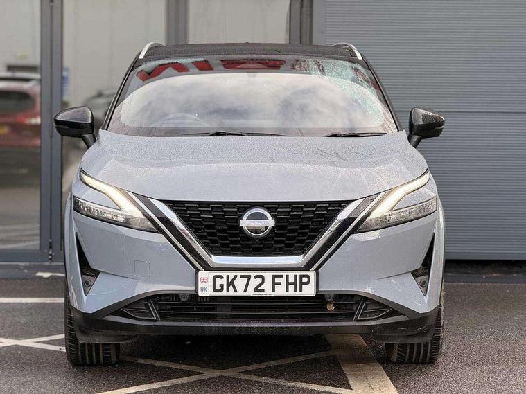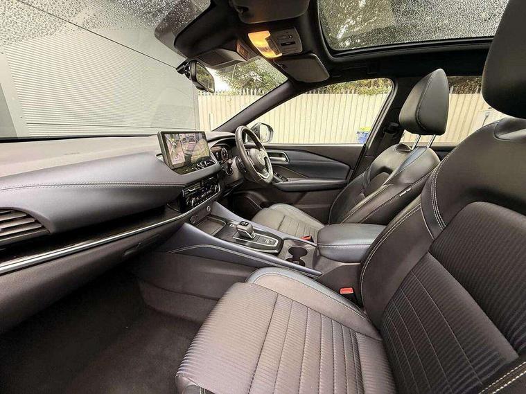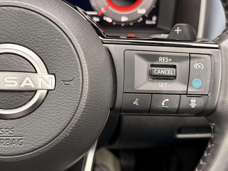 Advanced windscreen head up display, Android auto/Apple CarPlay (Wired), Blind spot warning, Drive modes (sport, normal, eco), Electric speed sensitive power steering, Emergency and breakdown call, Front and rear parking sensors, Full Digital 12.3" TFT Digital Combimeter, Google maps services - search, weather, 3D maps and Google street view, Hands free power tailgate, Idle stop/start system, Intelligent around view monitor, Intelligent Cruise control (ICC), Intelligent driver alert system, Intelligent forward collision warning, Intelligent lane intervention, Lane departure prevention, Lane departure warning system, Lane keep assist, Moving object detection, Nissan connect 12.3 inch touchscreen infotainment system, Nissan connect navigation, ProPilot, Push button starter, Rear cross traffic alert, Rear view camera, Remote control services - door locks, lights, horn and car locator, Telematics - notifications and connectivity services, TomTom live traffic services, Traffic jam pilot, Traffic sign recognition with legal speed adjustment, Trip computer, Virtual personal assistant and firmware over the air capability, Wireless apple carplay, Wireless charging pad, 6 speakers, AM/FM audio system with DAB, Bluetooth audio streaming, Front USB connections (Type-A and Type-C), Rear USB charging only ports (Type-A and Type-C), Auto dimming rear view mirror, Auto rear wiper when reversing, Automatic hazard signal with emergency stop signal, Body colour mirror caps, Body coloured door handles, Bodyside mouldings, Chrome side window finisher, Door handle with button, Electric auto folding door mirrors, Electrically adjustable and heated door mirrors with LED turn indicator, Follow me home headlights, Front and rear LED turning signals, Headlights auto levelling system, Intelligent auto headlights, LED daytime running lights, LED headlights with adaptive driving beam, LED rear lights, One touch front and rear electric windows with remote opening and closing, Partially body coloured bumpers, Privacy glass, Rear bumper with graphite insert, Rear reversing light (bulb lighting), Rear roof spoiler, Rear side wing doors, Rear styling plate, Shark fin antenna, Splash free rain sensing wipers, Super UV and infrared cut glass, Thermaclear heated windscreen, Three blink turn signal, 12v power socket in dashboard and luggage, 2x Rear coat hooks, 3 bench rear seats in 2nd row, 3 rear headrests, 4 folding assist grip, 6 Luggage hooks - 4 on floor, 2 on side, 60/40 split folding rear seat bench, Ambient lighting around centre console, Ambient lighting in front doors, Centre console storage tray, Chrome interior door handles, Cloth/syntech leather monoform upholstery, Dark black/blueish PVC wrapping, Dark headlining, Driver and front passenger sunvisors with illuminated vanity mirrors, Driver seat back pocket, Dual zone automatic climate control with pollen filter, Electrically adjustable driver seat, Electrically adjustable lumbar support for driver, Front and rear door storage, Front centre console and armrest, Front cupholders x 2, Front door with bottle holders, Glovebox with light, Hard trunk cover, Heated front seats, Heated steering wheel, Height adjustable driver's seat, Height adjustable front headrests, Height adjustable passenger seat, Leather steering wheel, Luggage board system, Luggage space lighting, Manual lumbar support on passenger seat, Manually adjustable passenger (slide recline + lifter), Multifunction steering wheel, Passenger seat back pocket, Rear armrest with 2 cupholders, Rear door bottle holders, Single front passenger seat, Soft PVC kneepad, Steering wheel gearshift paddles, Steering wheel switches, Tilt/telescopic adjustable steering wheel, Two rear isofix child seat anchorage points with top tether, Welcome light and doors with console tray ambient lighting, Glass roof pack with roof rails - Qashqai, 3x3 point rear seatbelt pretensioners + load limiters, ABS with EBD and brake assist, Active brake limited slip, Auto hold function, Child locks on rear doors, Curtain and front side, far side airbags, Driver and passenger airbags, Driver, passenger and 2nd row rear seat belt reminder, Electronic parking brake, Front seatbelt pretensioners + load limiters, Height adjustable front seatbelts, Hill start assist, Intelligent blind spot intervention, Intelligent front emergency braking with pedestrian, cyclist recognition and junction assist, Intelligent rear automatic braking, Tyre pressure monitoring system, Vehicle dynamic control, Capless fuel filler, Engine immobiliser, Intelligent Key, Remote central door locking with deadlocking, Thatcham Cat.1 alarm, Interior instrumental panel C finisher, 19" Alloy wheels, Tyre puncture repair kit,