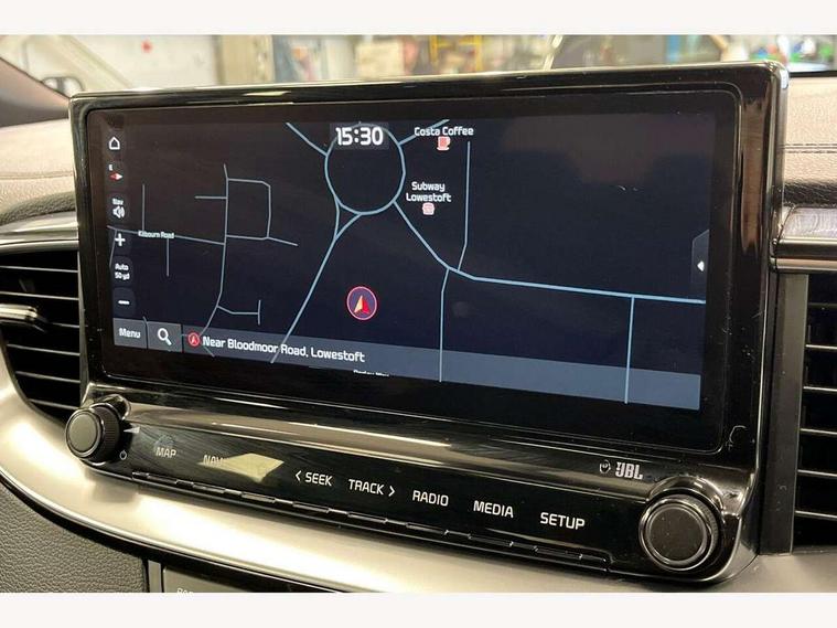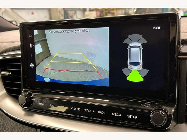 10.25" touchscreen satellite navigation, 12.3" TFT supervision cluster display, Apple car play/Android Auto with voice control, Blind spot Collision Warning (BCW), Bluetooth with Voice Recognition & Music Streaming, Drive mode select (Normal and Sport), Driver attention warning + (DAW) with leading vehicle departure warning, Emergency call service, Emergency stop signalling system, Forward Collision-Avoidance Assist (FCA) - City/Pedestrian/Cyclist, Intelligent speed limit warning, Kia connect UVO, Lane Following Assist (LFA), Lane keep assist, Manual speed limit assist, Motor driven power steering, Rear cross-collision assist, Reversing camera system with dynamic guidelines (Integrated into centre fascia screen), Smart cruise control with stop/go functionality, Smart park assist system (SPAS) with parallel/perpendicular with front/rear parking sensor, Trip computer, Wireless Mobile Phone Charger, Intelligent Stop and Go, DAB Radio with MP3, Illuminated USB ports, JBL Premium sound system with 8 speakers, Steering wheel mounted controls, USB Fast Charger in Front Centre Console, USB type A port, All-round Electric Windows with Front Auto Up & Down Function, Auto dimming rear view mirror, Automatic defog system, Automatic headlights control, Body colour bumpers, Body colour exterior door handles, Body coloured and dark chrome rear skid plate, Body coloured side sill mouldings, Dark chrome window surround, Electric adjustable/heated/folding door mirrors with LED Indicators, Heated rear window with timer, High beam assist, High gloss black and dark chrome radiator grille, High gloss black door mirrors, High Gloss Black rear spoiler - roof, LED daytime running lights, LED front fog lights, LED Headlights, LED High-mounted Brake Light, LED honeycomb rear light, LED rear combination lights, Panoramic sunroof with tilt/slide function and automatic electric roll blinds, Privacy glass (rear side windows and tailgate), Rain sensing front wipers, Rear side wing doors, Rear wash/wipe, Satin chrome dual exhaust trim, Tinted glass, Wide view drivers door mirror, Windscreen Washer Level Warning, 1 x Front 12V socket, 12V power socket in luggage compartment, 3 seat bench in 2nd row, 3 x passenger assist grips, 60/40 split folding rear seat, All-round height adjustable headrests, Aluminium pedals, Centre console storage box/armrest, Cupholders in centre console, Cupholders in rear armrest, Dash illumination dimmer switch, Door courtesy lamps, Driver & Front Passenger Sunvisors with Vanity Mirror Illumination & Ticket Holder, Driver + front passenger electric lumbar support, Driver's power seat height adjuster, Dual Height Luggage Area Floor, Dual zone automatic air conditioning, Faux leather door centre trim, Front and rear door storage, Front cabin map light with sunglasses case, Front Passenger Seat Height Adjuster, Front seat back pockets, Heated front seats, Heated rear seats, Heated steering wheel, Interior door lock/unlock function, ISOFIX Child seat top tethers and anchor fixings, Leather D-Cut steering wheel, Leather handbrake, Leather/suede upholstery, Luggage area light, Luggage area parcel shelf, Luggage hooks, Memory driver's seat, Rear centre armrest, Rear coat hooks, Single front passenger seat, Tilt/telescopic adjustable steering wheel, All round 3-point seatbelts, Anti-lock braking system (ABS), Brake assist system, Dual front side airbags, Dual horn, EBD - Electronic brakeforce distribution, Electronic parking brake, Electronic stability control (ESC) and vehicle stability management (VSM), Front passenger airbag cut-off switch, Height adjustable front seatbelts, Hill start assist control (HAC), Impact sensing auto door unlocking, Rear door child safety locks, Seatbelt reminder warning, Twin curtain airbags, Twin front airbags, Tyre pressure monitoring system, Alarm system, Engine Immobiliser & Deadlocks, Engine Start/Stop Button with Smart Entry System, Locking wheel nuts, Speed sensitive auto door locking, Satin Chrome Fascia Trim, 18" GT-Line S alloy wheels, Tyre mobility kit,