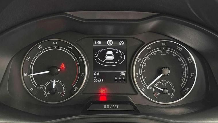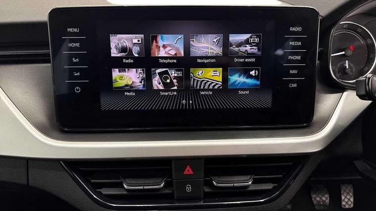 Amundsen satellite navigation with 9.2" glass colour touchscreen with web radio, Bluetooth system, eCall emergency system, PAS, Rain and light assist with auto dimming rear view mirror, Speed limiter, Tailgate, Traffic sign recognition, Voice control system, 2 USB - C ports, 8 loudspeakers, DAB Digital radio, 3rd brake light, Automatic headlamp activation with Coming home and Leaving home feature, Body colour door mirrors and handles, Chrome grille surround, Chrome window surround, Dimming rear view mirror with black frame, Electrically adjustable and heated door mirrors, Front and rear electric windows, LED rear lights, Rear side wing doors, Rear wiper, Tinted windows, 12V Accessory socket in centre console, 3 seat bench in 2nd row, Chrome inner door handles, Cloth upholstery, Front head restraints, Glasses storage in roof liner, Height adjustable drivers seat, Height adjustable passenger seat, Instrument cluster with chrome painted decor ring, ISOFIX for rear passenger seat, Leather gearknob and handbrake lever, Manual lumbar support for front seats, Reading lights for driver and front passenger, Single front passenger seat, Sun visor with make up mirror for front passenger, Third rear headrest, Umbrella, 3x3 point rear seatbelts, Curtain airbags, Emergency call and proactive services, Front head and side airbags, Hill hold control, Manual rear child locks, One tone horn, Passenger airbag switch off function, Seat belt reminder for all seats, Alarm, Anti-theft wheel bolts, Remote central locking with 2 remote folding keys, SAFE function for remote central locking, Silver haptic decorative insert with glossy black hot stamping, Temporary space saver wheel,