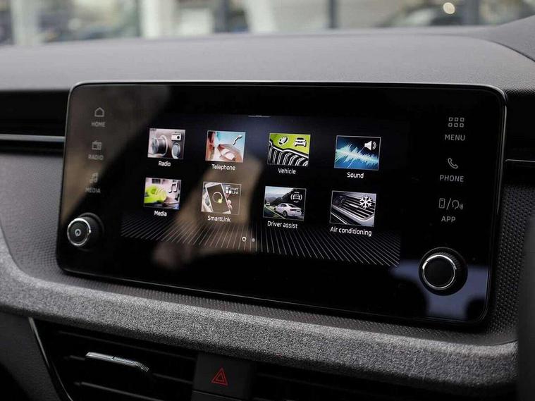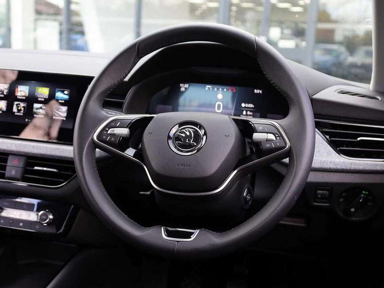 8" Digital display, Advanced driver attention and drowsiness monitor, Bluetooth, e-Call (emergency call), Front assist system, PAS, Rear parking sensors, Speed limiter, Tailgate, Traffic sign recognition, Wireless smartlink, 4 USB C ports, 8 Speakers, 8.25" Skoda infotainment display, DAB radio, Auto dimming rear view mirror, Automatic headlamp activation with Coming home and Leaving home feature, Automatic high/low beam, Body colour bumpers, Body colour door mirrors and handles, Chrome moulding around grille, Front and rear electric windows, Full LED headlights, Heated rear window, LED 3rd brake light, LED brake lights, LED daytime running lights, LED front turning lights, LED high beam, LED low beam, LED taillights, Rear LED fog light, Rear side wing doors, Rear wiper, Tinted windows, 12V socket in luggage compartment, 3 seat bench in 2nd row, Black / Grey armrest stitching, Black hotstamping, Cargo elements, Chrome inner door handles, Door inserts in satin black, Driver and passenger sun visors with vanity mirror, Dual zone climate control, Front and rear roof lights, Front centre armrest, Front head restraints, Glasses storage in roof liner, Height adjustable driver seat, Height adjustable passenger seat, Ice scraper, Illuminated glove compartment, Inner circulation control with pollen filter, ISOFIX for front passenger seat, Isofix preparation for back seats, Leather gearknob and handbrake lever, Loft cloth upholstery, Luggage net under rear parcel shelf, Manual lumbar support for front seats, Net package and top tether hooks in boot space, Pearl grey ceiling, Pocket on the back of both front seats, incl. mobile phone pockets, Single front passenger seat, Textile floor mats, Third rear headrest, Ticket holder, Top tether for front passenger seat, Umbrella in driver's door, 3x3 point rear seatbelts, ABS, Child locks, Curtain airbags and front side airbags, Disc brakes, Driver and front passenger airbags, ESP, Hill hold control, Manual leather parking brake, One tone horn, Passenger airbag switch off function, Seatbelt reminder for driver and front passenger, Tyre pressure monitoring system, Anti theft alarm system with interior monitoring, backup horn and towing protection, Anti-theft wheel bolts, Remote central locking with 2 remote folding keys, SAFE function for remote central locking, Decord pad, door inserts Kota uni,