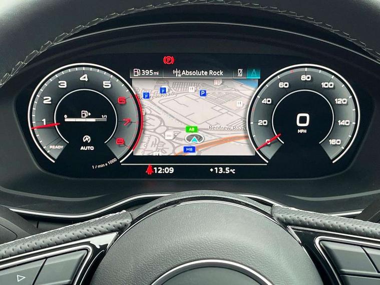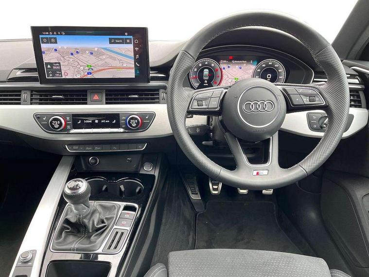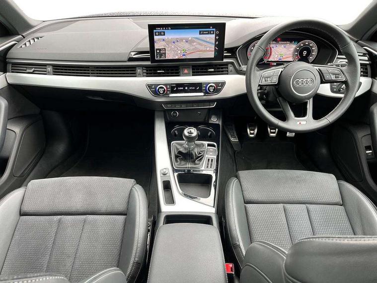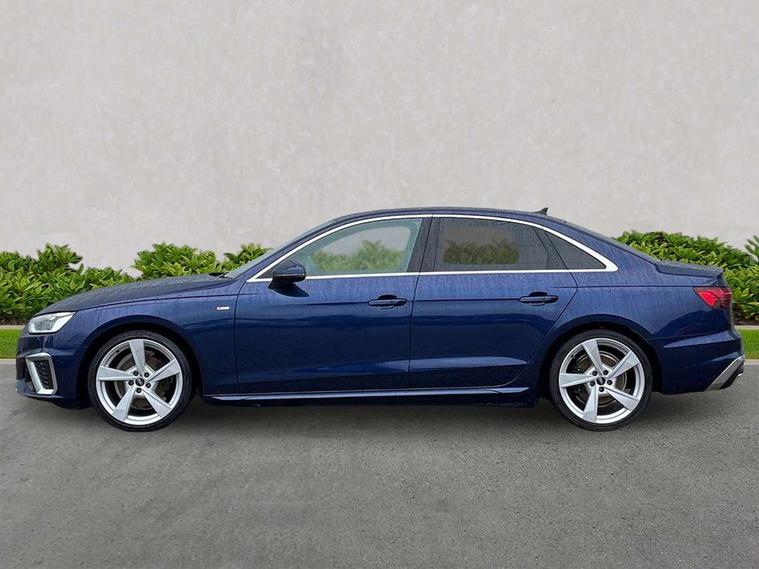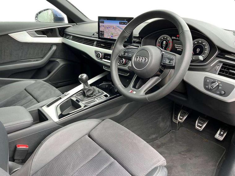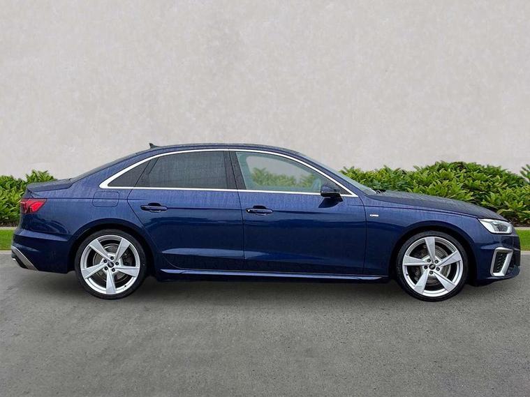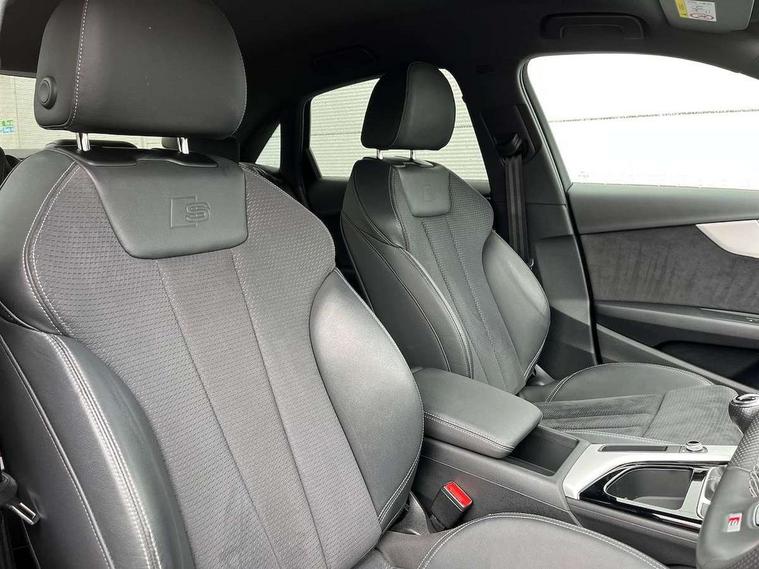 Audi connect safety and service (e-call), Audi connect with Amazon Alexa Integration, Audi drive select, Audi parking system plus with front and rear sensors, Audi smartphone interface, Audi virtual cockpit, Automatic start-stop system with coasting functionality and efficiency programme, Bluetooth interface, Cruise control system with speed limiter, Electric boot lid release, Electromechanical power steering, Email, calendar and text messages displayed via MMI, MMI Navigation plus with MMI touch includes 10.1" high resolution colour MMI display, 3D map, Rear view camera, Voice control system, 54 litre fuel tank, Sports suspension lowered by 23mm, 2 USB charging ports, 8 passive loudspeakers, DAB digital radio reception, Auto dimming rear view mirror, Body colour door handles, Body colour front spoiler lip, Body colour side sill trim, Body coloured door mirrors, Electrically folding auto dimming/adjustable/heated door mirrors with LED side indicators and kerb view function for passenger side, Grained matt black side air inlets with matt aluminium silver inlay, High beam assistant, Honeycomb structure radiator grille in grained matt black, LED headlights with LED rear lights + dynamic rear indicators + headlight adjustment and high beam, turning light + LED daytime running lights, LED third brake light, Matt aluminium silver tailpipe trim, Privacy glass, Rain and light sensors, Rear boot, Rear side wing doors, S Line badges on the front wings, S line front and rear bumpers with side skirts, S Line rear diffuser in matt titanium black with trim strip in matt aluminium silver, Windscreen with acoustic glazing, 4 way electric lumbar support for driver and front passenger, 40/20/40 split folding 3 rear seat bench in 3 parts with rear centre armrest, Black cloth headlining, Black perforated leather gearknob, Contrast stitching on seats, steering wheel and gear lever gaiter, Deluxe 3 zone electronic climate control, Door sill trims with aluminium inlay, Front and rear head restraints, Front centre armrest, Heated front seats, Illuminated door sill trims with S logo, ISOFIX child seat mounting and top tether, Manual seat adjustment, Single front passenger seat, Stainless steel pedals and foot rest, High gloss package - A4, LED Interior light pack - A4/S4, 3 rear seatbelts, 6 airbags - Driver, front passenger, curtain and side windows, Electronic Stabilisation Control (ESC) including ABS, ASR and EDL, Hill hold assist, Multi collision brake assist, Pop-up bonnet for pedestrian protection, Pre sense city, Rear door child safety locks, Seatbelt monitoring, Warning triangle and first aid kit, Anti theft alarm, Anti theft wheel bolts, Keyless Go, Matt brushed aluminium inlays, Tool kit, Tyre repair kit,