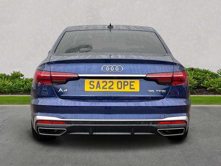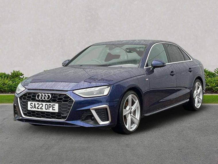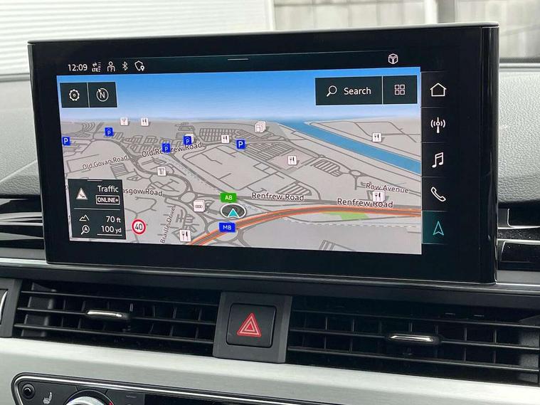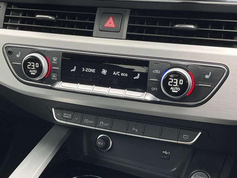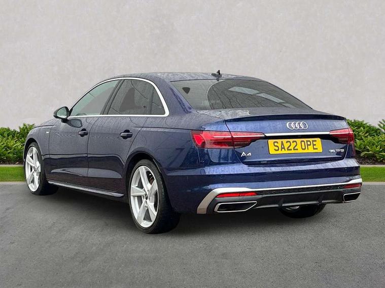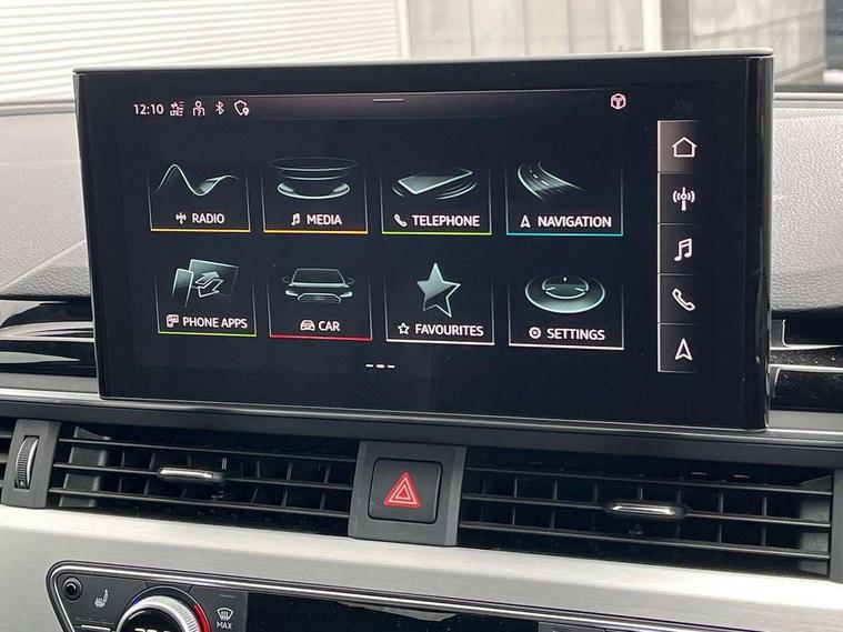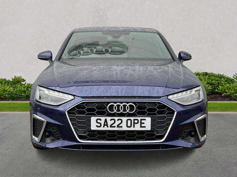 Audi connect safety and service (e-call), Audi connect with Amazon Alexa Integration, Audi drive select, Audi parking system plus with front and rear sensors, Audi smartphone interface, Audi virtual cockpit, Automatic start-stop system with coasting functionality and efficiency programme, Bluetooth interface, Cruise control system with speed limiter, Electric boot lid release, Electromechanical power steering, Email, calendar and text messages displayed via MMI, MMI Navigation plus with MMI touch includes 10.1" high resolution colour MMI display, 3D map, Rear view camera, Voice control system, 54 litre fuel tank, Sports suspension lowered by 23mm, 2 USB charging ports, 8 passive loudspeakers, DAB digital radio reception, Auto dimming rear view mirror, Body colour door handles, Body colour front spoiler lip, Body colour side sill trim, Body coloured door mirrors, Electrically folding auto dimming/adjustable/heated door mirrors with LED side indicators and kerb view function for passenger side, Grained matt black side air inlets with matt aluminium silver inlay, High beam assistant, Honeycomb structure radiator grille in grained matt black, LED headlights with LED rear lights + dynamic rear indicators + headlight adjustment and high beam, turning light + LED daytime running lights, LED third brake light, Matt aluminium silver tailpipe trim, Privacy glass, Rain and light sensors, Rear boot, Rear side wing doors, S Line badges on the front wings, S line front and rear bumpers with side skirts, S Line rear diffuser in matt titanium black with trim strip in matt aluminium silver, Windscreen with acoustic glazing, 4 way electric lumbar support for driver and front passenger, 40/20/40 split folding 3 rear seat bench in 3 parts with rear centre armrest, Black cloth headlining, Black perforated leather gearknob, Contrast stitching on seats, steering wheel and gear lever gaiter, Deluxe 3 zone electronic climate control, Door sill trims with aluminium inlay, Front and rear head restraints, Front centre armrest, Heated front seats, Illuminated door sill trims with S logo, ISOFIX child seat mounting and top tether, Manual seat adjustment, Single front passenger seat, Stainless steel pedals and foot rest, High gloss package - A4, LED Interior light pack - A4/S4, 3 rear seatbelts, 6 airbags - Driver, front passenger, curtain and side windows, Electronic Stabilisation Control (ESC) including ABS, ASR and EDL, Hill hold assist, Multi collision brake assist, Pop-up bonnet for pedestrian protection, Pre sense city, Rear door child safety locks, Seatbelt monitoring, Warning triangle and first aid kit, Anti theft alarm, Anti theft wheel bolts, Keyless Go, Matt brushed aluminium inlays, Tool kit, Tyre repair kit,