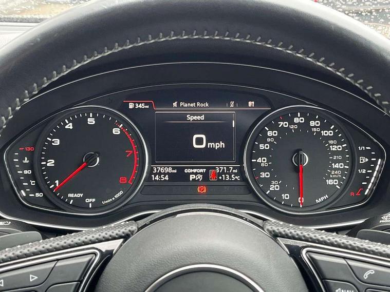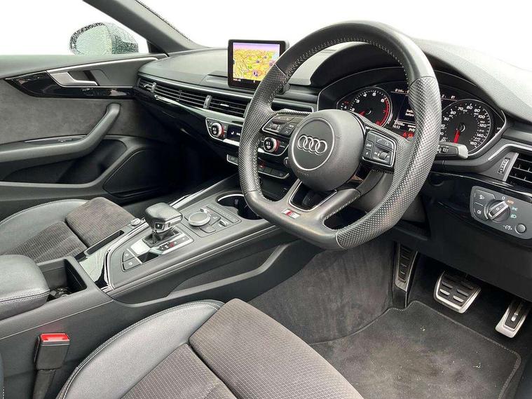 7" Colour driver information system, Audi connect, Audi drive select, Audi parking system plus with front and rear sensors, Audi smartphone interface, Automatic start-stop system with coasting functionality and efficiency programme, Bluetooth interface, Electro-mechanical power steering, MMI Navigation, Power tailgate, Service interval indicator, Voice control system, CD player, DAB Digital radio, Two SDXC card slots, Air inlets in titanium black with matt aluminium inlay, Auto dimming rear view mirror, Body colour bumpers, Chrome plated exhaust pipe, Electric adjustable heated door mirrors, Electric front windows, Front fog lights, High beam assistant, High gloss black door mirrors, Rain and light sensors, Rear diffuser in Twilight grey matt with honeycomb grille, S Line body styling, S line sill plates, S style high gloss black rear spoiler, Side and rear windows privacy glass, Titanium black frame and radiator grille, Titanium black front and rear air intakes, Titanium black window surround, Windscreen with acoustic glazing, 2 x USB charging port with aux input socket, 3 spoke flat bottom high multi-function leather steering wheel, 40/20/40 split folding 3 seater rear bench seat, Adjustable steering column, Black headlining, Black perforated leather gearknob, Centre console with cupholders, Contrast stitching on seats, steering wheel and gear lever gaiter, Deluxe 3 zone electronic climate control, Front centre armrest, Front head restraints, Front/rear floor mats, Gearshift paddles, Illuminated door sills, ISOFIX child seat mounting and top tether, Jack and tool kit, Luggage compartment mat, Rear headrests, S embossed logo on front sport seats, Stainless steel pedals and foot rest, Non Smokers pack, 3x3 point rear seatbelts, 6 airbags - Driver, front passenger, curtain and side airbags, Electromechanical parking brake, Electronic Stabilisation Control (ESC) including ABS, ASR and EDL, Front passenger airbag deactivation, Height adjustable front seatbelts, Hill hold function, Multi-Collision braking, Pop-up bonnet for pedestrian protection, Pre sense city, Seatbelt monitoring, Tyre pressure warning, Variable restraint system, Warning triangle and first aid kit, Anti theft alarm system, Anti theft wheel bolts, Immobiliser, Keyless Go, Remote central locking, Piano black finish inlay, 20" 5 arm rotor alloy design wheels with matt titanium finish, Tyre repair kit,