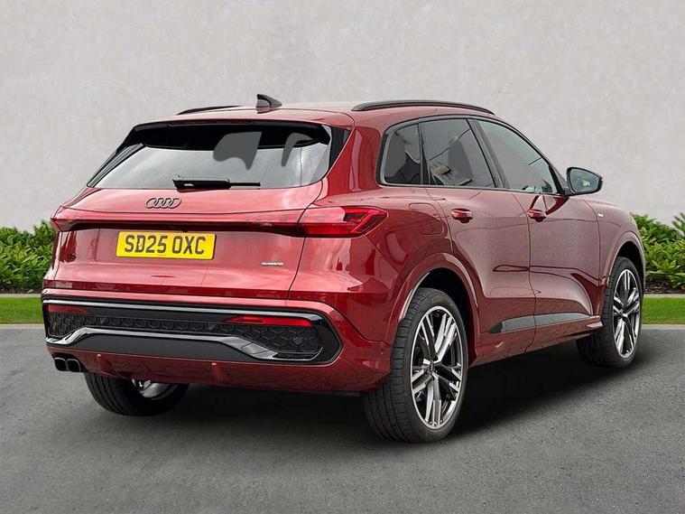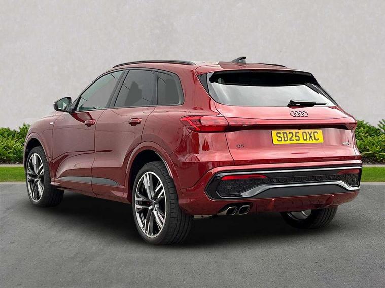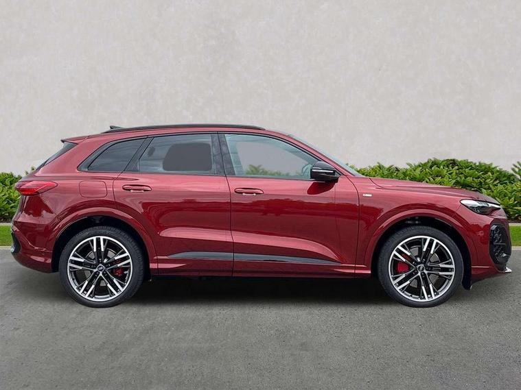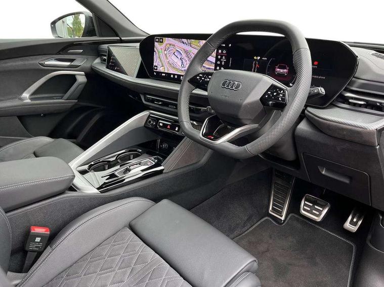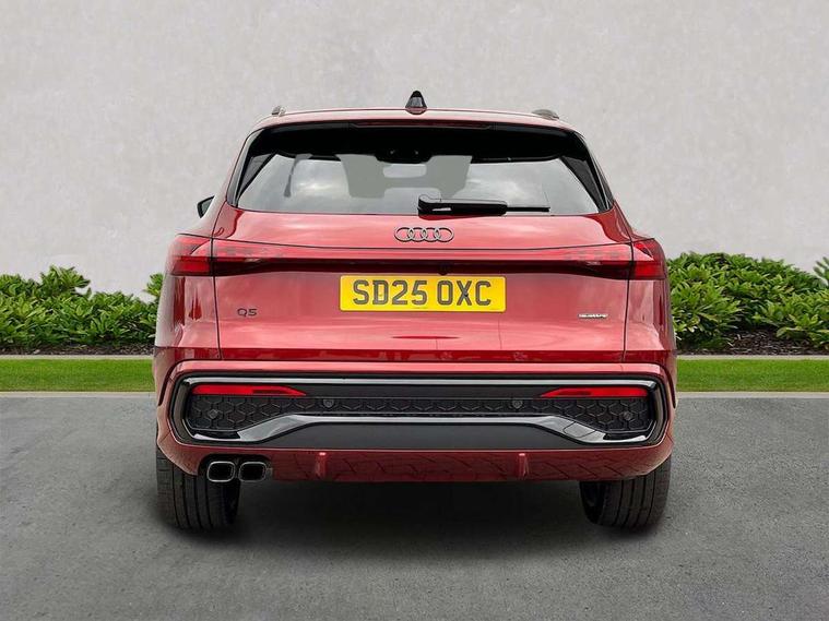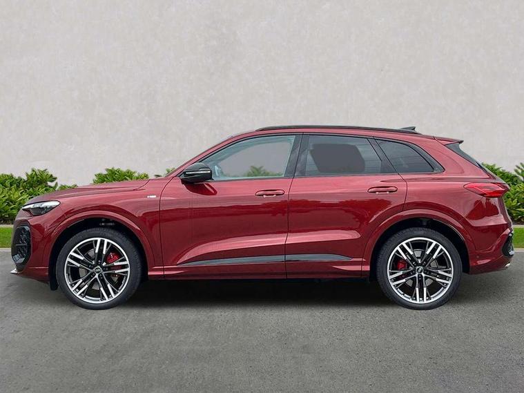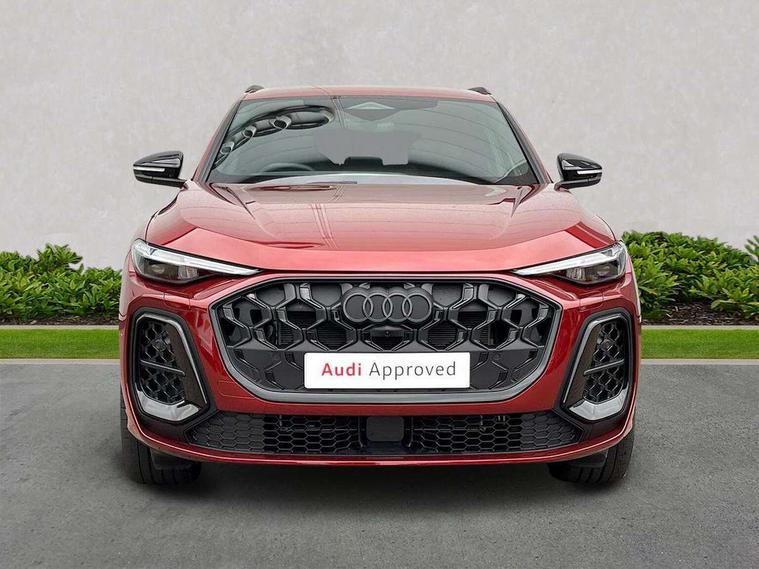 Adaptive cruise control, Advanced driver attention alert, Audi application store, Audi connect emergency call and service, Audi drive select, Audi smartphone interface, Audi virtual cockpit plus with 11.9" OLED colour display, Camera based traffic sign recognition, Fatigue monitor, Front cross traffic intersection assist, Lane change assistant with exit warning system, rear cross traffic alert and rear turn assist, Lane departure warning with emergency assist, MMI 10.9" front passenger touch display, MMI navigation plus with high resolution 14.5" OLED touchscreen colour display, Park assist plus, Parking system plus with 360 display, PAS, Reversing camera, Swerve assist and turn assist, Top view camera, Traffic sign based speed limiter, 2 USB-C ports in both the front and rear, Audi sound system impressive sound with 10 loudspeakers including centre speaker and subwoofer, 6-channel amplifier with a total output of 180 watts, DAB Digital radio, Smartphone compartment with wireless charging, Active digital light signatures - Six additional combinations of active daytime running light signature, Auto dimming rear view mirror, Black roof rails, Coming/leaving home lighting function, Electrically adjustable heated and folding + automatically dimming exterior mirrors, Exhaust tailpipes in dark chrome, Front and rear electric windows, Front door sill trims with aluminium inlays, illuminated with 'S' logo, Full body paint finish, Headlight cleaning system, Heated rear window, High beam assist, High gloss window surrounds, Inlay and front air inlets in matt anthracite chrome, LED rear lights pro incl. dynamic rear indicators and illuminated light strip with animated coming and leaving home function, Logo projection light in exterior mirrors, Matrix LED headlights, Memory function for door mirrors, Privacy glass, Projection light for rear window, Radiator grille in phantom black, Rear and side windows with heat insulating glass, Rear honeycombe grille in matt black with inlay in matt anthracite chrome, Rear side wing doors, Rear wash/wipe, S Line badge on the front wings, Towbar preparation, Windscreen with acoustic glazing, 3 rear head restraints, 3 seat bench in 2nd row, 3 spoke leather steering wheel with multi-function buttons with touch control, flattened on top and bottom, with S badging and contrast stitching, 4 way electric lumbar support for driver and front passenger, 40:20:40 split folding rear seat bench with centre armrest and cup holders, Comfort centre armrest, Deluxe 3 zone electronic climate control, Dinamica microfiber/leather upholstery, Electrically adjustable front seats with memory function for driver's side, Front and rear floor mats, Front sport seats with integrated head reastrains, Headlining in black cloth, Heated front seats, i-Size child seat mounting on the front passenger side and outer rear seats, i-Size and top tether on the outer rear seats, Interior trim in aluminium look, Luggage compartment lid, electrically opening and closing, Manual steering column adjustment, Single front passenger seat, Softwrap in Dinamica, Stainless steel pedals and footrest, Steering wheel grips in perforated leather and shift paddles, Ambient lighting package plus - Q5, Black styling package plus - Q5, Storage and luggage compartment pack - Q5, 3x3 point rear seatbelts, ABS, Acoustic vehicle alerting system, Convenience key with safelock, Driver and front passenger airbag with passenger airbag deactivation, Electric child safety locks, First aid kit with warning triangle and high visibility vests, Front emergency brake assist, Front side airbags with head airbag system and front interaction airbag, Hill hold assist, Occupant detection in rear seat area, Proactive passenger protection system for front, sides and rear, Red brake calipers, Side airbags in front and rear with head airbag system and front interaction airbag, Tyre pressure loss indicator, Anti theft alarm, Anti-theft wheel bolts, Remote control key with SAFELOCK and keyless go, Accent surfaces and control buttons in gloss black, Black dashboard with contrast stitching, Steel grey seat stitching, Upper and lower interior elements in dinamica microfiber, Tyre repair kit,