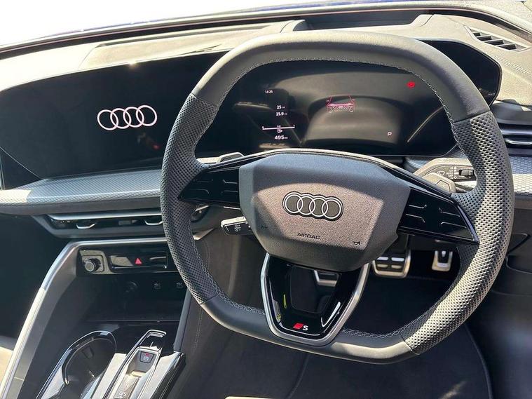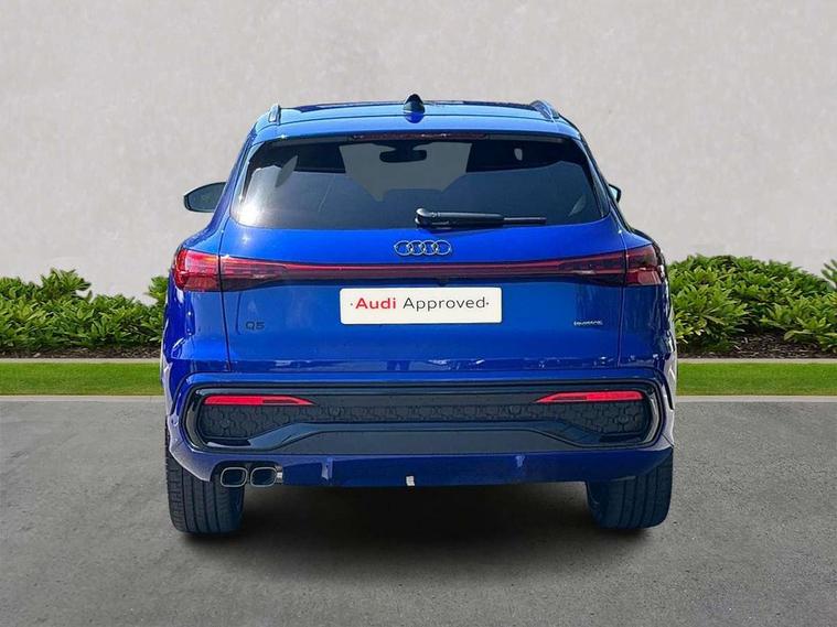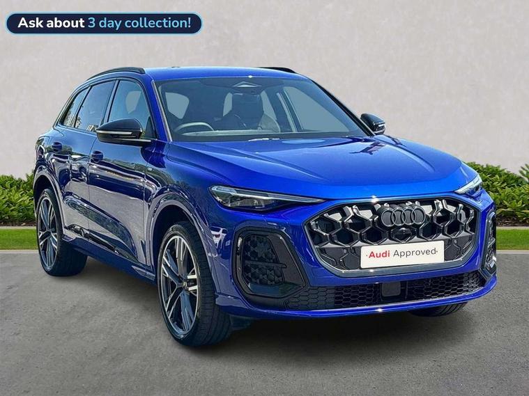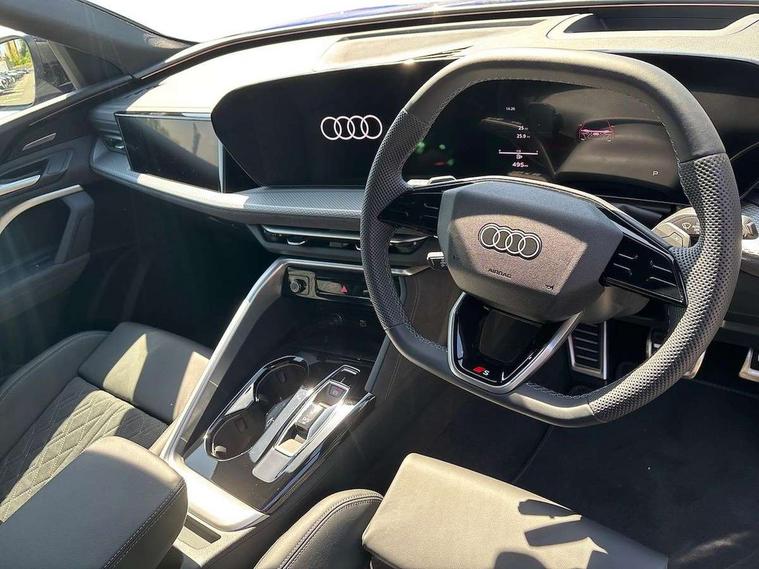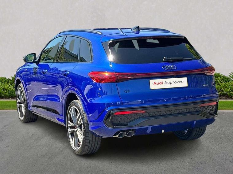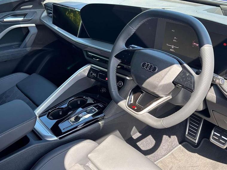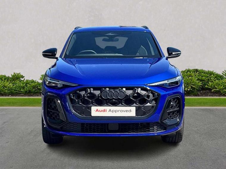 Adaptive cruise control, Advanced driver attention alert, Audi application store, Audi connect emergency call and service, Audi drive select, Audi smartphone interface, Audi virtual cockpit plus with 11.9" OLED colour display, Camera based traffic sign recognition, Fatigue monitor, Front cross traffic intersection assist, Lane change assistant with exit warning system, rear cross traffic alert and rear turn assist, Lane departure warning with emergency assist, MMI 10.9" front passenger touch display, MMI navigation plus with high resolution 14.5" OLED touchscreen colour display, Park assist plus, Parking system plus with 360 display, PAS, Reversing camera, Swerve assist and turn assist, Top view camera, Traffic sign based speed limiter, 2 USB-C ports in both the front and rear, Audi sound system impressive sound with 10 loudspeakers including centre speaker and subwoofer, 6-channel amplifier with a total output of 180 watts, DAB Digital radio, Smartphone compartment with wireless charging, Active digital light signatures - Six additional combinations of active daytime running light signature, Auto dimming rear view mirror, Black roof rails, Coming/leaving home lighting function, Electrically adjustable heated and folding + automatically dimming exterior mirrors, Exhaust tailpipes in dark chrome, Front and rear electric windows, Front door sill trims with aluminium inlays, illuminated with 'S' logo, Full body paint finish, Headlight cleaning system, Heated rear window, High beam assist, High gloss window surrounds, Inlay and front air inlets in matt anthracite chrome, LED rear lights pro incl. dynamic rear indicators and illuminated light strip with animated coming and leaving home function, Logo projection light in exterior mirrors, Matrix LED headlights, Memory function for door mirrors, Privacy glass, Projection light for rear window, Radiator grille in phantom black, Rear and side windows with heat insulating glass, Rear honeycombe grille in matt black with inlay in matt anthracite chrome, Rear side wing doors, Rear wash/wipe, S Line badge on the front wings, Towbar preparation, Windscreen with acoustic glazing, 3 rear head restraints, 3 seat bench in 2nd row, 3 spoke leather steering wheel with multi-function buttons with touch control, flattened on top and bottom, with S badging and contrast stitching, 4 way electric lumbar support for driver and front passenger, 40:20:40 split folding rear seat bench with centre armrest and cup holders, Comfort centre armrest, Deluxe 3 zone electronic climate control, Dinamica microfiber/leather upholstery, Electrically adjustable front seats with memory function for driver's side, Front and rear floor mats, Front sport seats with integrated head reastrains, Headlining in black cloth, Heated front seats, i-Size child seat mounting on the front passenger side and outer rear seats, i-Size and top tether on the outer rear seats, Interior trim in aluminium look, Luggage compartment lid, electrically opening and closing, Manual steering column adjustment, Single front passenger seat, Softwrap in Dinamica, Stainless steel pedals and footrest, Steering wheel grips in perforated leather and shift paddles, Ambient lighting package plus - Q5, Black styling package plus - Q5, Storage and luggage compartment pack - Q5, 3x3 point rear seatbelts, ABS, Acoustic vehicle alerting system, Convenience key with safelock, Driver and front passenger airbag with passenger airbag deactivation, Electric child safety locks, First aid kit with warning triangle and high visibility vests, Front emergency brake assist, Front side airbags with head airbag system and front interaction airbag, Hill hold assist, Occupant detection in rear seat area, Proactive passenger protection system for front, sides and rear, Red brake calipers, Side airbags in front and rear with head airbag system and front interaction airbag, Tyre pressure loss indicator, Anti theft alarm, Anti-theft wheel bolts, Remote control key with SAFELOCK and keyless go, Accent surfaces and control buttons in gloss black, Black dashboard with contrast stitching, Steel grey seat stitching, Upper and lower interior elements in dinamica microfiber, Tyre repair kit,