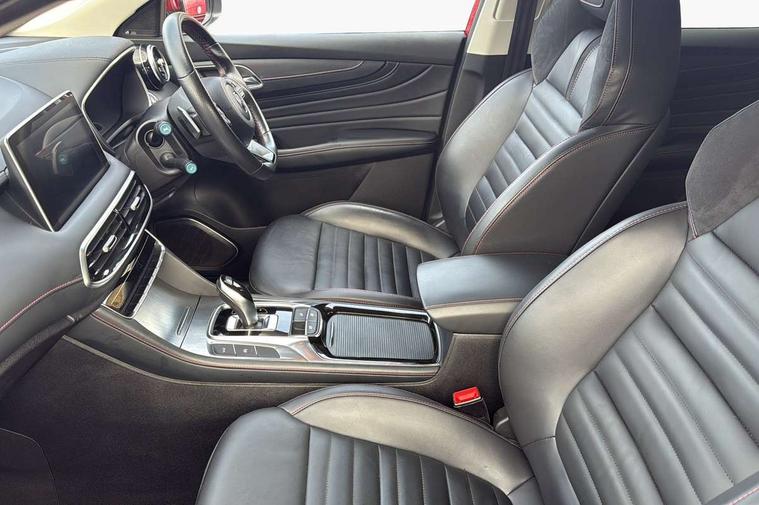 10.1" colour touchscreen, Adaptive cruise control, Android Auto, Apple CarPlay, Blind spot detection, Bluetooth connectivity, Driving modes, Emergency call service, Full digital driver information display, Intelligent speed limit assist, Lane keep assist system (LAS) with Lane departure warning system (LDWS), PAS, Power tailgate, Rear cross traffic alert, Rear parking camera, Rear parking sensors, Satellite navigation system, Tailgate, Traffic jam assist, Trip computer, USB mobile phone charging function, 4 USB ports 2 front and 2 rear, 6 speaker audio system, DAB audio, Auto dimming rear view mirror, Automatic headlights, Body colour electric adjustable heated door mirrors, Electric folding door mirrors, Follow me home headlights, Front and rear aero wiper, Front and rear electric windows with one-touch up/down, Intelligent high beam, LED Bi-Function headlights, LED centre brake light, LED daytime running lights, LED front and rear sequential indicators, Rain sensing wipers, Rear privacy glass, Rear side wing doors, Silver roof rails, 12V power sockets, 2nd row 60/40 split fold seat, 2nd row seat with 2 stage incline adjustment, 3 rear headrests, 3 seat bench in 2nd row, 4 way electric adjustable passenger seat, 6 way electric adjustable drivers seat + lumbar support, Ambient lighting (adjustable colour), Dual zone automatic air conditioning, Front centre sliding armrest with storage compartment, Front headrests, Heated front seats, Height and reach adjustable steering wheel, ISOFIX restraints on outer rear seats x2, Leather steering wheel, Metal sports pedals, Single passenger seat, Sports Style Front Seats with One-Piece Back, Steering wheel paddle shift, 3x3 point rear seatbelts, ABS/EBD, Active emergency braking with pedestrian/Bicycle detection, Anti rolling protection, Cornering brake control (CBC), Drivers seatbelt reminder, Dual front airbags, Electric parking brake with auto hold function, ESP, Front and rear passenger seat belt reminder, Front passenger airbag deactivation switch, Front seat belt height adjuster, Front seatbelts (3-point + pretensioner + load limiter), Front side airbags, Hill descent control, Hill launch assist, Manual rear child locks, Rear outer seatbelt pretensioner and load limiter, Side curtain airbags, Tyre pressure monitoring system, Alarm system and engine immobiliser, Keyless entry and push button start system, Remote central locking, Speed sensing door locks, 18" Diamond cut alloy wheels, Tyre repair kit,