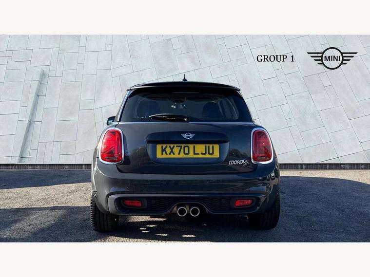 Automatic start/stop function with brake energy recuperation, Compatible mobile phone bluetooth with audio streaming, Electro-mechanical speed dependant steering assistance, Instrument cluster, MINI Driving Modes - centre toggle switch to control driving setting (sport, mid and green), Mini E-call, MINI TeleServices, On board computer, Service interval indicator, Double Vanos system, Fully variable valve control, Gear change indicator display, High precision injection, Performance Control, Steptronic transmission with double clutch, 6.5" touchscreen with LED ring, FM tuner and DAB digital radio, Automatic headlight activation switch, Bonnet scoop, Chrome border honeycomb structure radiator grille with S badge, Chrome plated fuel cap, Dynamic brake lights, Electric front+rear windows, Heated rear window, Heated windscreen washer jets, LED headlight with closed ring and daytime driving lights, Metal door sill strips with Cooper S imprint, Model logo Cooper S on right of tailgate, Rain sensor window wipers, Rear fog lights, Rear LED lights with union jack design, Rear window wiper, Side scuttle panel with integrated indicator, Sun/heat protection glass, Two central exhaust tailpipes with chrome finisher, White indicator lenses, 12V Accessory socket in centre console, 4 lashing eyes in luggage compartment, 60/40 split folding rear seat, Carbon Black colour line, knee roll and door armrests, Chrome interior highlights, Colour line - Carbon black, Cupholders, Front and rear head restraints, Front and rear isofix with front passenger airbag deactivation, Glove compartment, Height and length steering column adjustment, Interior lighting with 12 basic colours selectable via toggle switch in roof, Leather gearshift lever and handbrake gaiters, LED reading lights, vanity mirror lights, front foot well light and spotlight on front seats, Manual air conditioning, Mechanical seat adjustment, driver seat height adjust, forward/back and front seats backrest, Mini logo projection on floor from drivers exterior mirror, Multifunction steering wheel, Satellite grey headlining, Storage compartments in doors, Storage pocket on back of front seats, Sunvisors with vanity mirrors, 3 point seatbelts on all four seats, 6 Airbags - front, side, head and seat belt tensioners, Anti-lock braking system (ABS), DSC - Dynamic Stability Control, Front and rear disc brakes, Hill start assist, Two tone horn, Tyre pressure monitoring system, Alarm system with tilt sensor, monitoring doors, bonnet interior and tailgate, Electronic vehicle immobiliser, Start/stop toggle with keyless go, Tool kit, Tyre repair kit,