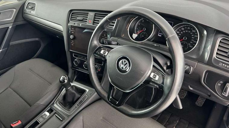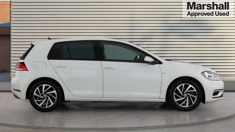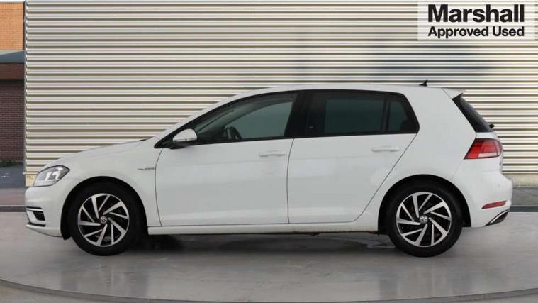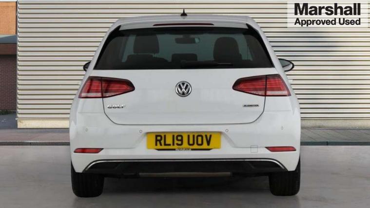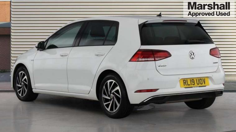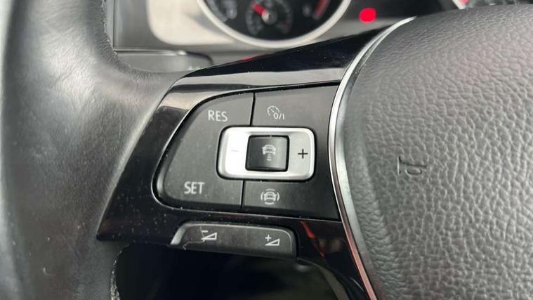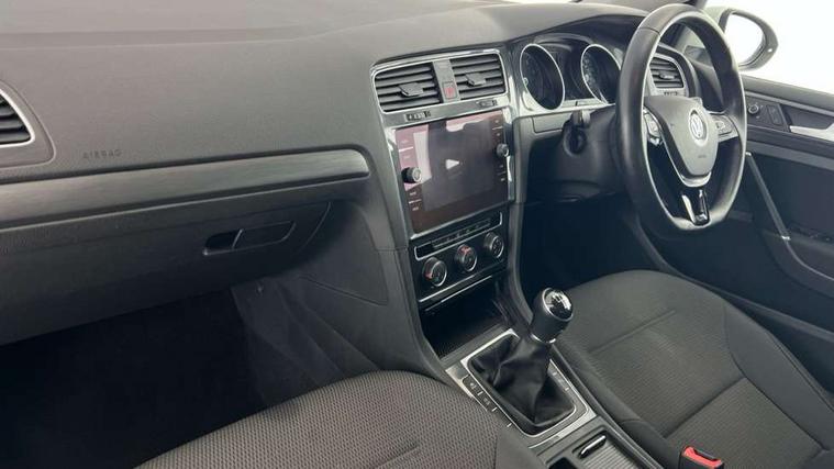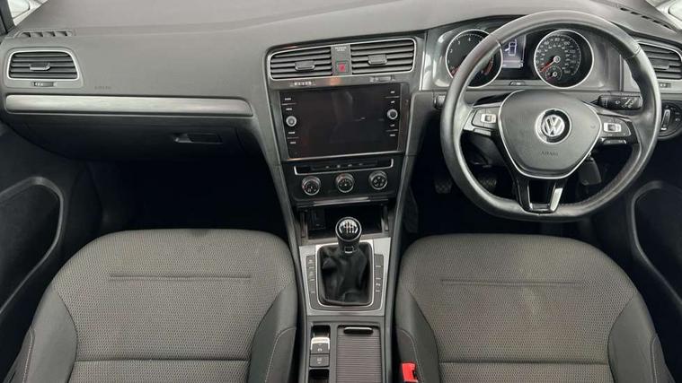 'Lights On' Reminder warning buzzer, ACC - Adaptive cruise control with front assist, forward collision warning, distance monitoring, city emergency brake and speed limiter, Bluetooth telephone and audio connection for compatible devices, Brake pad wear indicator warning light, Driver alert system, Driving Mode Selection with four preset modes - Eco, normal, sport or individual modes, Instrument cluster in white, Multifunction computer with visual gear change recommendation for fuel consumption, Power assisted speed sensitive electro-mechanical steering, Push tank flap, Speed limit display, Speedo, rev counter, electronic odometer, trip, service interval display, exterior temperature and fuel gauge, Stop/start system, Think blue trainer driver tips and journey analysis, Warning buzzer and light for front seatbelts unfastened, We Connect Go Dongle, Battery regeneration during braking, Standard suspension, XDS electronic differential lock, Composition media system, DAB Digital radio receiver, Driver Personalisation profile selection, MP3/WMA compatability, Multi device interface (MDI) with USB connection, Personalisation 1.1 profile for media, Premium USB cable in choice of either Apple or Android smartphone compatibility, SMS Functionality, Title and cover art display, 4 X 20W output, USB connection and socket, USB and SD card connectivity, Aerodynamic black radiator grille with chrome trimmed insert, Auto dimming rear view mirror, Black rear diffuser, Body colour bumpers, Body colour door handles, Body colour door mirrors with integrated indicators, Dusk sensor + automatic driving lights, Electric front windows, Electric rear windows, Electrically adjustable and heated door mirrors, Fully galvanised body, Heated rear windscreen, Hidden exhaust pipe, High level 3rd brake light incorporating LED Technology, LED front fog lights with static cornering light function, Range adjustable headlights via infotainment system with LED daytime running lights, Rear fog lamp, Rear number plate lights incorporating LED technology, Rear tinted glass 65% light absorbing from B pillar backwards, Rear window aerial, Rear window wash/wipe with intermittent wipe, Reflectors in all doors, Remote electrically foldable door mirrors, door mirror puddle lights and reverse activated kerb-view adjustment on passengers door mirror, Tailgate with integrated rear roof spoiler, Windscreen wipers/ intermittent wipe + 4 position delay, 12V socket in luggage compartment, 3 rear headrests, 4 load lashing points in luggage compartment, 60/40 split folding rear seat backrest, Auto fold down lever in rear seat backrest, Bag hook in luggage compartment x 2, Cooled glovebox, Cover for storage compartment in centre, Cupholder cover, Dust/pollen filter, Front and rear reading lights X 2, Front centre armrest with storage compartment and two rear air vents, Front seat back storage pockets, Grab handles front x 2, rear x 2 with integrated coat hooks, Height and reach adjustable steering wheel, Illuminated vanity mirrors, Instrument lighting white adjustable panel illumination, Interior light delay, Isofix preparation for 2 rear child seats, Load through provision with rear centre armrest and cupholders x2, Luggage compartment lighting, Overhead storage box, Passenger underseat drawer, Pearl grey headlining, Storage box in luggage compartment, Storage compartment in roof console with cover, Storage compartments in centre console, Storage compartments in front doors, Storage compartments in rear doors, Stowable luggage compartment cover, Sun visors, Variable boot floor, height adjustable and removable, Convenience Pack - Golf, Light and Sight pack - Golf, Mirror pack - Golf, 3 rear three point seatbelts, Airbags - Driver's and front passenger's, curtain airbag, Driver's knee, front side impact and passenger's airbag deactivation switch, Anti-lock Braking System (ABS) with Hydraulic Brake Assist (HBA), Automatic post collision braking system, Child locks on rear doors, Driver/Passenger optimised head restraints, Electronic parking brake with auto hold, Electronic stability control (ESC) including Electronic differential lock (EDL) and ASR (Traction control) with deactivation via infotainment system, Front ventilated disc brakes and rear disc brakes, Pre crash preventive occupant protection, Three point height adjustable front seatbelts with tensioners, Tyre pressure loss indicator, Alarm with interior protection and deactivation via infotainment system, Electronic engine immobiliser, Brushed dark silver decorative inserts in dash and door panels, Chrome plated air vent surround, Chrome-plated light switch surround, Polar night black decorative inserts in centre console, Steel space saver spare wheel,