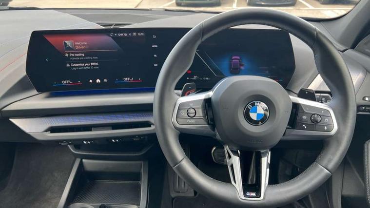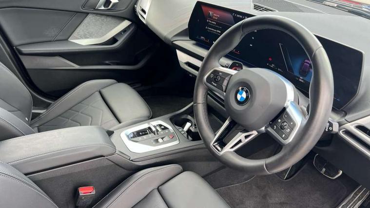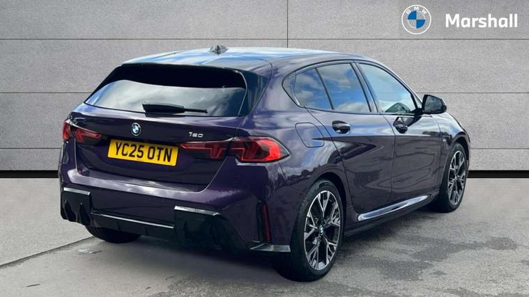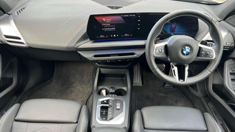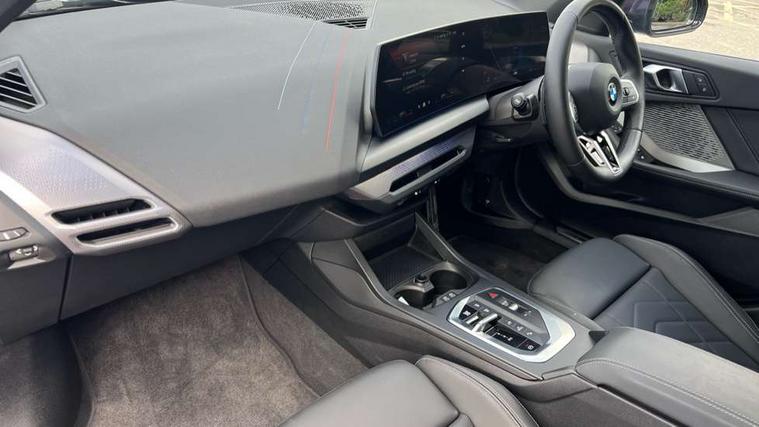 Active guard plus, Attentiveness assist, Bluetooth / WiFi interface for wireless connection of mobile terminal devices and audio streaming, BMW ConnectedDrive online services, BMW Live cockpit plus, BMW Teleservices, Check Control warning system for monitoring of lights and door/luggage compartment open warning, Eco pro mode, Electric power steering with Servotronic steering optimised at all speed ranges, Evasion assistant, Flat airvents in instrument panel with adjustable slats, Front and rear parking sensors, Front axle single joint with specific axle kinematics to minimise drive influences on steering + provide increased rigidity agile driving behaviour, Gearshift time display in manual mode, Integrated owners handbook, Left turn warning with brake function, My modes (Personal / Efficient / Sport), Oil sensor for level and grade, On board computer, Optimum shift indicator, Park assist including reversing assistant, lateral parking aid and reversing assist camera, Personal e-SIM, Personal Profile, Pull away assistant, Rigidly mounted rear subframe - Multi link construction with separate spring / damper configuration and excellent driving characteristics, Speed limit Info including no-overtaking indicator, Speed limiter, 49 litre fuel tank, Aluminium lightweight construction, Anti roll bar front and rear, Balancer shaft, Double VANOS twin scroll turbocharging system, Drive Performance Control, Electronic differential lock, Electronic selector lever, High precision injection, M Adaptive suspension, Petrol Particulate Filter, Steptronic transmission with double clutch, Twin tube gas filled shock absorbers with degressive characteristic curve, VALVETRONIC engine management, DAB Digital radio, Auto dimming rear view mirror, Automatic windscreen wipers and automatic headlight, Body colour door handles, Body colour mirror caps, Body colour roof trims, Chrome 'M' logo side designation, Chrome exhaust twin tailpipes round 90mm in left, Chrome kidney grille frame with Satin Aluminium struts, Direction indicator side lights in exterior mirrors, Electrically adjustable exterior mirror with mirror adjustment switch on drivers armrest and aspheric on driver side, convex on passenger side, Exterior M sport design elements, Fading support, Folding side mirrors with auto dimming/folding wing mirrors with auto dimming, Follow me home headlights, Front and rear bumper system with replaceable deformation elements, Front and rear electric windows with open and close fingertip control, anti trap facility and comfort closing, Front bumper panel with M specific design in vehicle colour with inserts in black high gloss, Front door sill finishers in black plastic with M designation in metallic look, Green tinted heat protection glazing, Heated rear window, High gloss black exterior mirrors, High gloss shadowline window frame, Recess cover mirror frames and B/C pillar embelisher trim, High level third brake light, Integrated front windscreen with washer jets, LED daytime running lights, LED eyebrow turn indicators, LED front fog lights, LED Headlights, Lightweight engineering, M identification on the sides, Matt black air guide grilles, Matt black wheel arch trim, Model badge on tailgate right, Nearside reverse light in rear light cluster, Preparation for high beam assistant, Rain sensor, Rear bumper panel with M-specific design in vehicle colour with inserts in black high gloss, Rear fog lights, Rear side wing doors, Rear window wiper, Shark fin antenna, Side sill covers with M specific design in body colour, Trailer stabilisation logic, Visible VIN plate, Welcome lighting, 12V power socket in front centre console with blanking plug, 3 rear seat head restraints, 3 seat bench in 2nd row, 3 spoke sports leather steering wheel with black leather and stitching, pearl chrome decorative finish, specific M Badge, Anthracite front and rear floor mats, Anthracite headlining, Black boot net with lashing eyes, Cargo function on 2nd seat row, Child seat ISOFIX attachment for two outer rear seats and front passenger seat with anchorage points, Conditioned based service, Driver and front passenger backrest net on rear, Driver and front passenger seat heating, Driver side folding compartment in instrument panel, Folding rear clothes hook, Footrest and pedals in black plastic, Four grab handles integrated in roof lining, Front and rear door pockets with bottle holders, Front and rear side armrest integrated into door trim, Front armrest with storage compartment, Gearshift paddles on steering wheel, Glove compartment, Height adjustable front head restraints, Luggage compartment for bag hooks on left and right, foldable luggage compartment liner and four lashing eyelets, Manual adjust steering wheel, Multi-function controls for steering wheel, Rear seat backrest with manual 60:40 split folding with 3 top tether clips integrated on rear of seat panels, Single front passenger seat, Storage compartment in centre console, Storage compartment in luggage compartment, Stowage of the parcel shelf in luggage compartment trim, Sun visors with vanity mirrors and insert tab, Two front centre console cupholders, Type C two USB ports in rear centre console, Upper retaining strap integrated into backrest rear panels, Connected pack professional - 1 Series, Interior lights pack - 1 Series, M Sport exterior styling aerodynamics pack - 1 Series, 2 tone horn, 3 point seatbelts on all seats, front pyrotechnic belt tensioners, stopper and belt force limiters, rear coded belt buckles, Airbags - Front driver/passenger, front and rear curtain head protection, front side, manual deactivation of front passenger airbag, Anti lock braking system (ABS) with brake assist, BMW emergency call, Brake drying, Braking readiness, Child proof locking system in rear door, Comfort modes, Cornering brake control, Crash sensor activating of airbags, Unlocking doors, hazard warning lights, interior light, safety battery terminal, Driver and front passenger seat belt sec